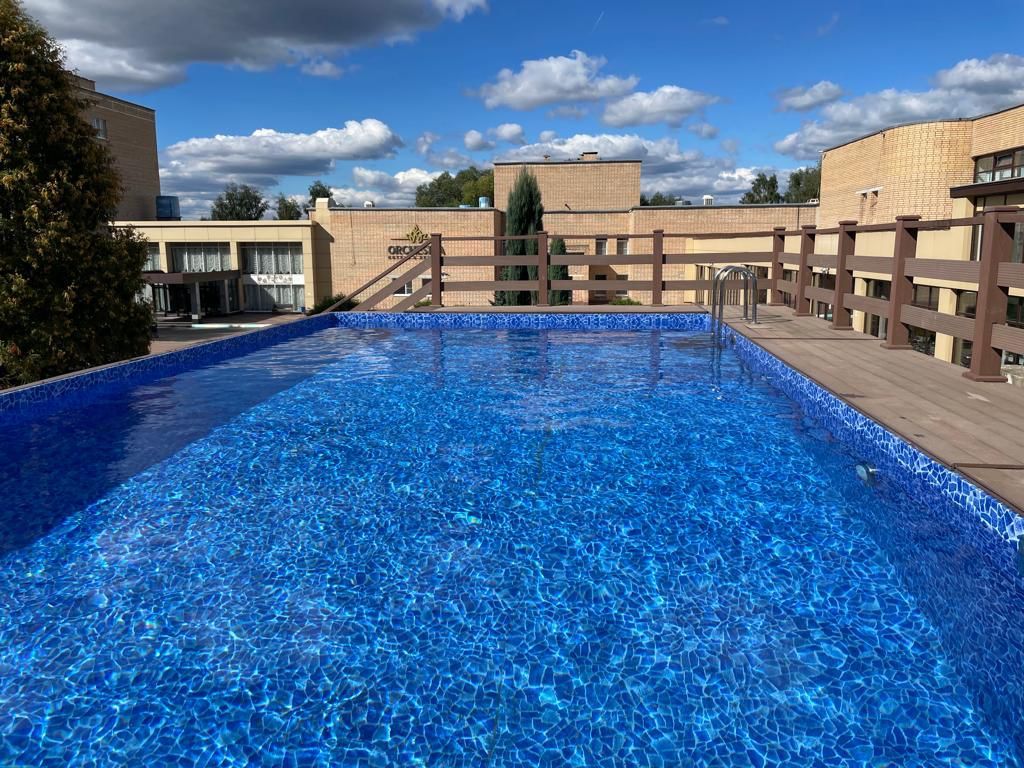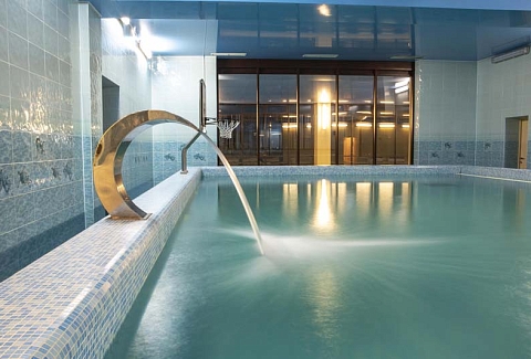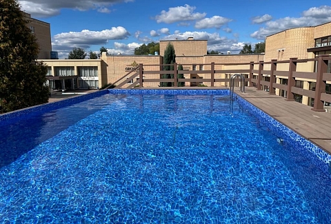 - пользование термальной зоной с 08:00 до 20:00 (с техническим перерывом 1 час в течение дня): детский и взрослый гипоаллергенные бассейны (без применения хлора, очистка ионами серебра), финская сауна