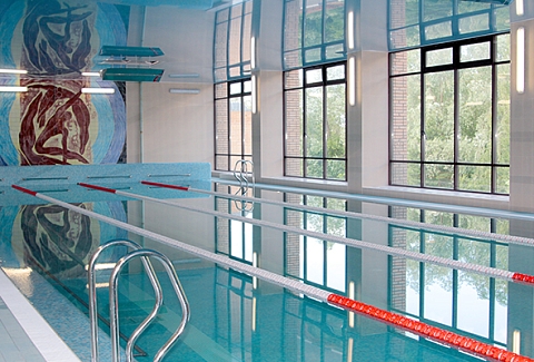 - крытый расположен в здании главного корпуса; размер: 25*8,5м.