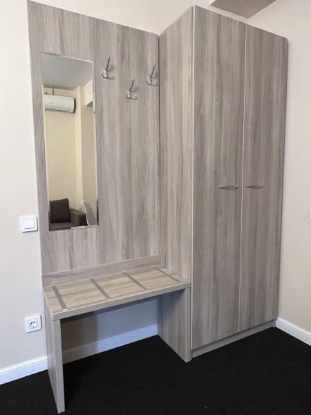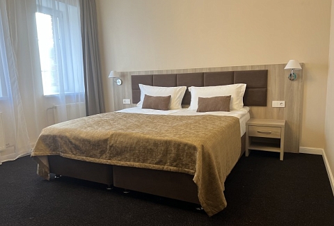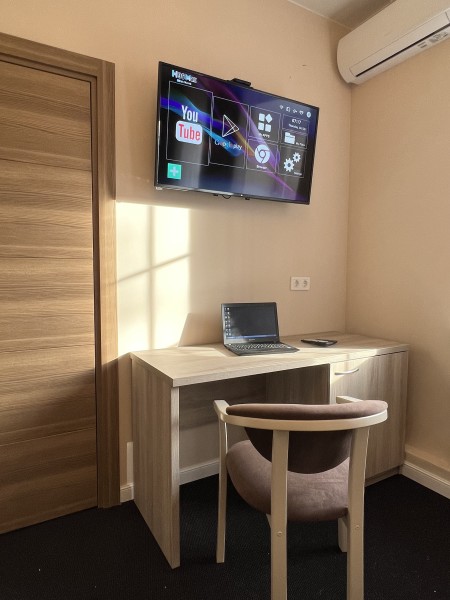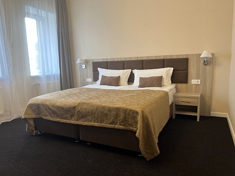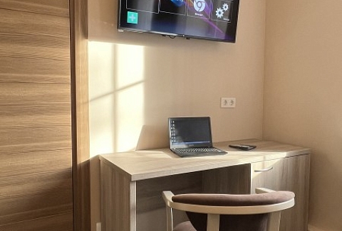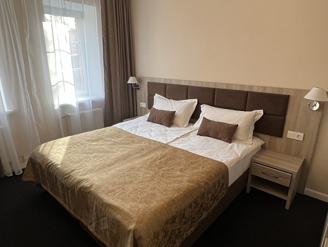 В номере: диван, зеркало, кровати односпальные /одна двуспальная кровать, прикроватные тумбочки, стол, стулья, шкаф, мини-холодильник, телевизор ЖК, электрочайник