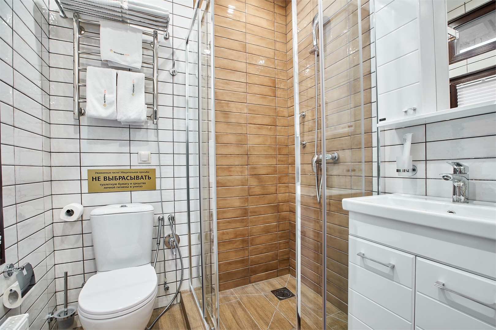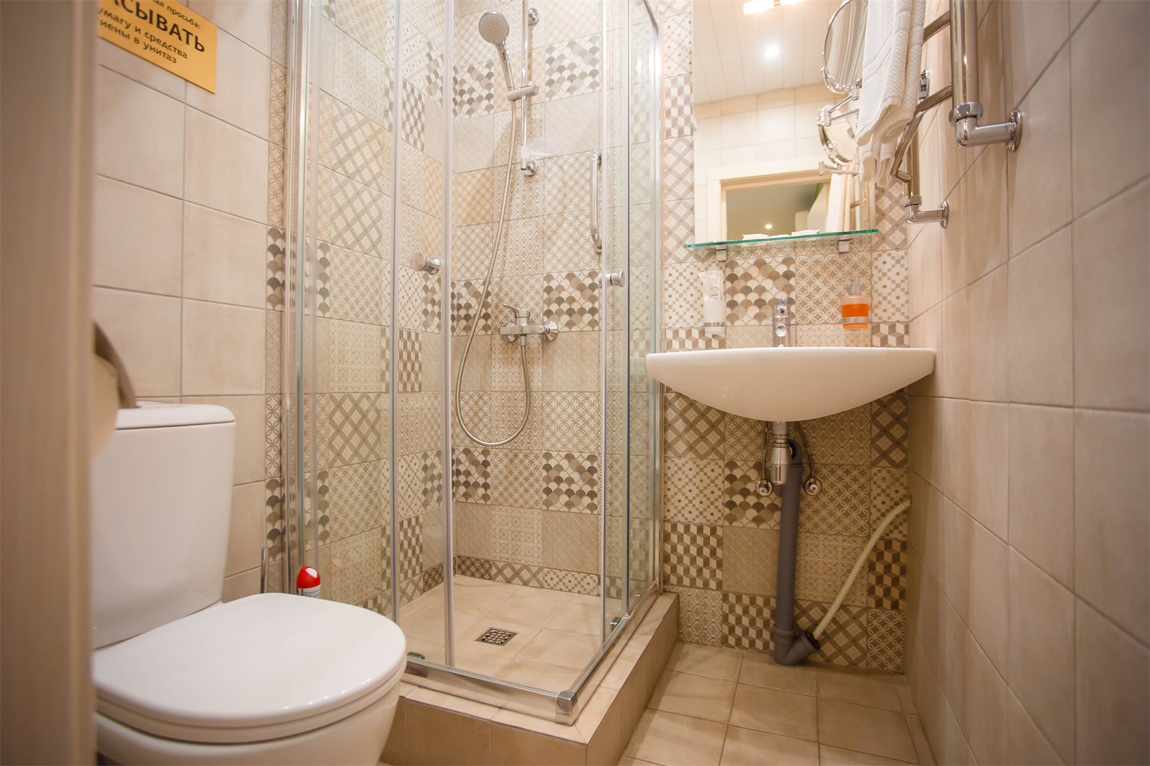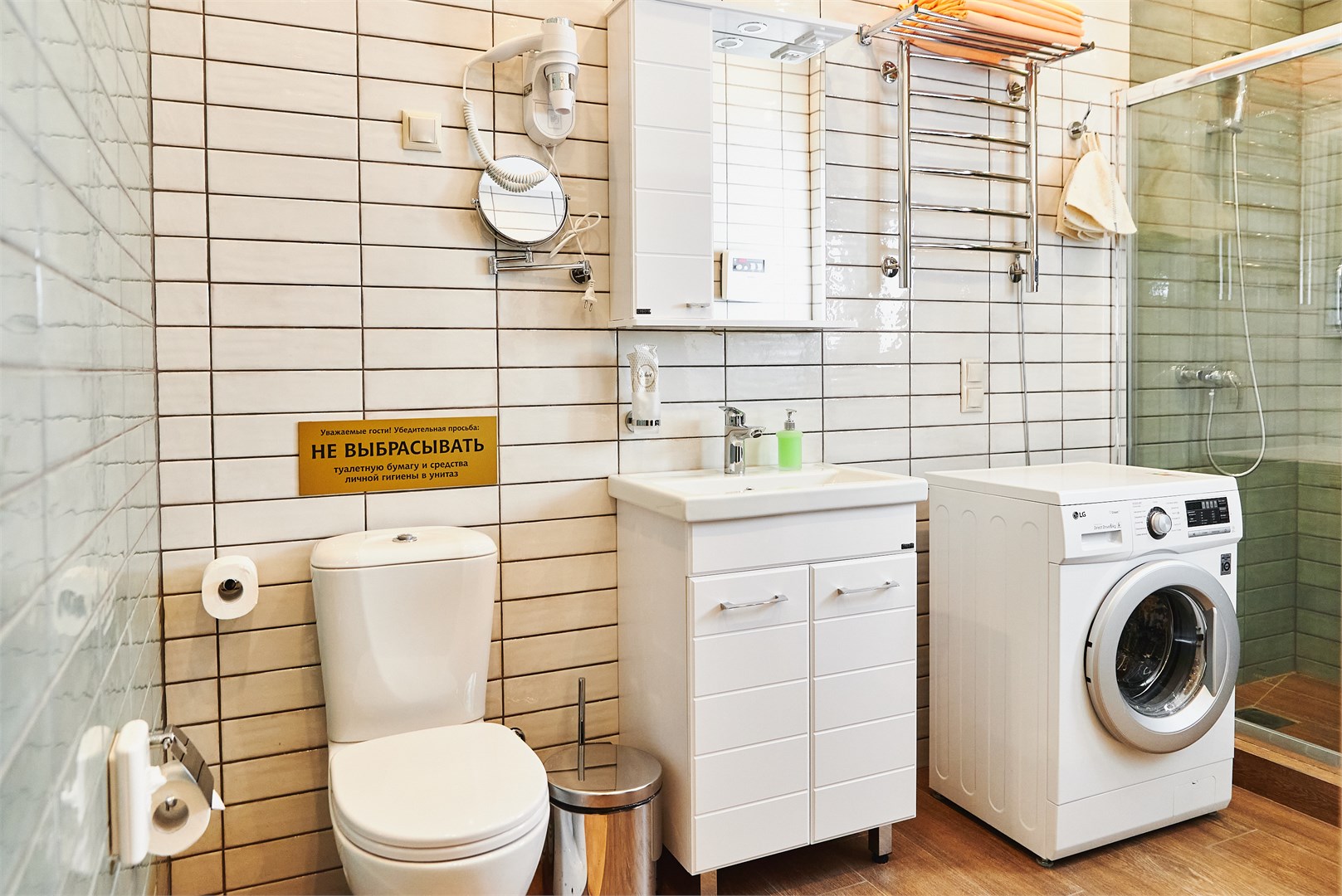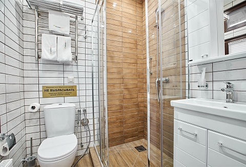 Санузел: с душевой кабиной, туалетные принадлежности, фен