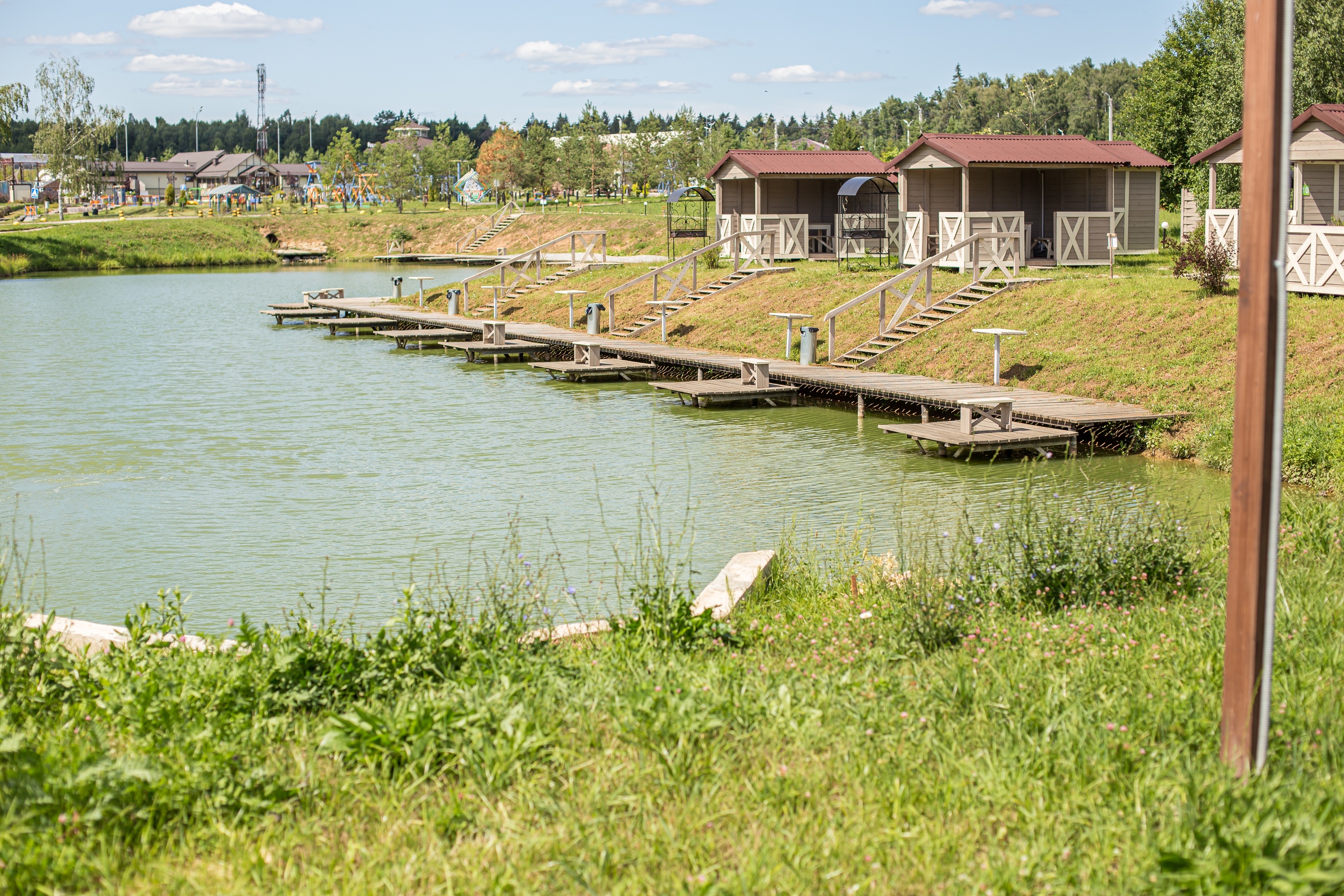 Для любителей шашлыков организована барбекю-зона с мангалами и видовыми беседками. В распоряжении гостей баня на дровах, тренажерный зал, футбольное поле и поле для мини-гольфа, есть теннисный корт, тир и веревочный городок. Все желающие могут поиграть в пейнтбол, отправиться на рыбалку или арендовать лодки, катамараны, велосипеды. В загородном клубе регулярно проходят различные развлекательные мероприятия с участим аниматоров. Также на территории работает конный клуб, а для детей оборудована игровая площадка с горками и качелями.