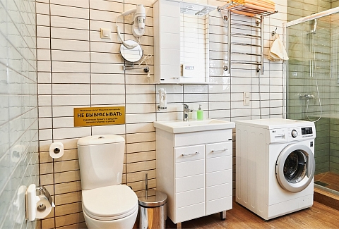 Санузел: с ванной, туалетные принадлежности, фен