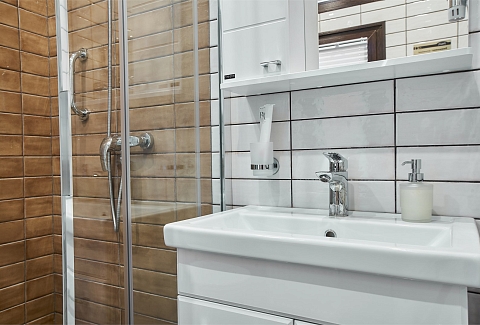Санузел: сауна, с душевой кабиной, туалетные принадлежности, фен