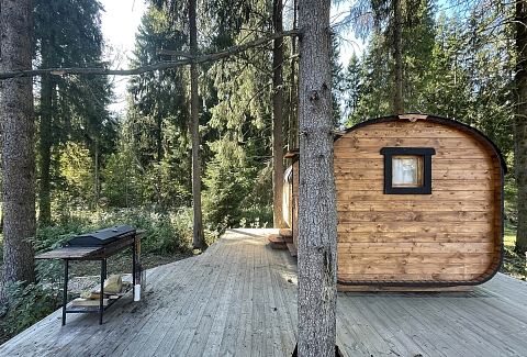 Поездом до ж/д вокзала ст. Дмитров , далее на автобусе №24 двигаться до остановки «Лавровы завод», далее 4 км до глэмпинга.
