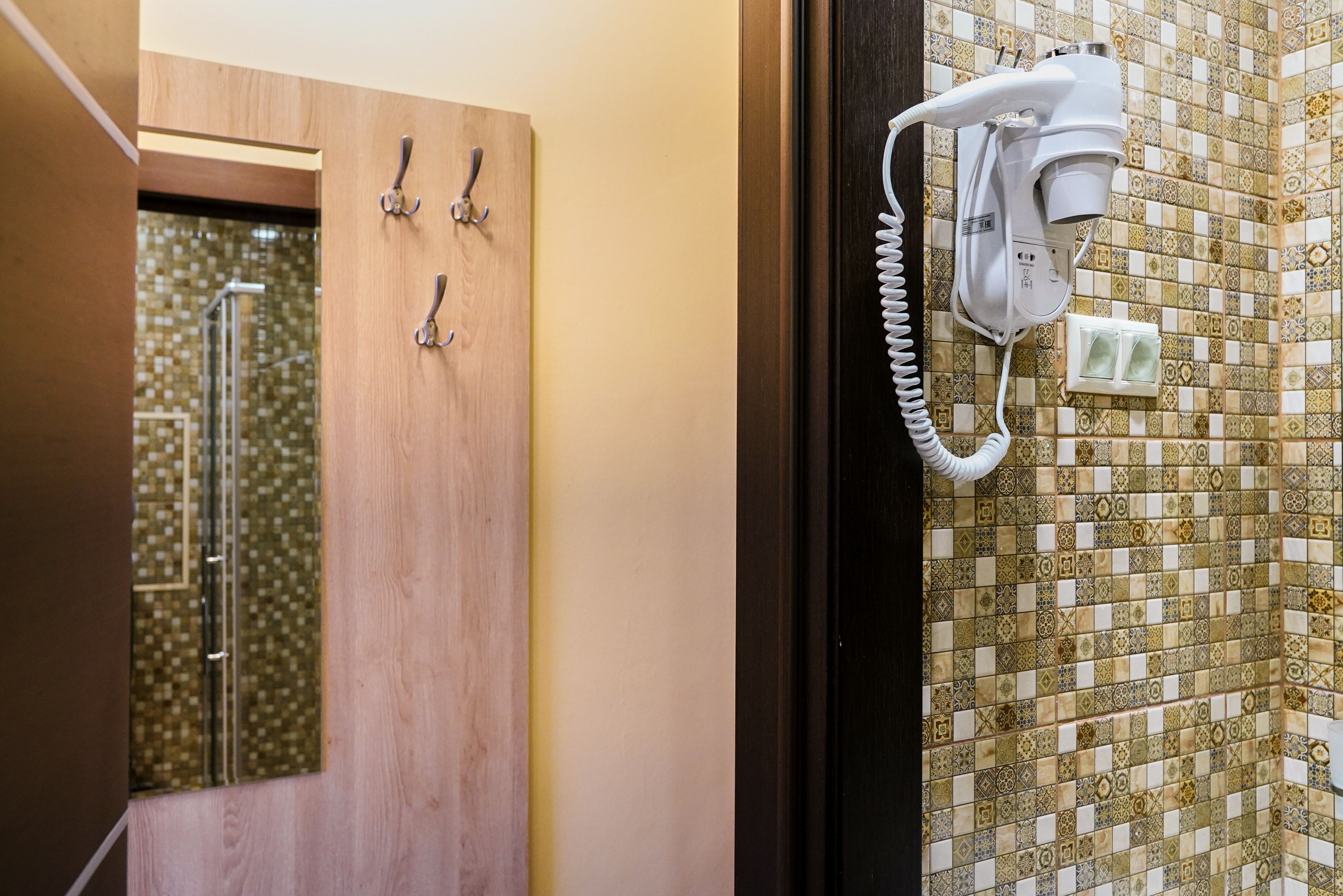 В номере: вешалка, зеркало, кровать односпальная, прикроватная тумбочка, стол, стул, шкаф, гладильная доска, кондиционер, мини-холодильник, сейф, телевизор, телефон, утюг, чайный набор посуды, электрочайник