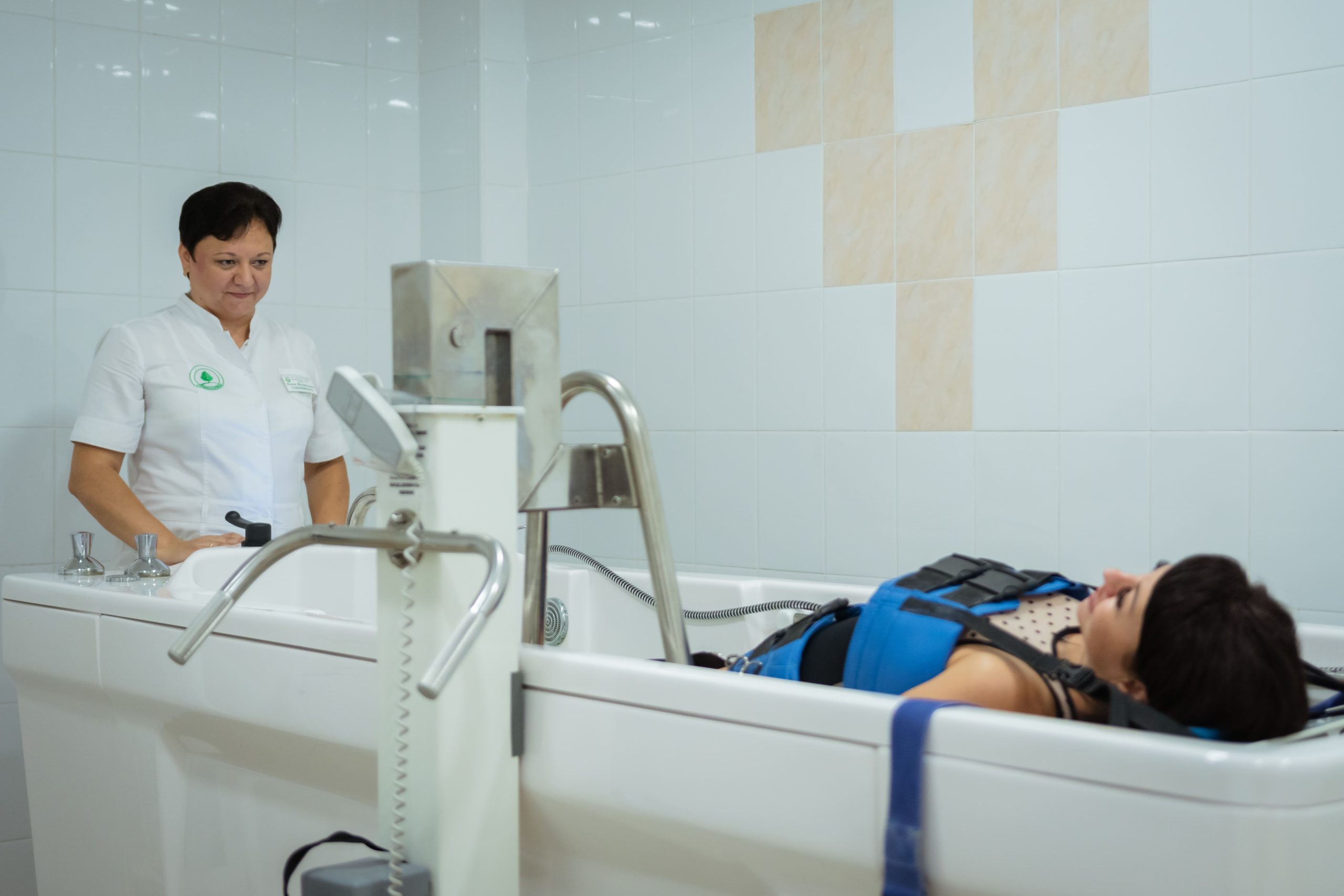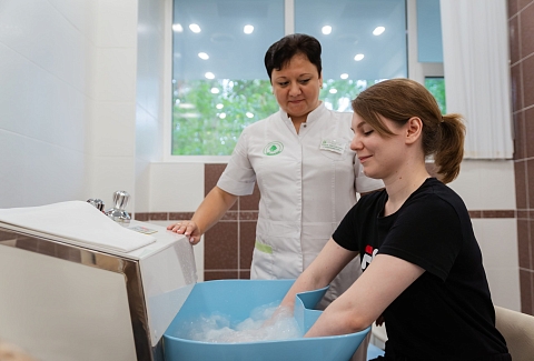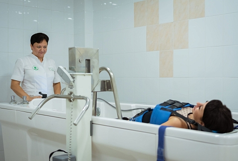 - водолечение (ванны: минеральные, морские, хвойные, йодо-бромные, крахмальные, бишофитные, валериановые, сухие углекислые ванны; души: циркулярный, веерный, душ Шарко, восходящий душ; вихревые камерные ванны: морские, скипидарные, минеральные)