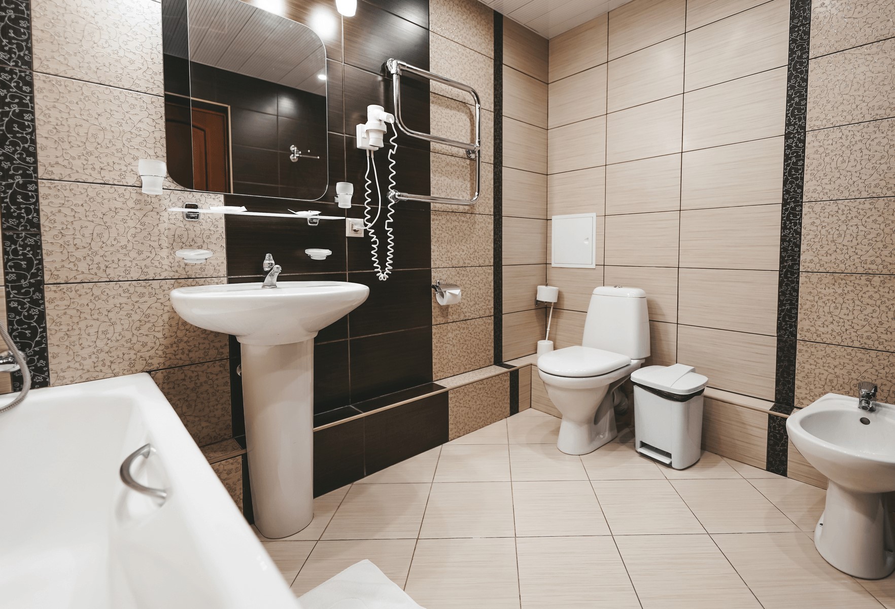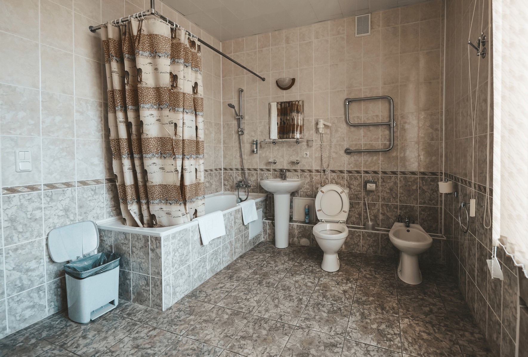 Санузел: биде, с ванной, тапочки, туалетные принадлежности, фен, халат