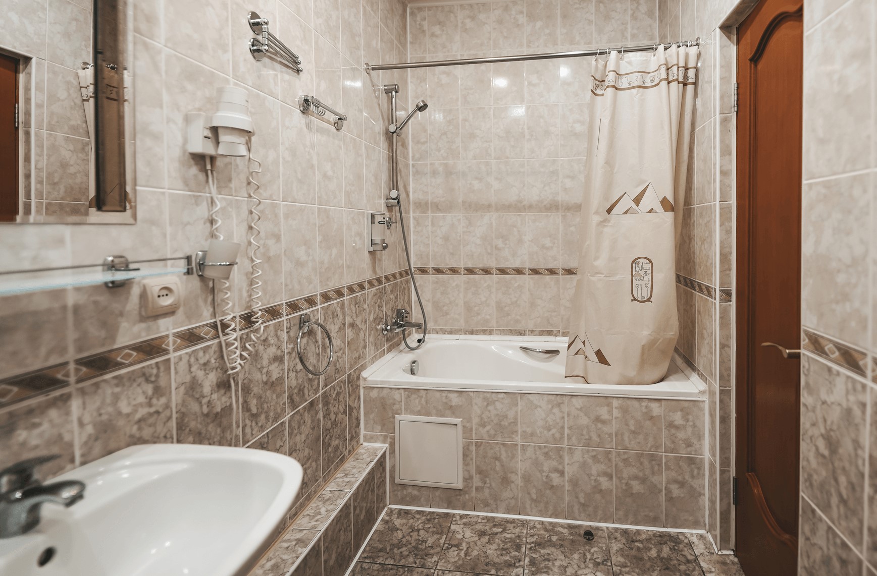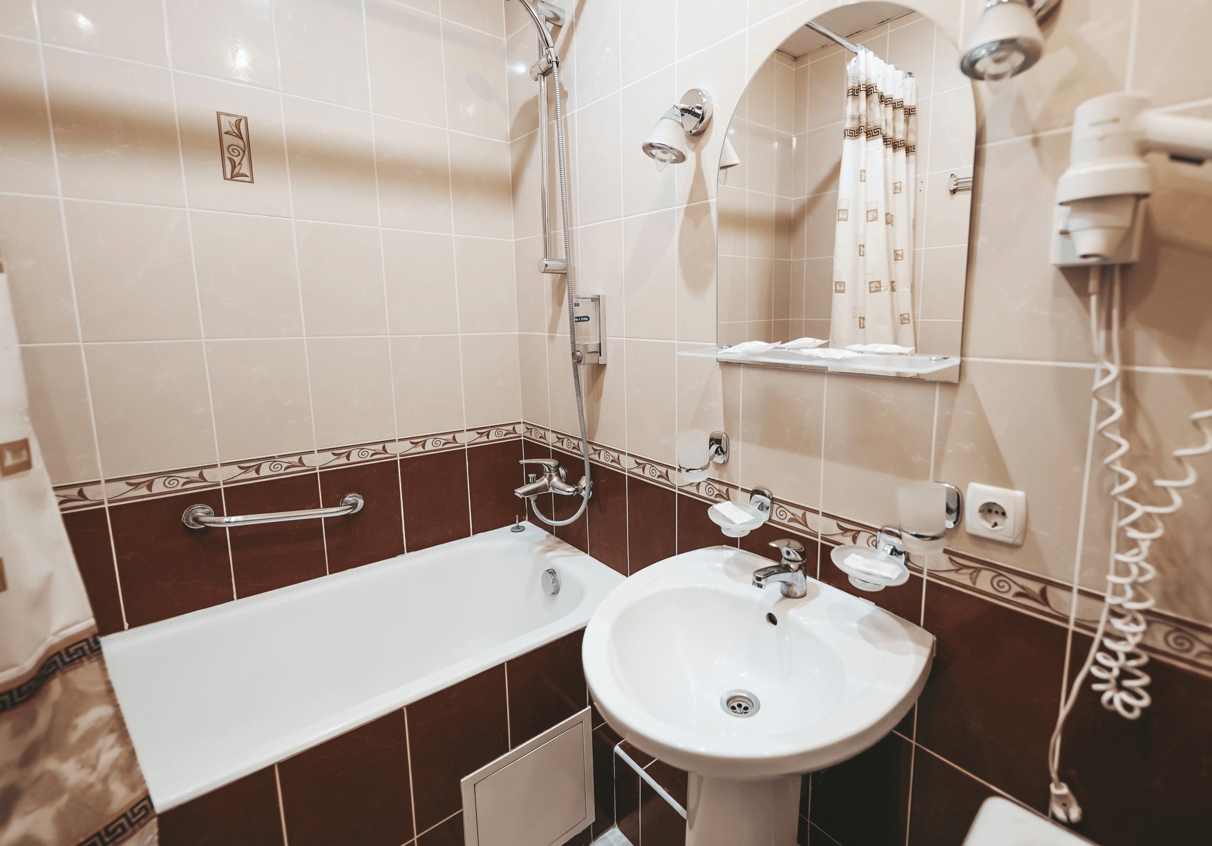 Санузел: с ванной, туалетные принадлежности, фен