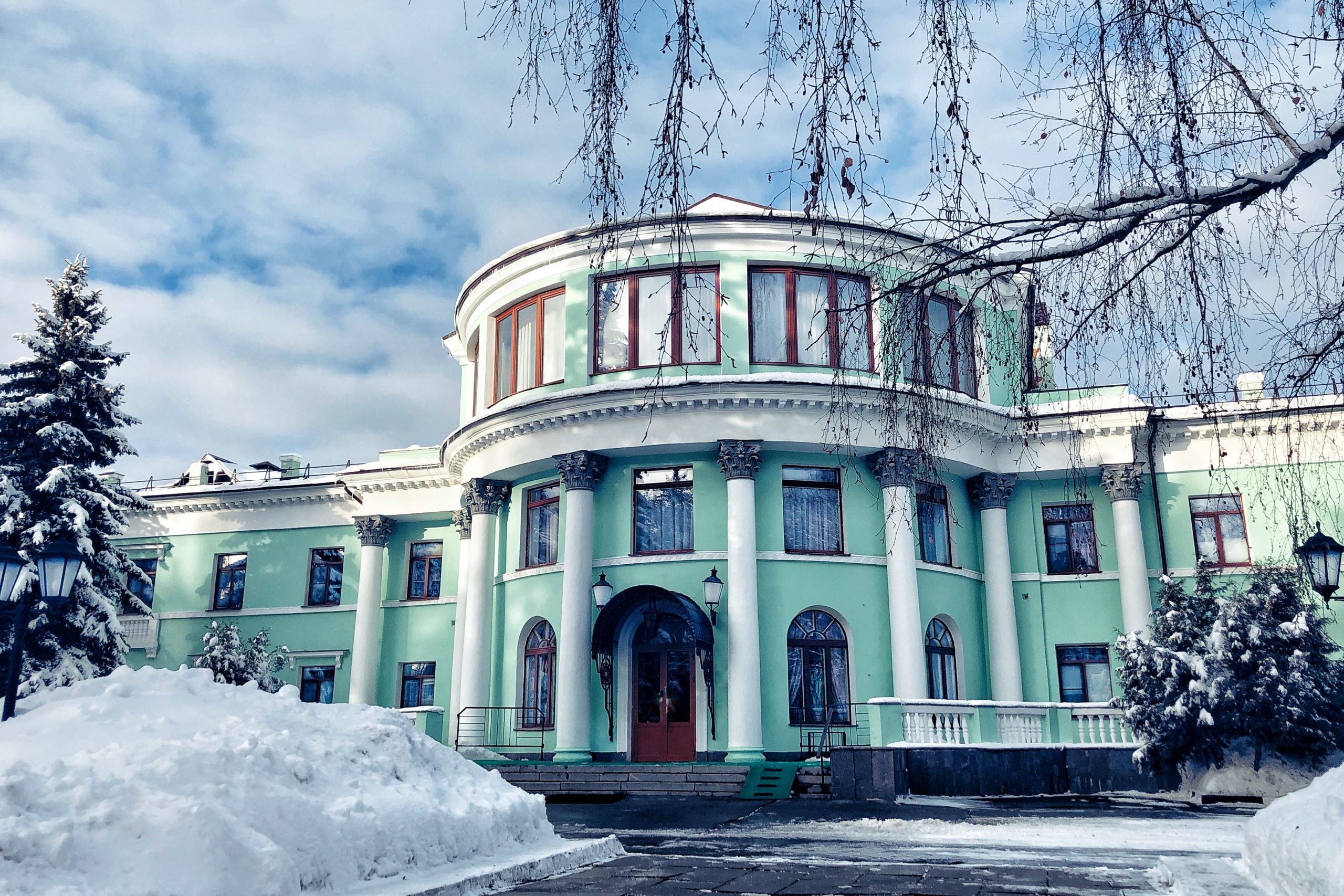 Поездом до ж/д вокзала Павелецкий, далее на электричке до станции «Домодедово», далее на автобусе № 32 до остановки «Санаторий Подмосковье», далее пешком 1,4 км ≈ 17 мин.