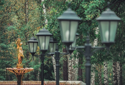 Территория санатория составляет 118 га и, почти полностью окружена и засажена нетронутым смешанным лесом. У санатория имеется свой пруд с организованной зоной отдыха. Вся лесопарковая площадь поделена на части настоящими терренкурами, разной протяженности от 800 м до 4 км, облагорожена ландшафтным дизайном, прогулочными дорожками и является одним из ценнейших факторов, создающих уникальный микроклимат этих мест. На территории санатория есть собственная скважина с минеральной водой, схожей по своим качествам и составу с водой Мертвого моря. В санатории есть два отдельных жилых корпуса. Первый 7-этажный корпус, постройки 1976 г., рассчитан на 300 человек. Корпус «люкс» – 2-этажное здание в классическом стиле дворцовой усадьбы ХIХ века. Просторные холлы, зимние сады, оригинальные картинные галереи, комфортабельные номера со всеми удобствами располагают к приятному отдыху и полноценному восстановлению сил и здоровья. Для более уединенного и спокойного отдыха предназначены комфортабельные коттеджи, находящиеся отдельно, в лесу. Для отдыхающих санатория организовано 4-разовое питание: в большом корпусе по системе «шведского стола», в маленьком корпусе – «меню-заказ» Санаторий имеет специализацию по лечению болезней пищеварительной системы, сердца, сосудов, опорно-двигательной системы, заболеваний органов дыхания и более 20 разработанных специализированных, базовых и реабилитационных программ лечения: оздоровительные, программы реабилитации после инфаркта, инсульта и операций на сердце, урологическая реабилитация, программа похудения, программа для беременных, программы очищения и диагностики организма. Но самых больших успехов санаторий достиг при разработке специальных реабилитационных программ для пациентов с кардиологическими (инфаркты, ИБС) и неврологическими (инсульты, операции на позвоночнике) проблемами В санатории предоставляют услуги массажного кабинета, SPA-салона, парикмахерской, косметического кабинета. Имеется огромный закрытый бассейн (площадью 25м*18м). Можно посещать современную библиотеку. Для любителей спорта работает тренажерный и спортивный залы, открыты площадки для мини-футбола, волейбольных и баскетбольных игр, теннисный корт, крытый зимний каток. В зимнее время санаторий располагает трассами для лыжного спорта. По желанию можно прибегнуть к услугам инструкторов по фитнесу, аквааэробике и лечебной физкультуре Для развлечений открыты залы с бильярдом, караоке, можно посмотреть фильм или принять участие в концертной программе. За отдельную плату санаторий дает в аренду спортивный инвентарь (коньки, лыжи, велосипеды и др.). Для корпоративных встреч в санатории имеется большой конференц-зал на 300 мест