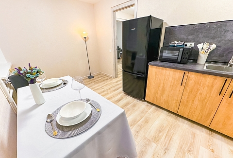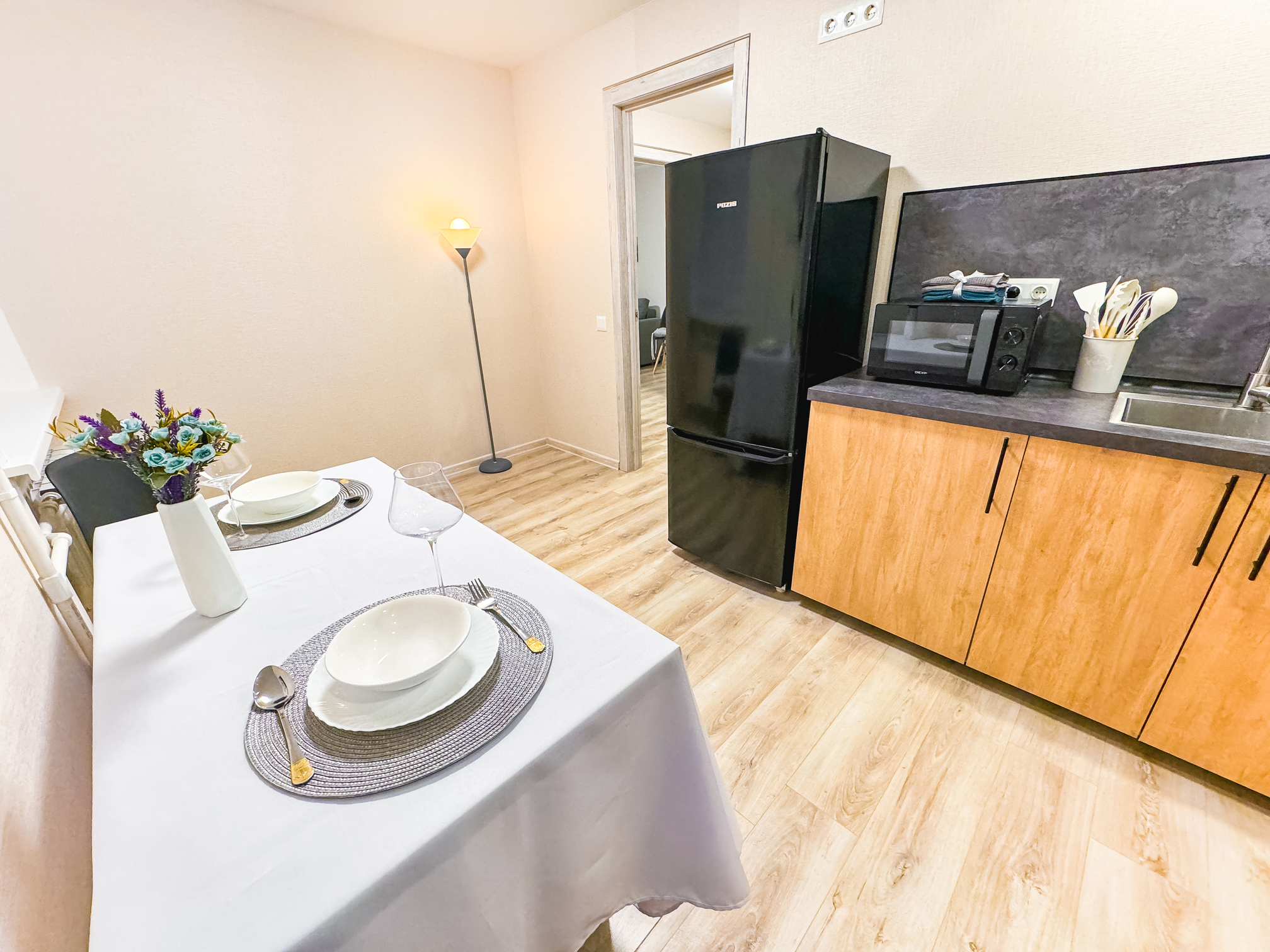 Единый стандарт качества: постельное белье из прачечной. Влажная уборка после каждого выезда. Наличие необходимых в быту вещей: личные средства гигиены, посуда, техника.Современные апартаменты сочетает в себе стиль и функциональность, создавая атмосферу, где каждый гость сможет расслабиться и насладиться временем вдали от дома.