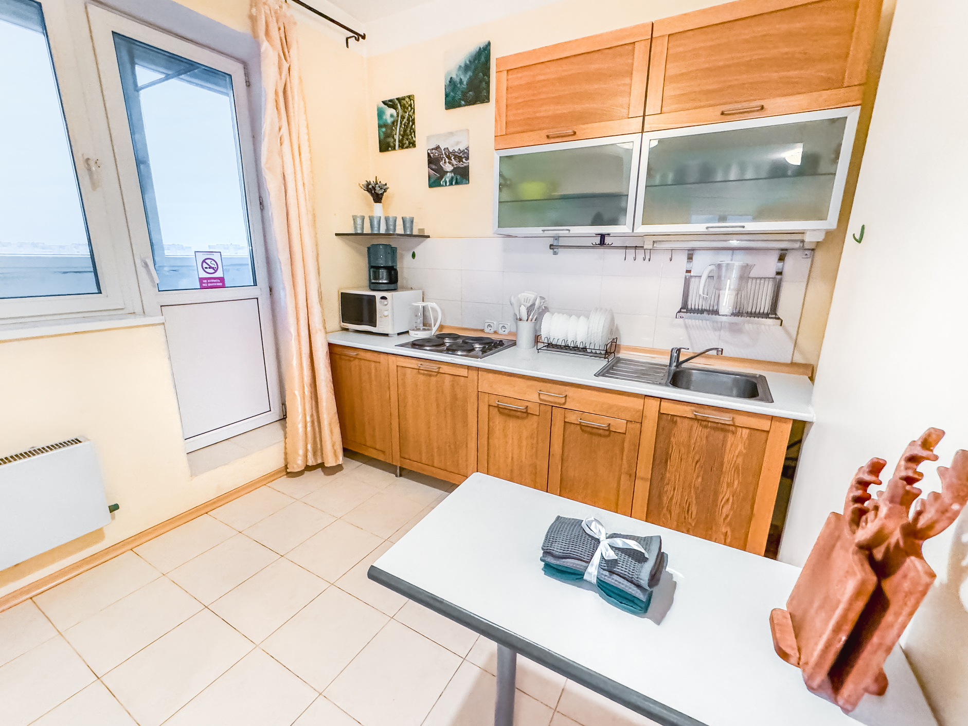 Единый стандарт качества: постельное белье из прачечной. Влажная уборка после каждого выезда. Наличие необходимых в быту вещей: личные средства гигиены, посуда, техника.Современные апартаменты сочетает в себе стиль и функциональность, создавая атмосферу, где каждый гость сможет расслабиться и насладиться временем вдали от дома.