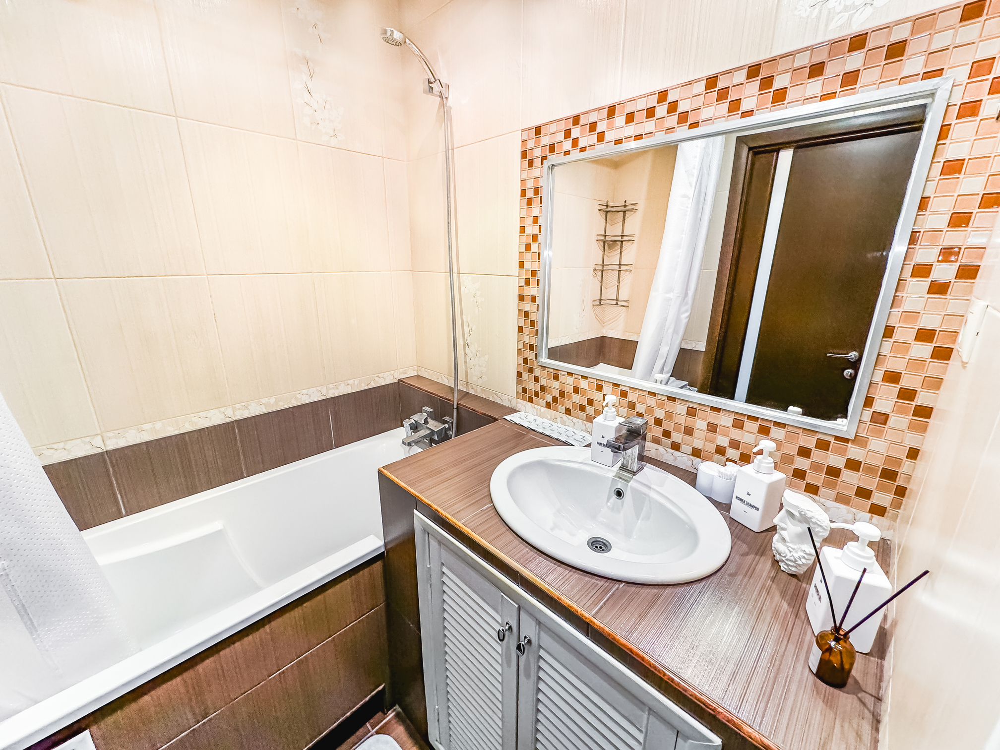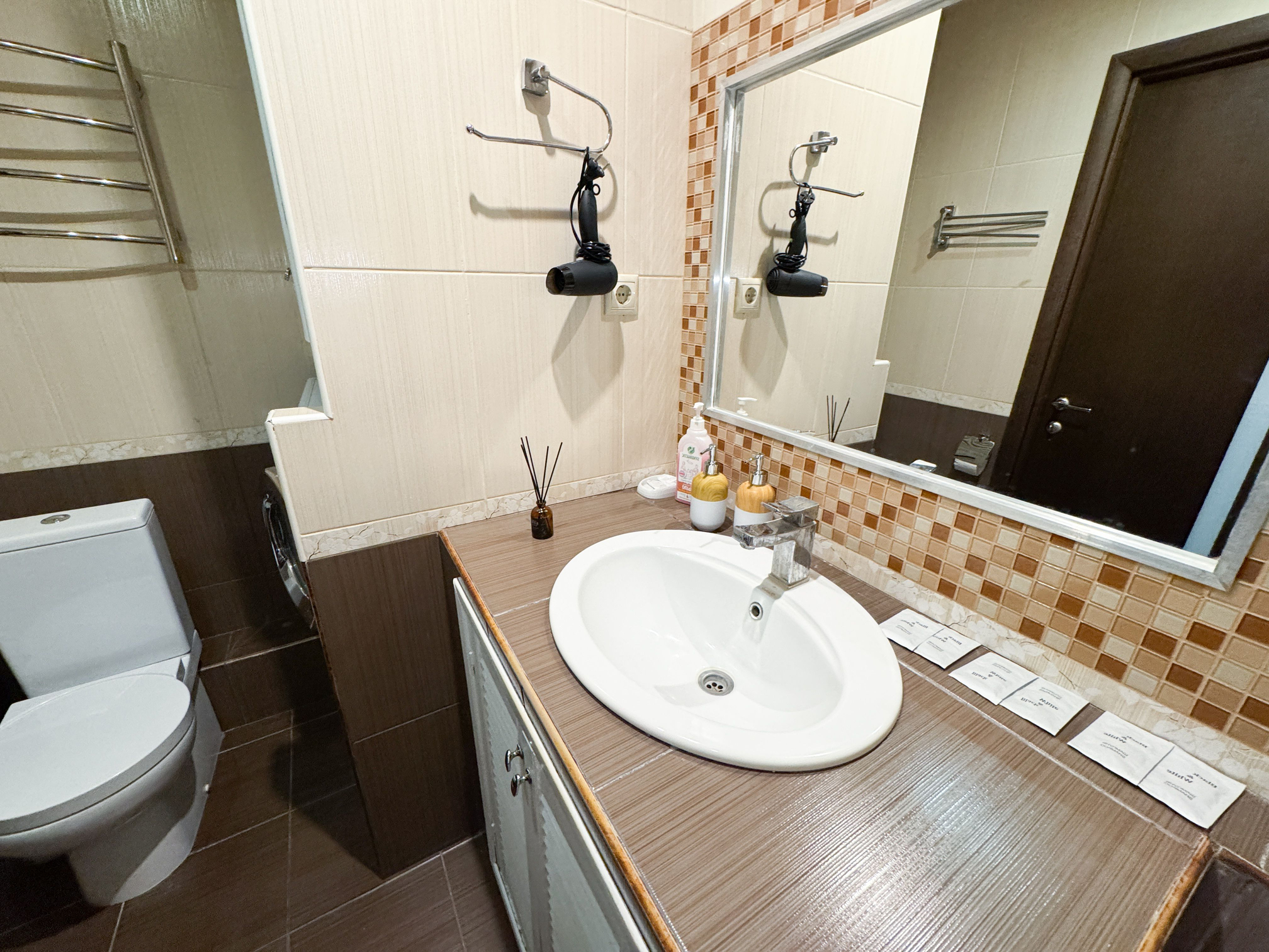 Санузел: с душем, туалетные принадлежности, фен