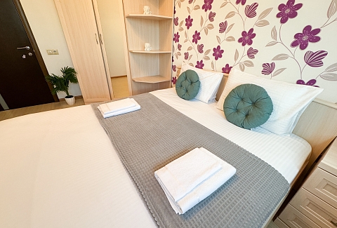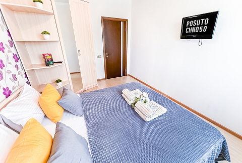 Единый стандарт качества: постельное белье из прачечной. Влажная уборка после каждого выезда. Наличие необходимых в быту вещей: личные средства гигиены, посуда, техника.Современные апартаменты сочетает в себе стиль и функциональность, создавая атмосферу, где каждый гость сможет расслабиться и насладиться временем вдали от дома.