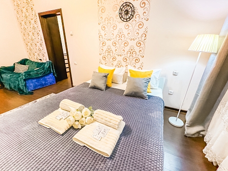 Единый стандарт качества: постельное белье из прачечной. Влажная уборка после каждого выезда. Наличие необходимых в быту вещей: личные средства гигиены, посуда, техника.Современные апартаменты сочетает в себе стиль и функциональность, создавая атмосферу, где каждый гость сможет расслабиться и насладиться временем вдали от дома.