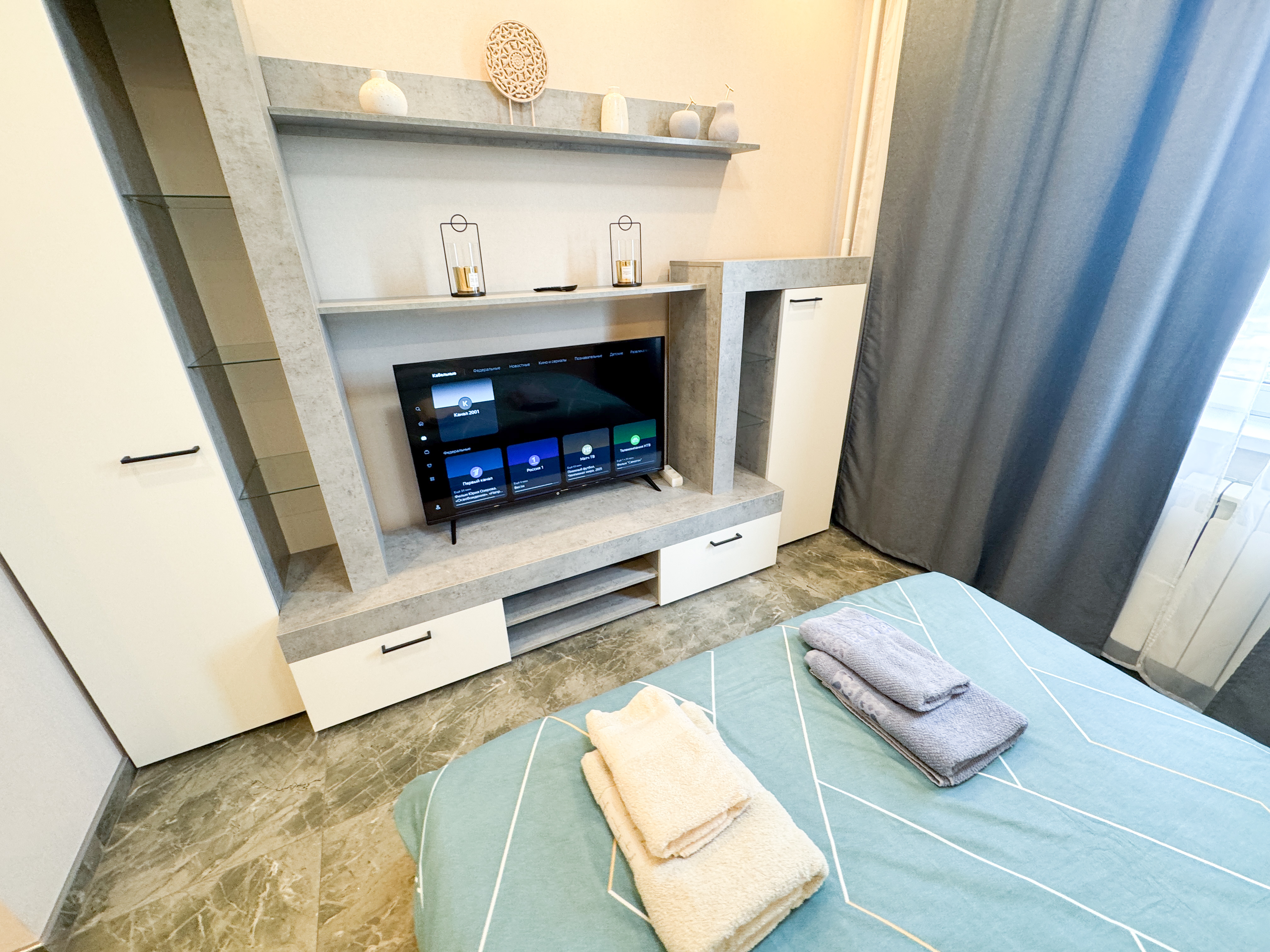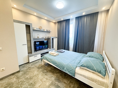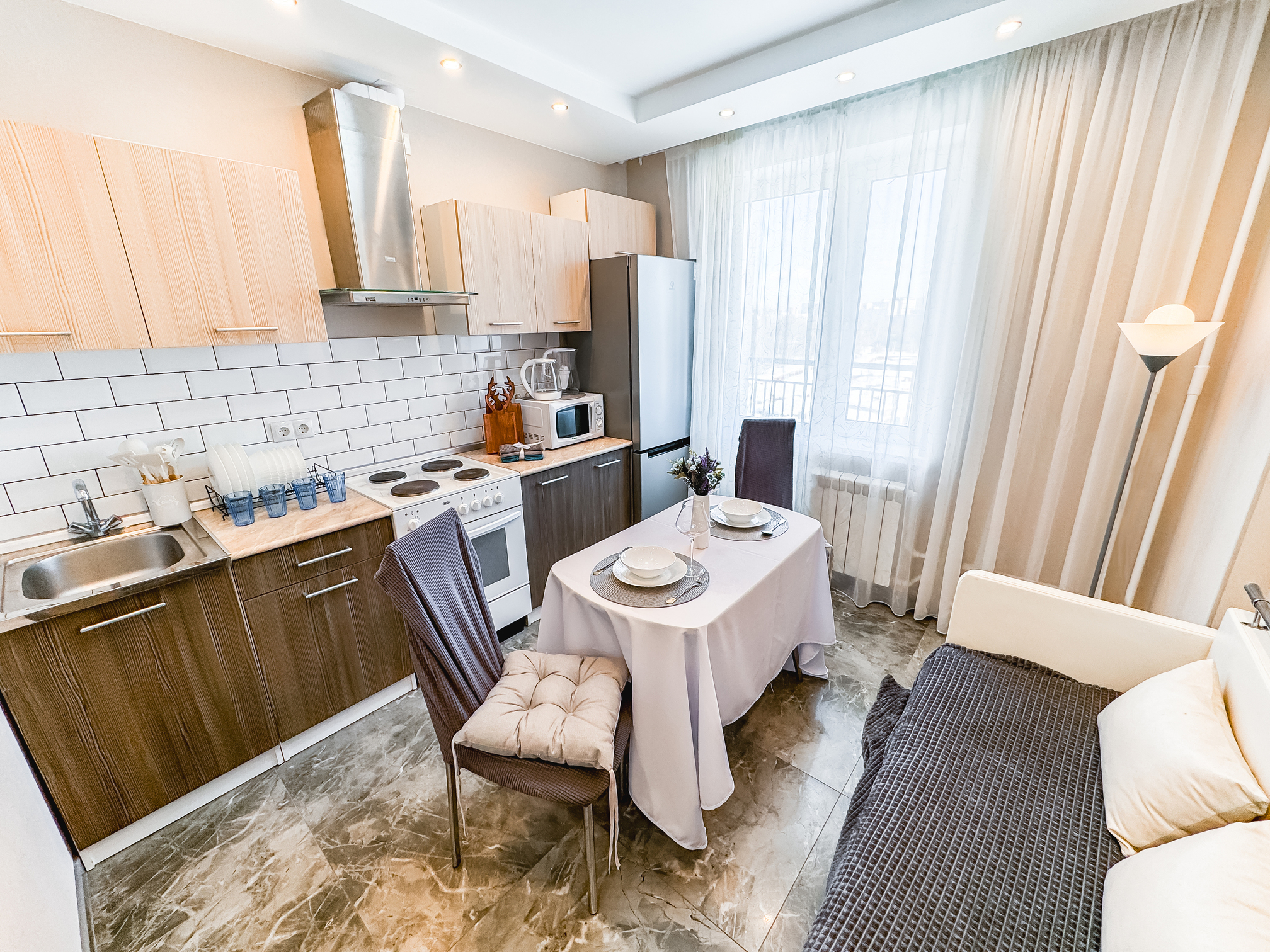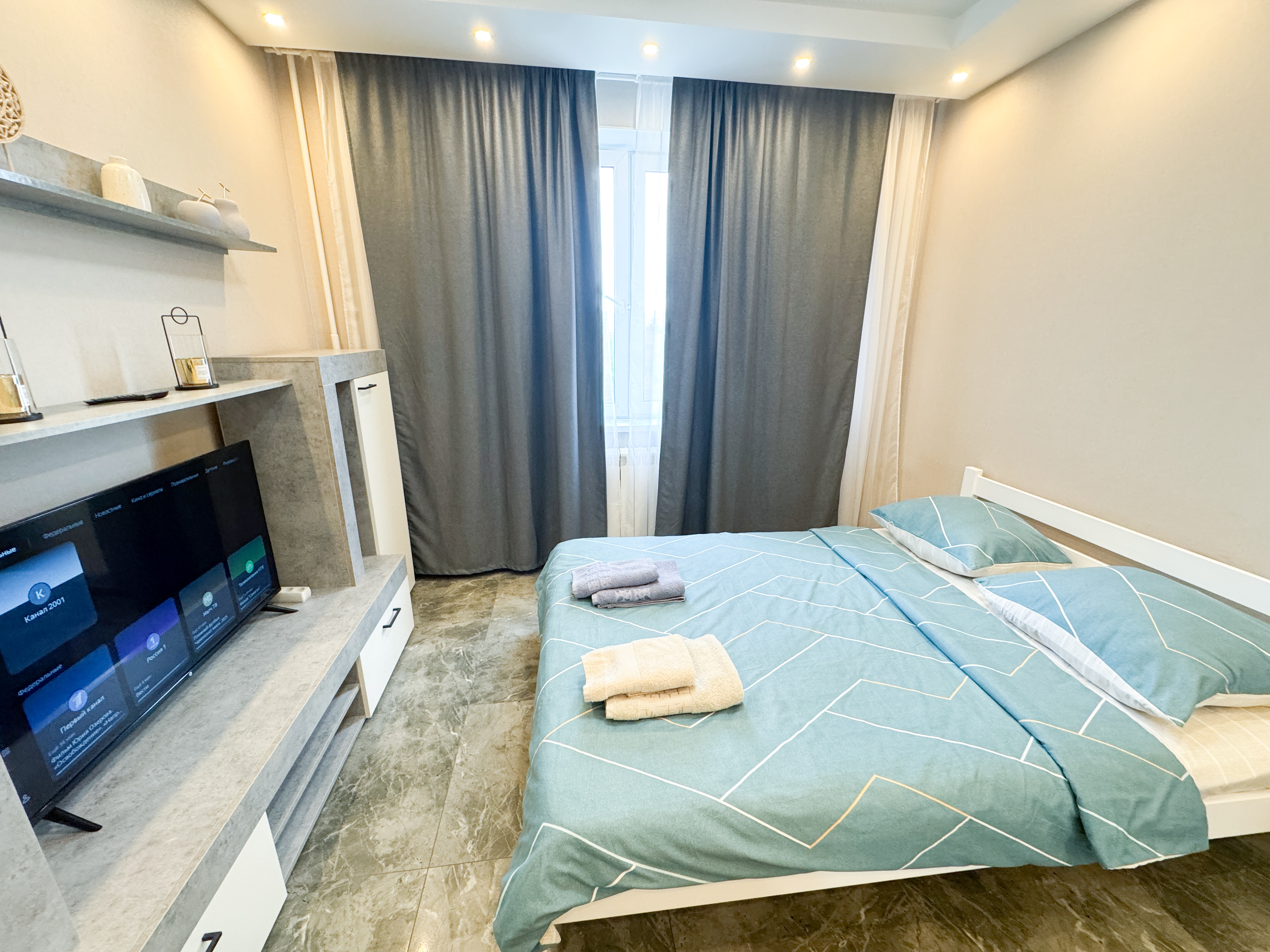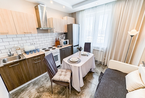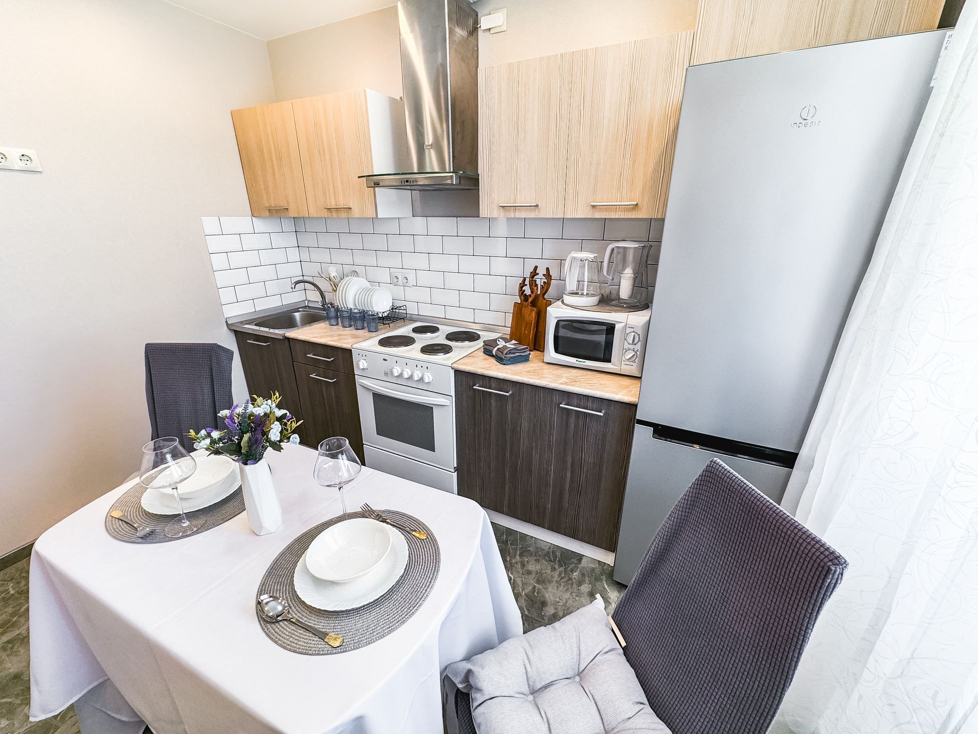Единый стандарт качества: постельное белье из прачечной. Влажная уборка после каждого выезда. Наличие необходимых в быту вещей: личные средства гигиены, посуда, техника.Современные апартаменты сочетает в себе стиль и функциональность, создавая атмосферу, где каждый гость сможет расслабиться и насладиться временем вдали от дома.