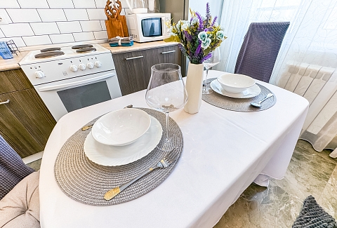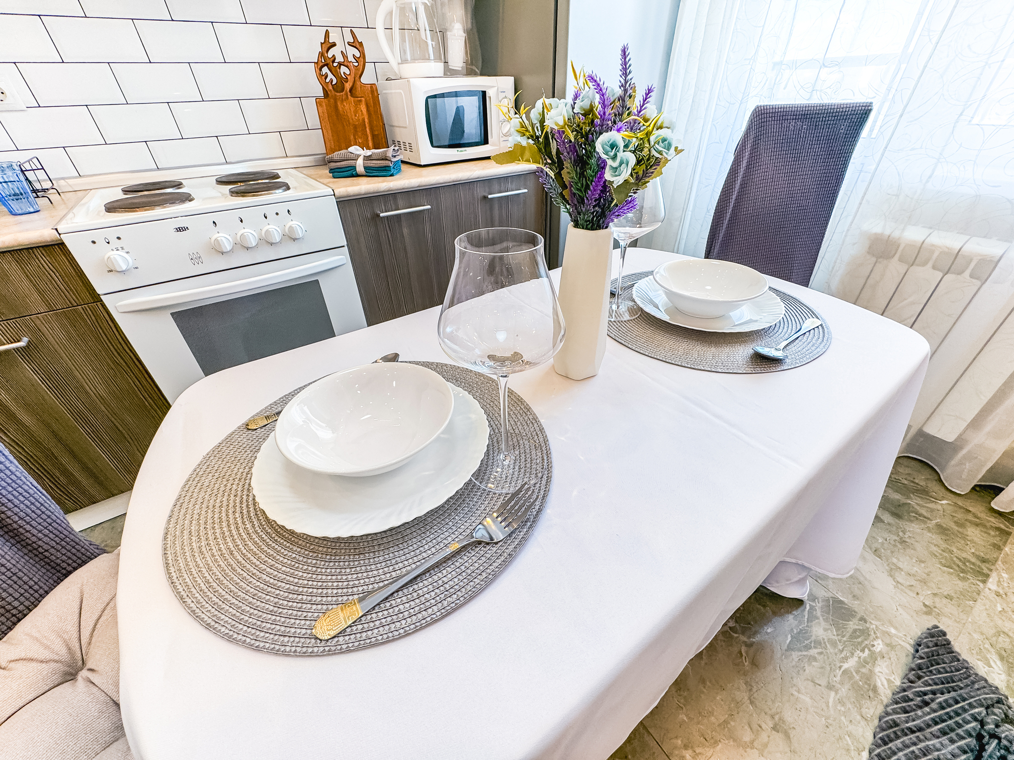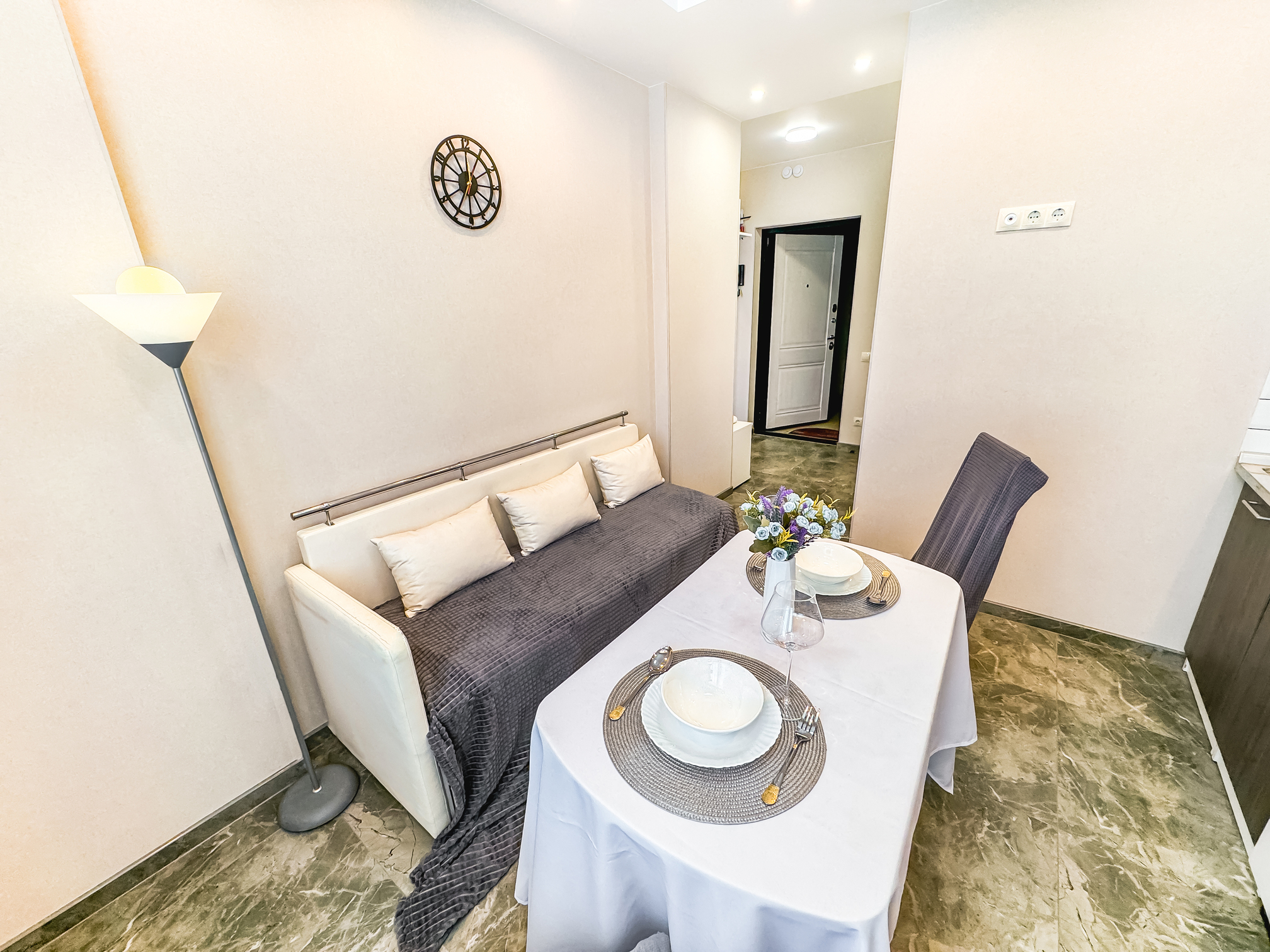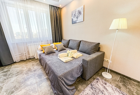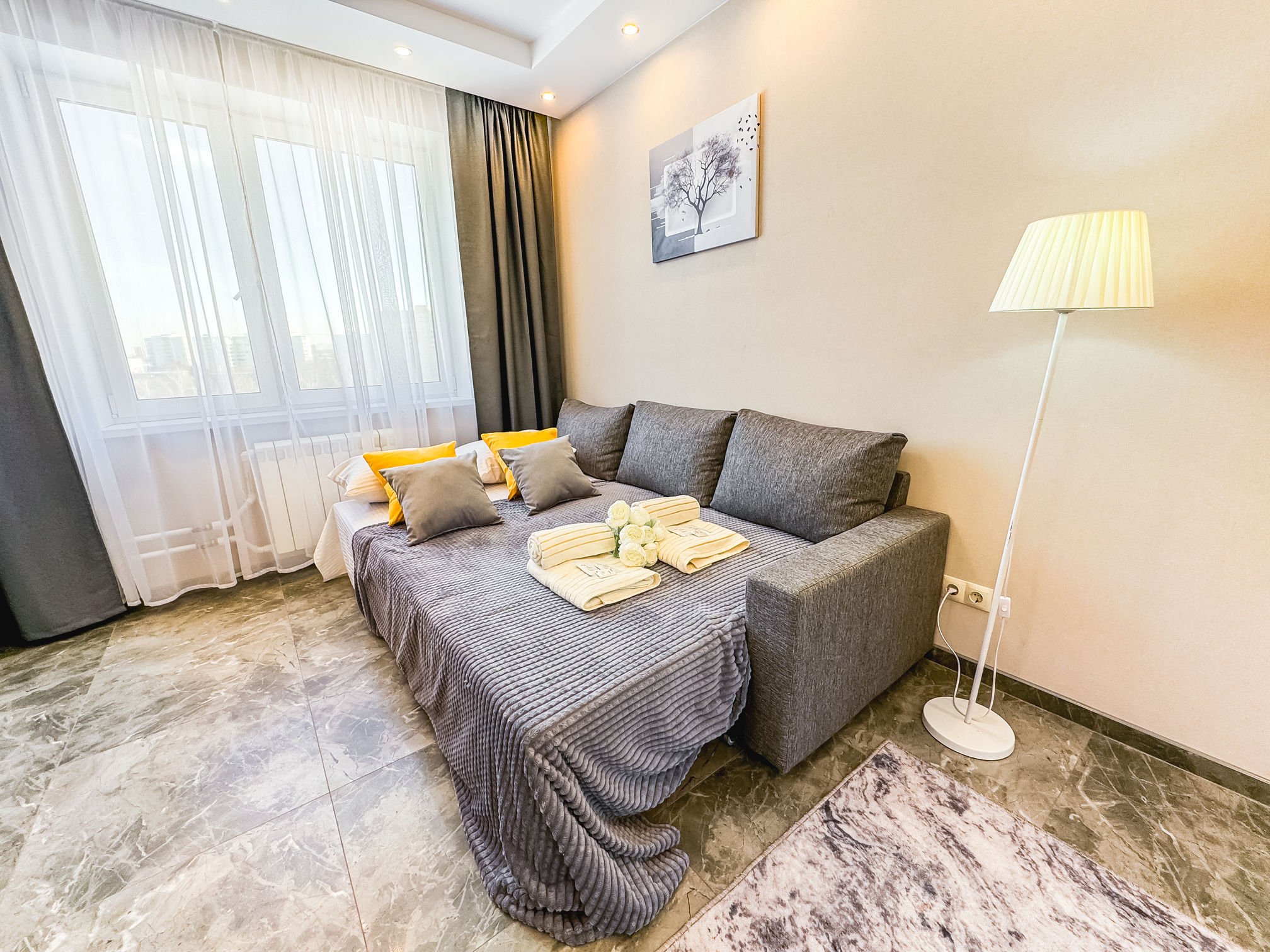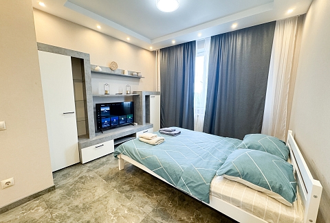 Единый стандарт качества: постельное белье из прачечной. Влажная уборка после каждого выезда. Наличие необходимых в быту вещей: личные средства гигиены, посуда, техника.Современные апартаменты сочетает в себе стиль и функциональность, создавая атмосферу, где каждый гость сможет расслабиться и насладиться временем вдали от дома.
