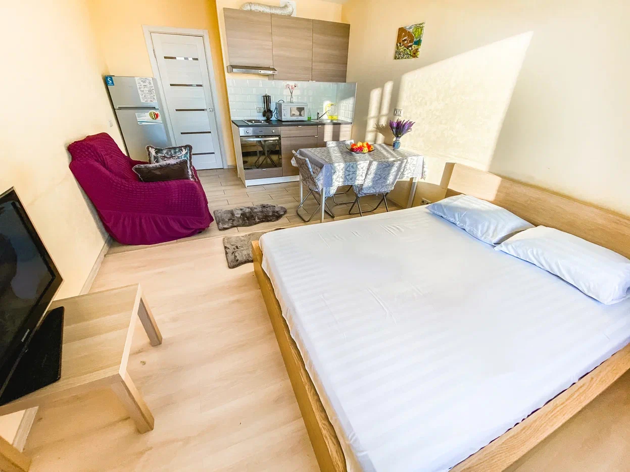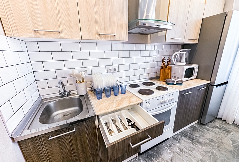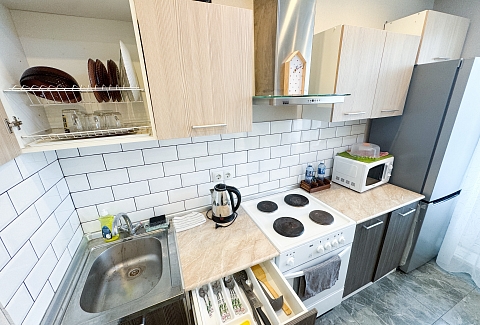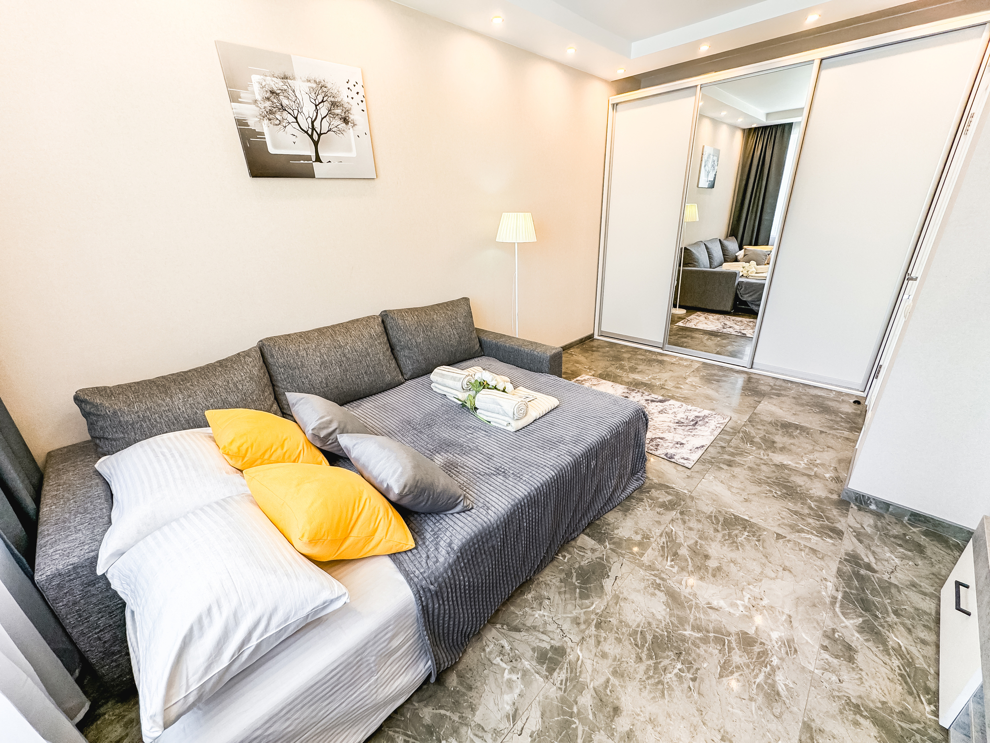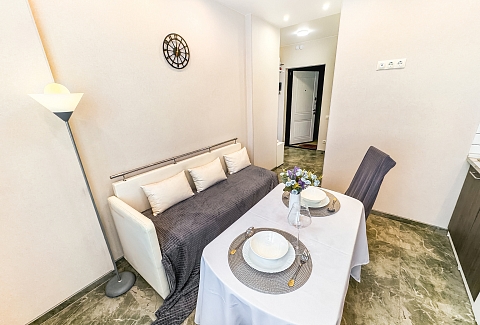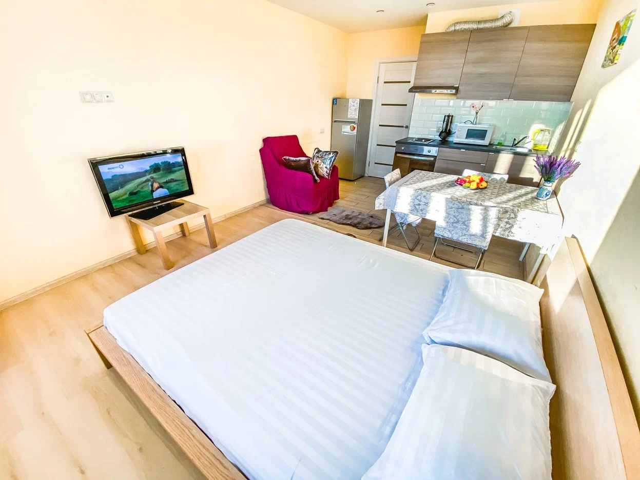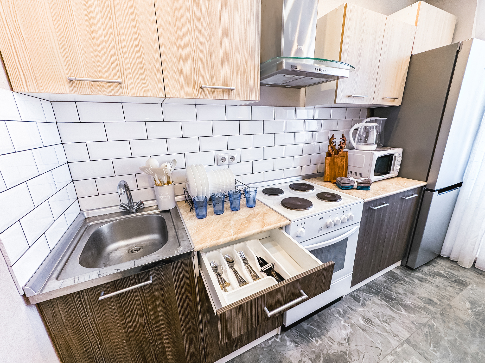 Единый стандарт качества: постельное белье из прачечной. Влажная уборка после каждого выезда. Наличие необходимых в быту вещей: личные средства гигиены, посуда, техника.Современные апартаменты сочетает в себе стиль и функциональность, создавая атмосферу, где каждый гость сможет расслабиться и насладиться временем вдали от дома.