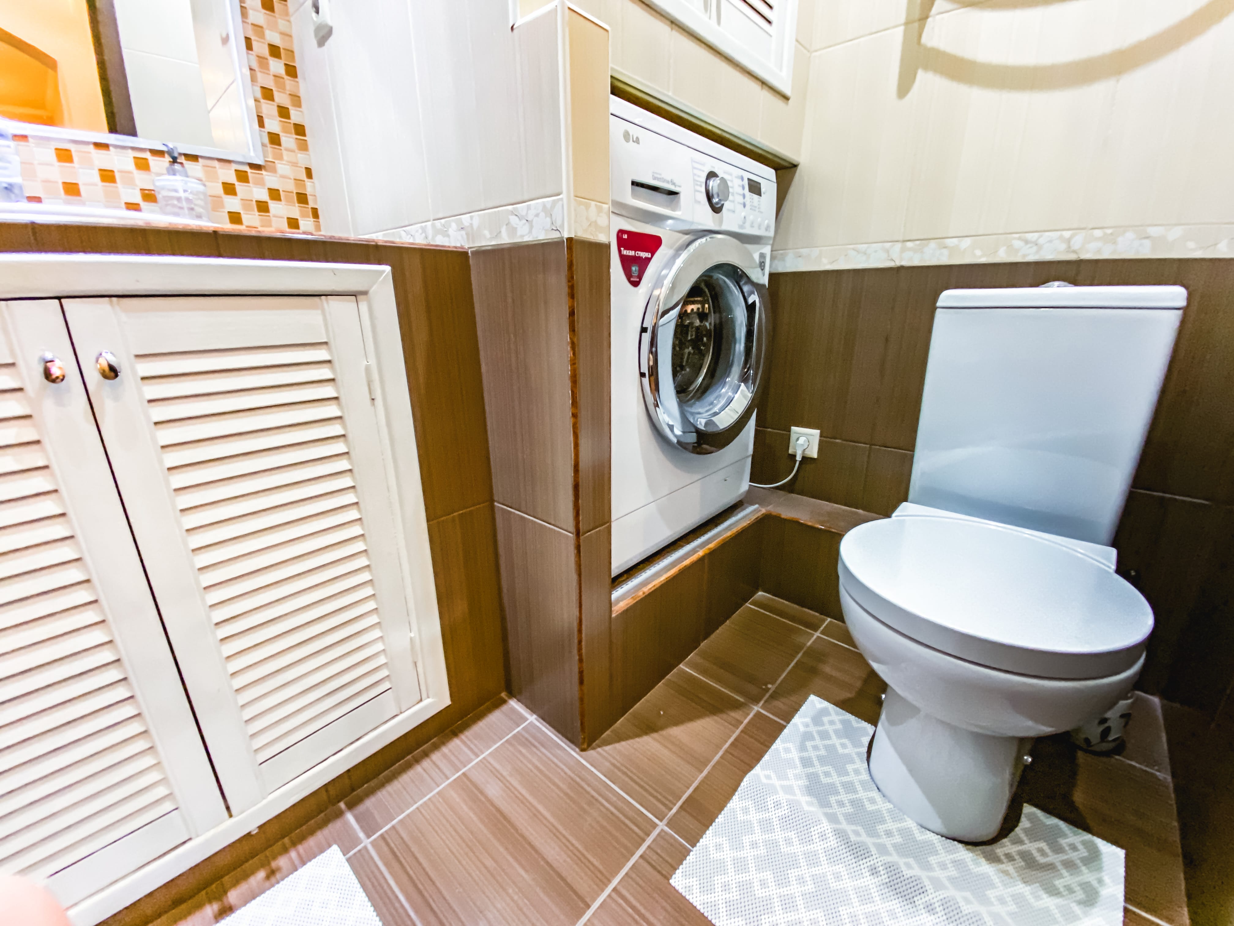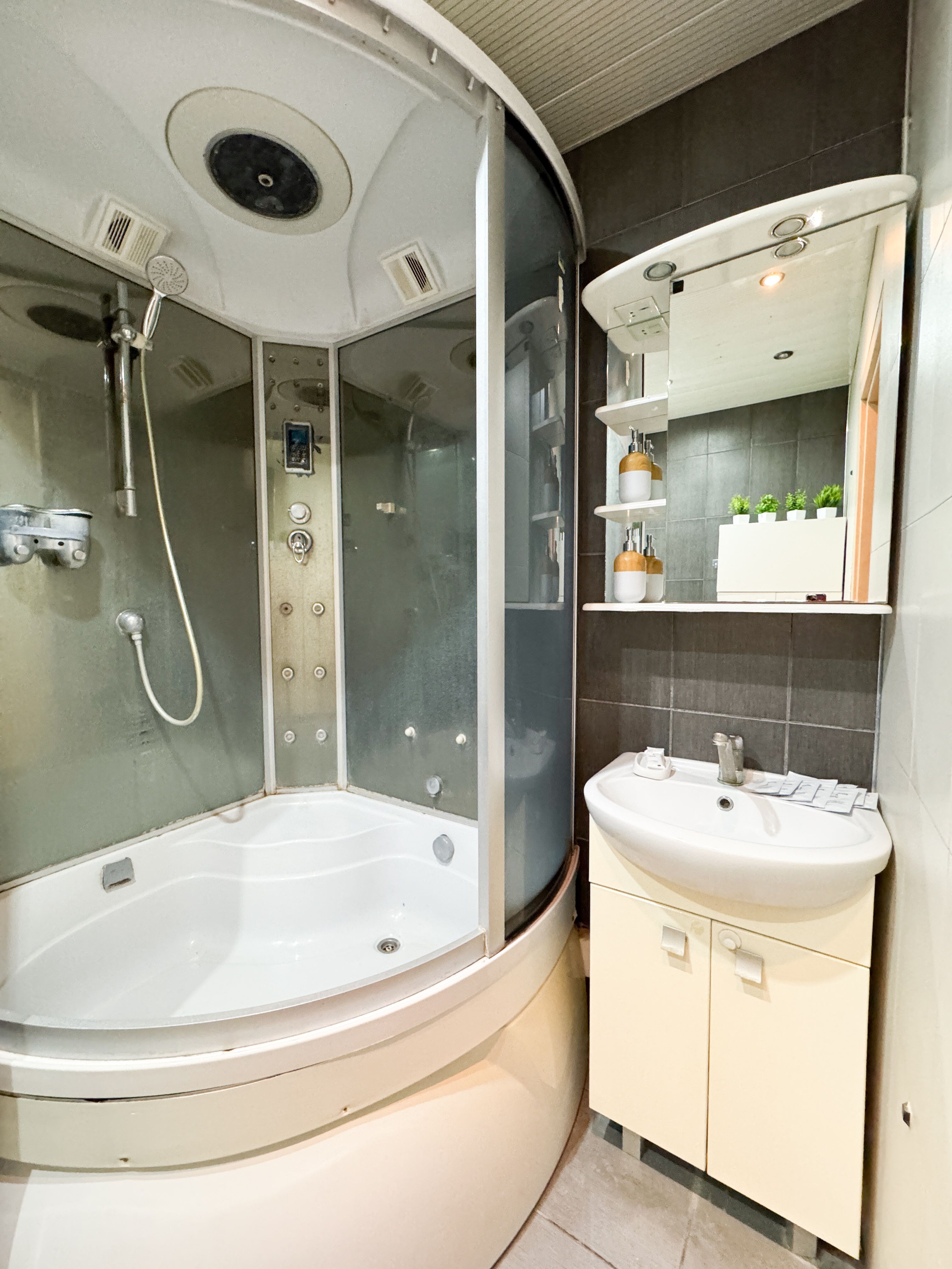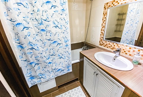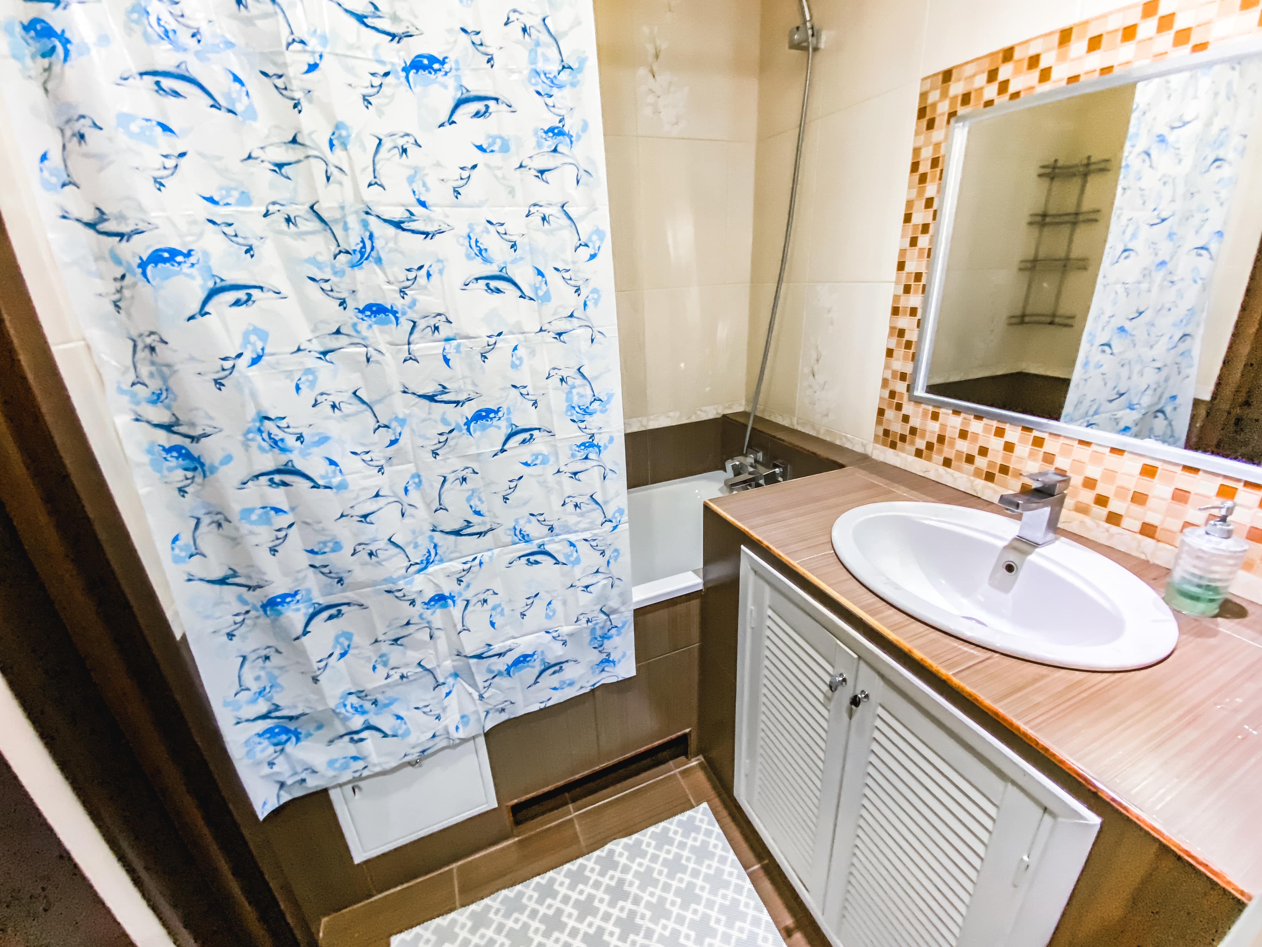 Санузел: с душем, туалетные принадлежности, фен