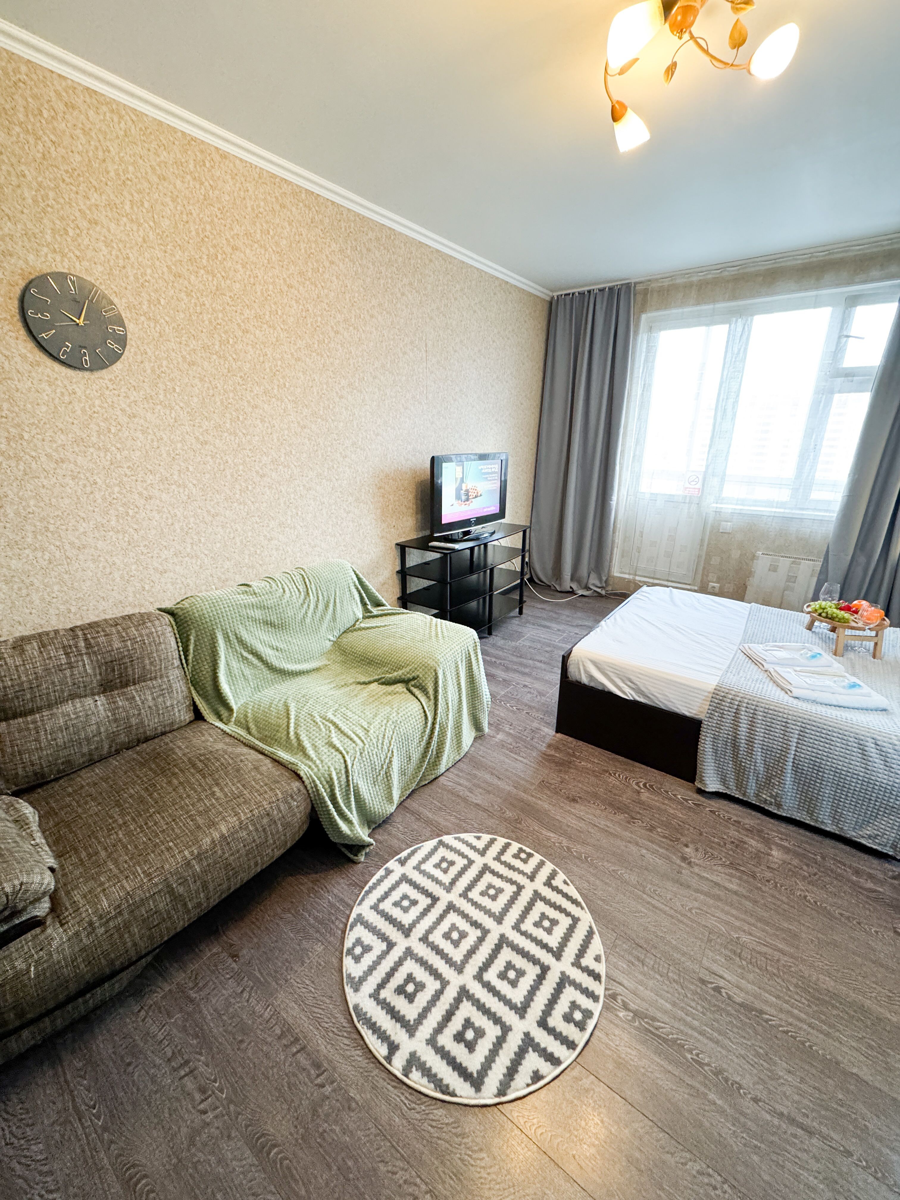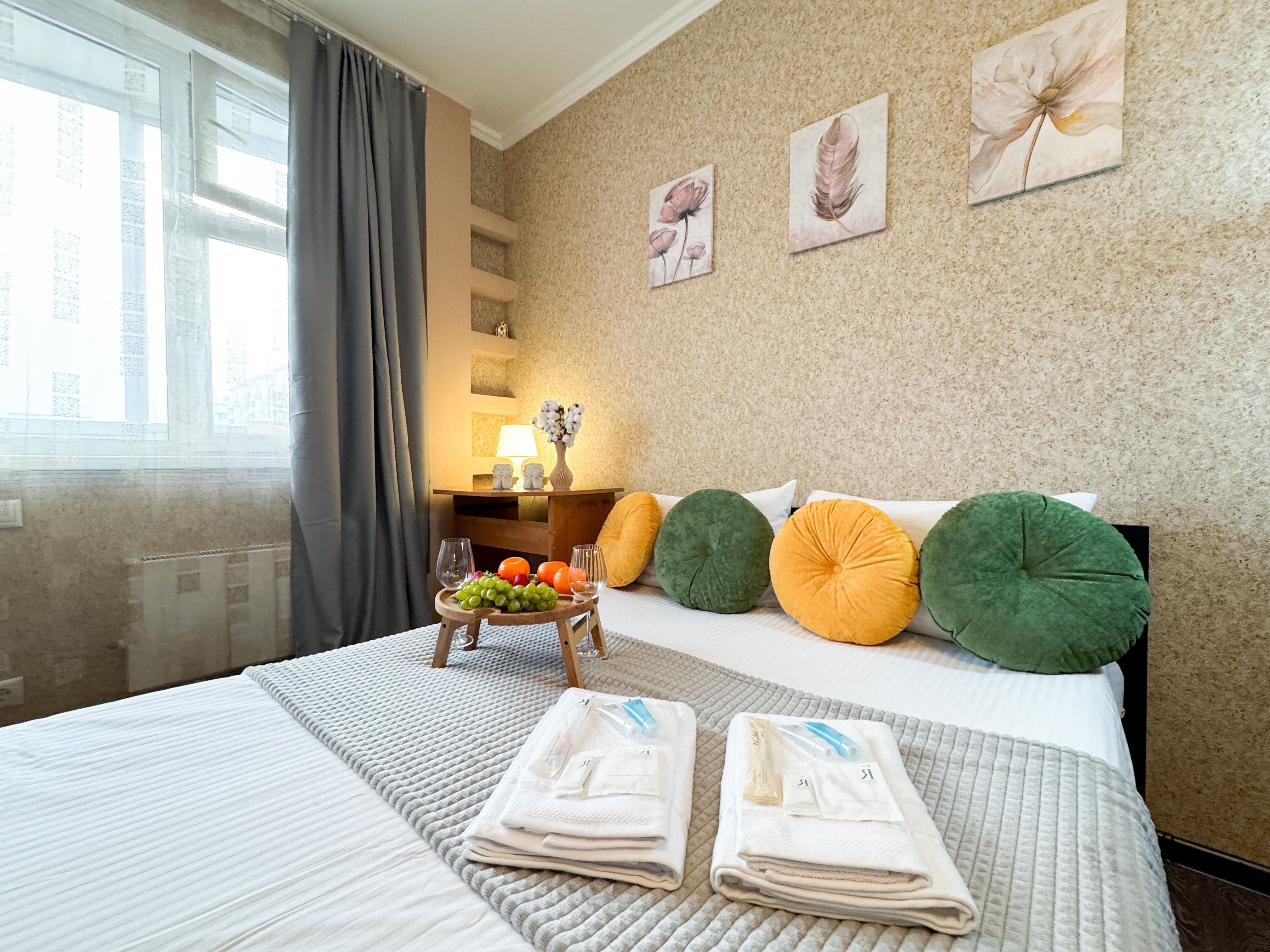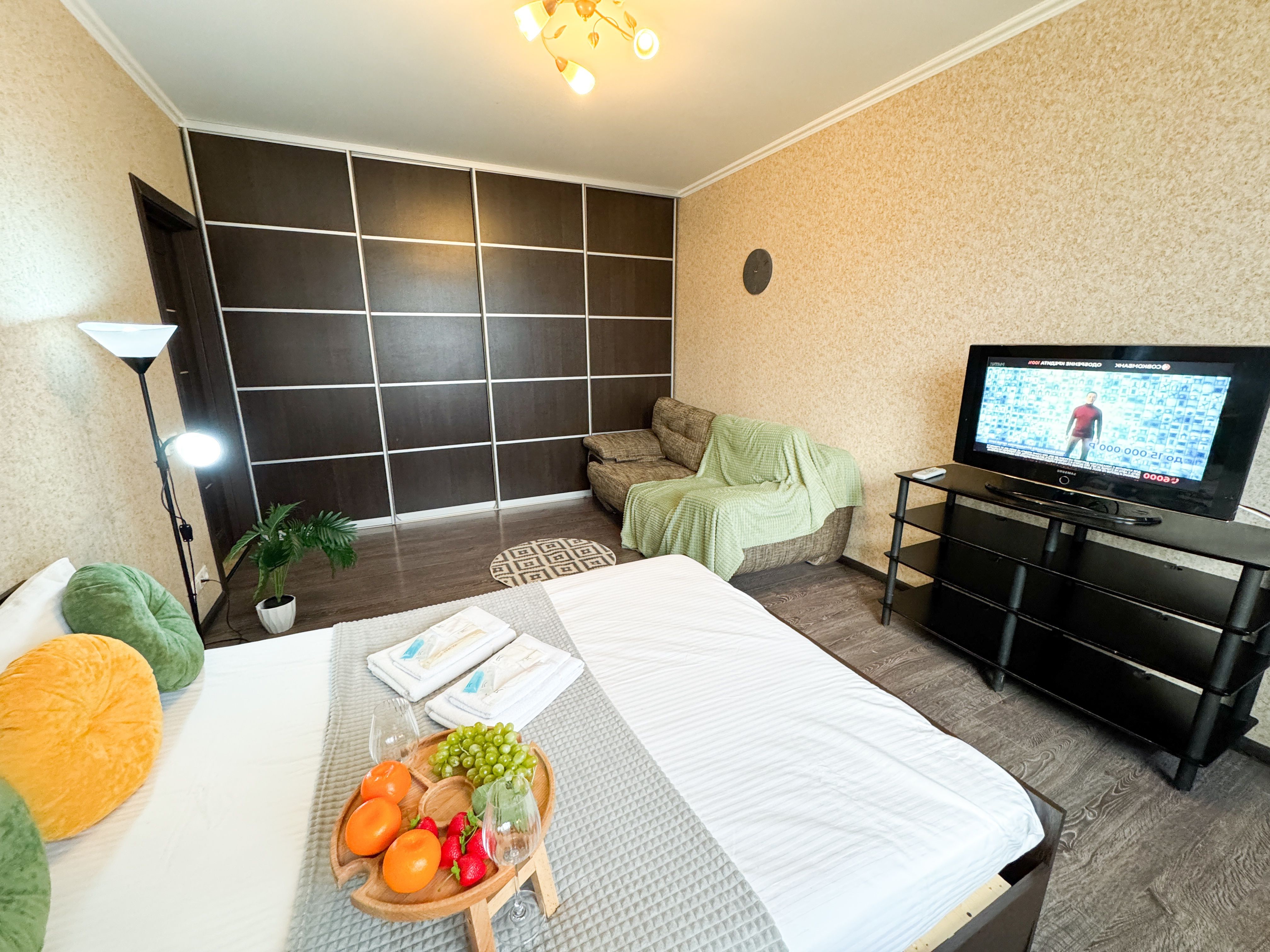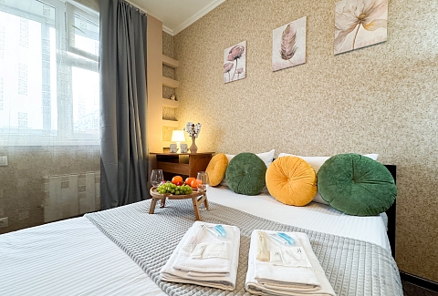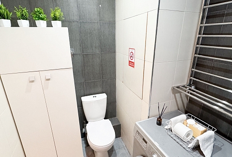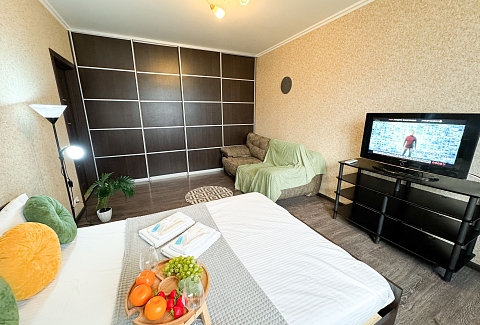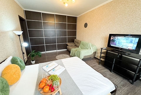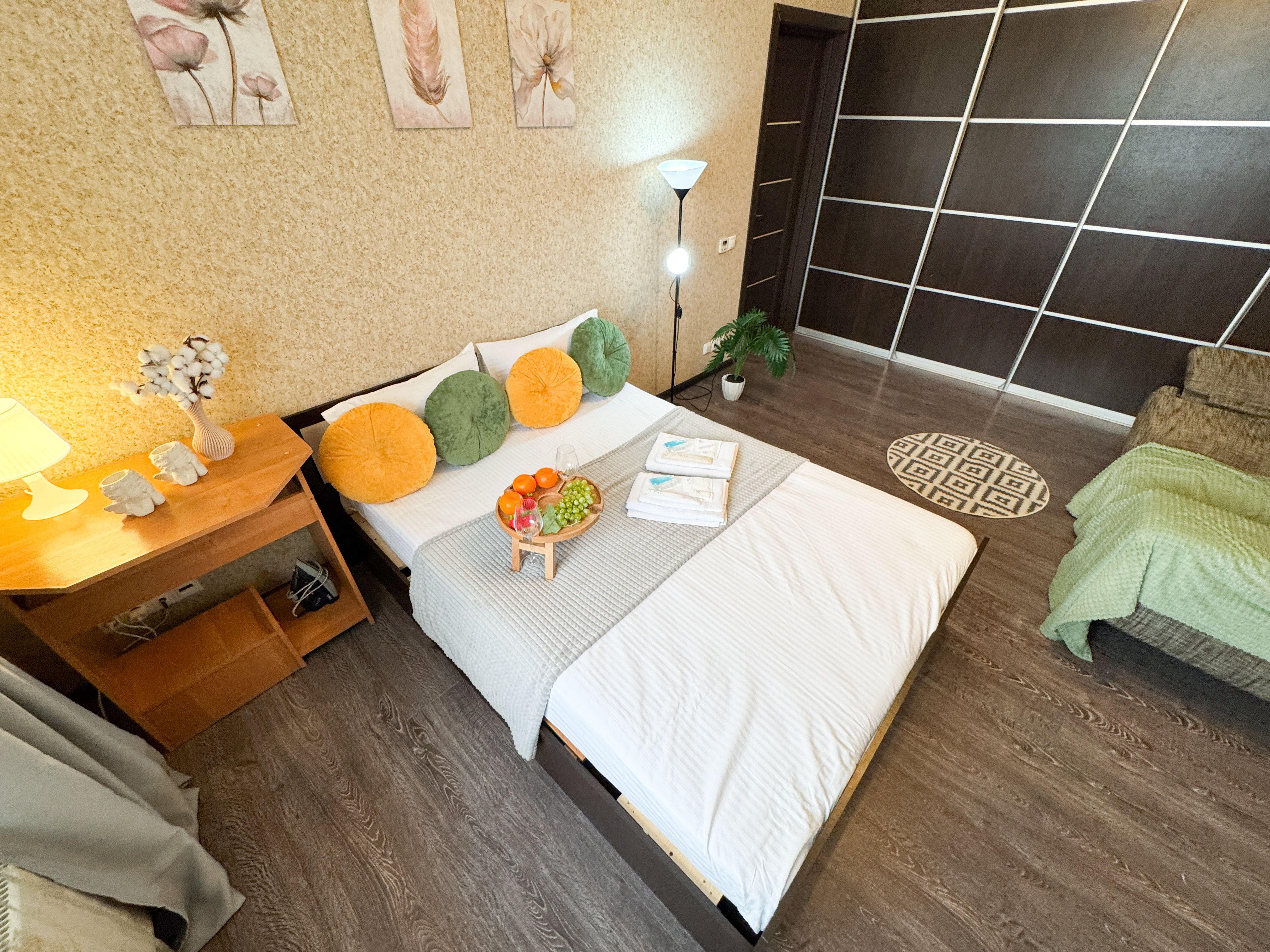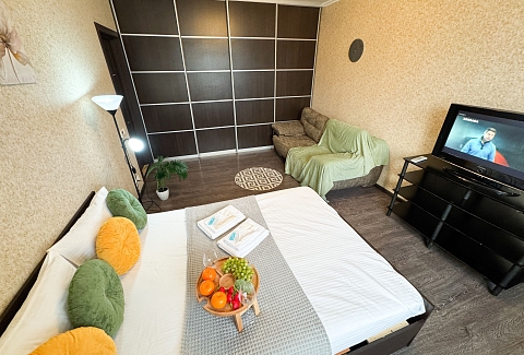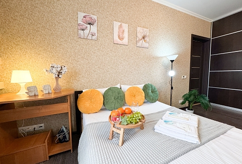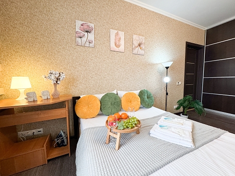 Единый стандарт качества: постельное белье из прачечной. Влажная уборка после каждого выезда. Наличие необходимых в быту вещей: личные средства гигиены, посуда, техника.Современные апартаменты сочетает в себе стиль и функциональность, создавая атмосферу, где каждый гость сможет расслабиться и насладиться временем вдали от дома.