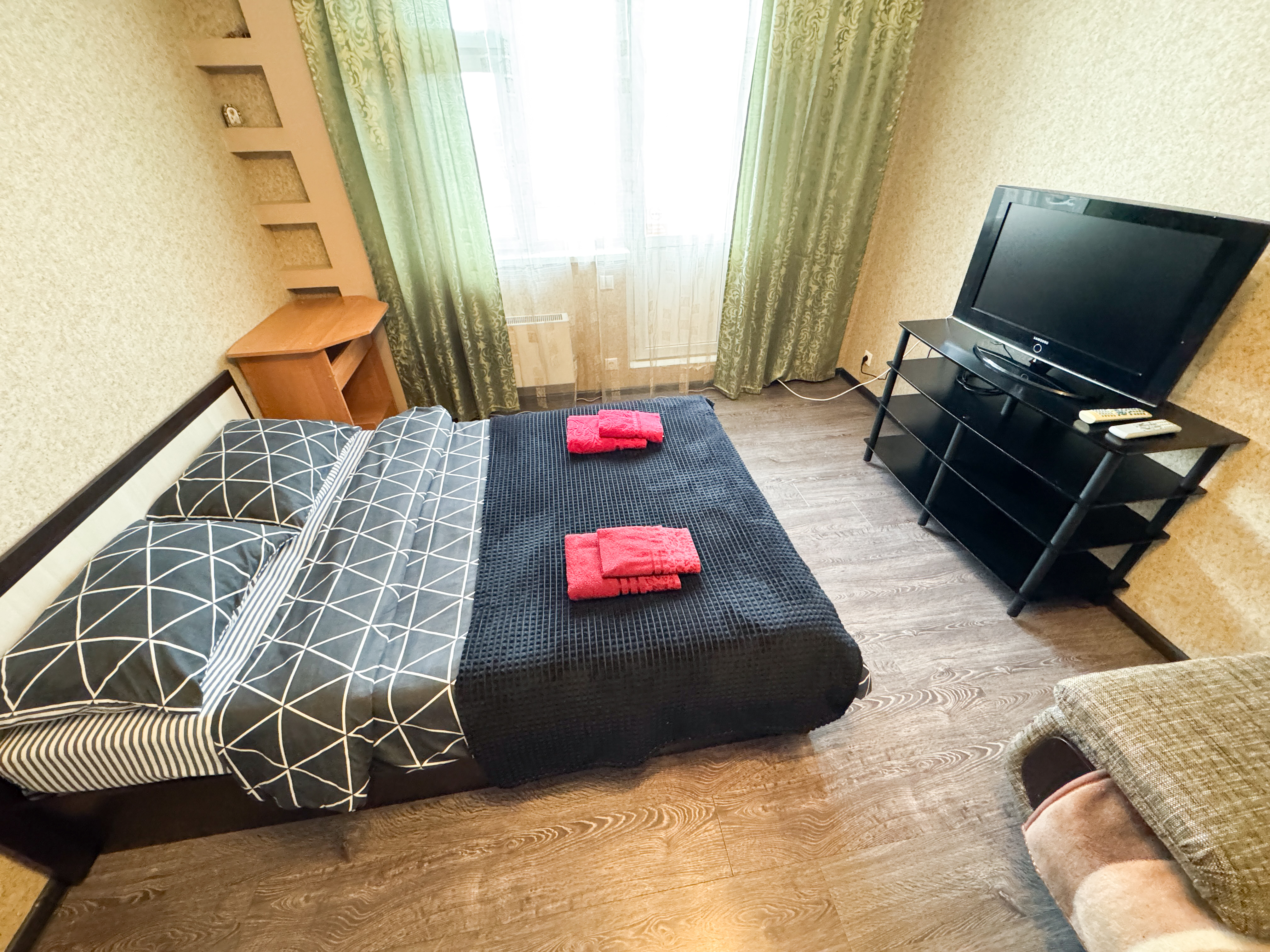 Единый стандарт качества: постельное белье из прачечной. Влажная уборка после каждого выезда. Наличие необходимых в быту вещей: личные средства гигиены, посуда, техника.Современные апартаменты сочетает в себе стиль и функциональность, создавая атмосферу, где каждый гость сможет расслабиться и насладиться временем вдали от дома.