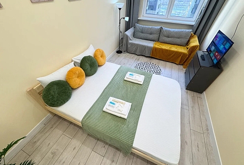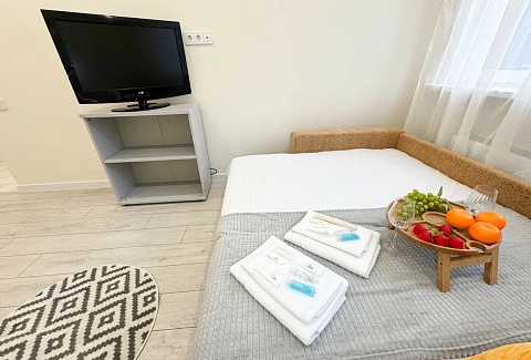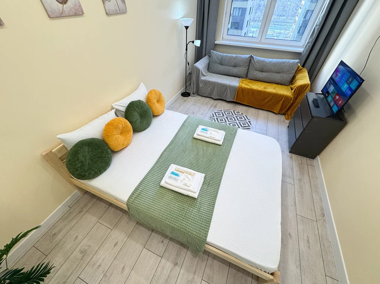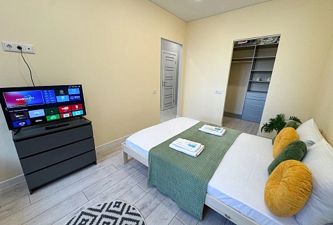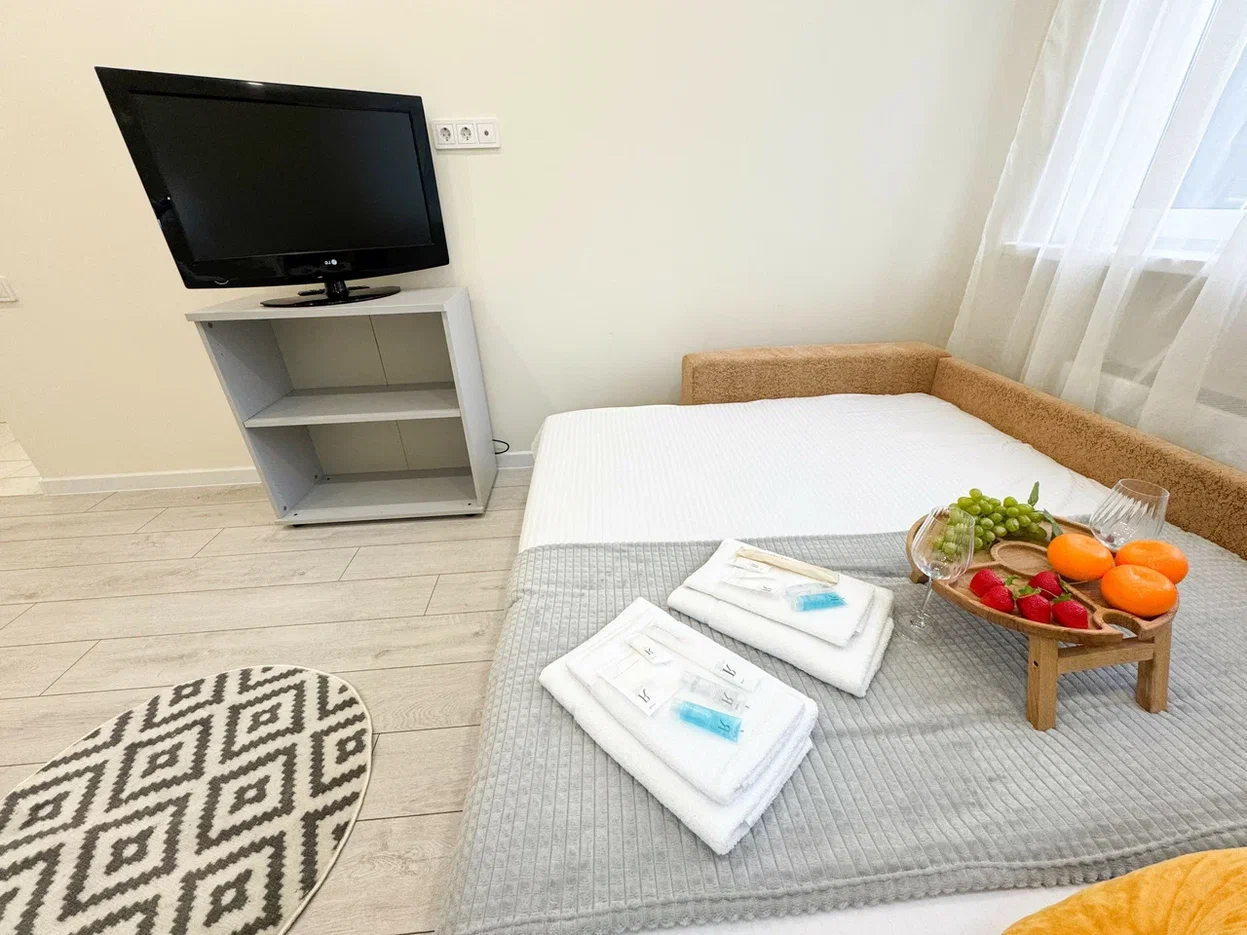 Единый стандарт качества: постельное белье из прачечной. Влажная уборка после каждого выезда. Наличие необходимых в быту вещей: личные средства гигиены, посуда, техника.Современные апартаменты сочетает в себе стиль и функциональность, создавая атмосферу, где каждый гость сможет расслабиться и насладиться временем вдали от дома.