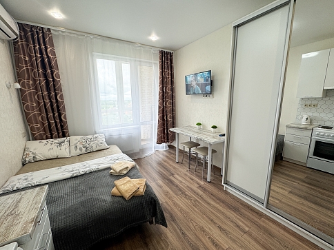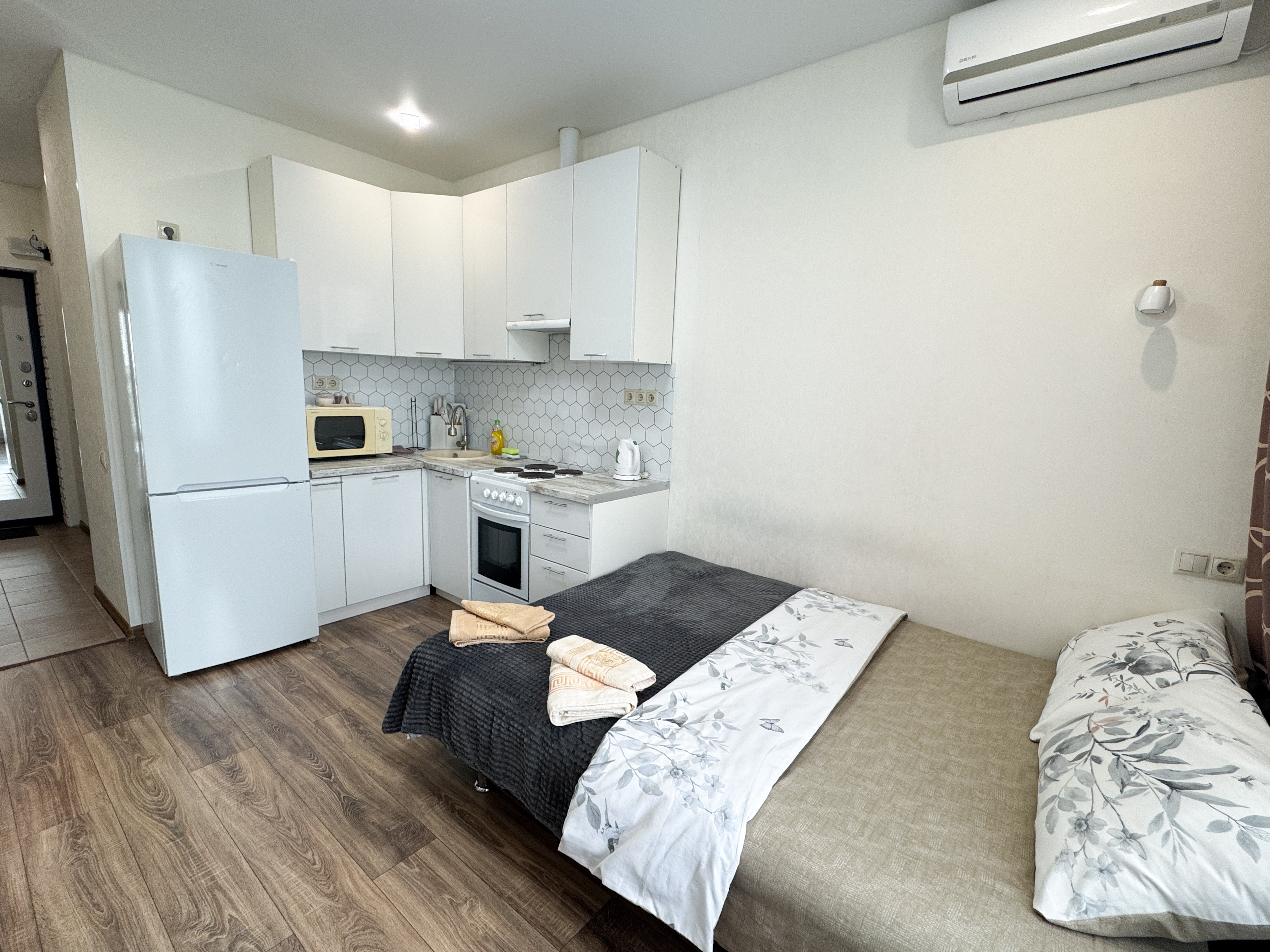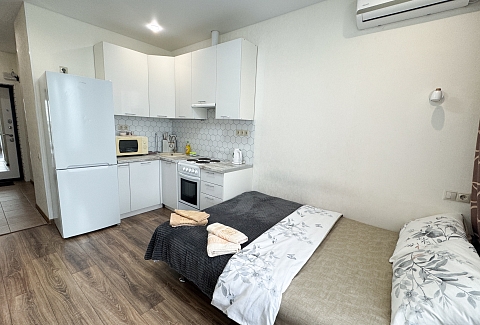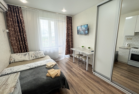 Единый стандарт качества: постельное белье из прачечной. Влажная уборка после каждого выезда. Наличие необходимых в быту вещей: личные средства гигиены, посуда, техника.Современные апартаменты сочетает в себе стиль и функциональность, создавая атмосферу, где каждый гость сможет расслабиться и насладиться временем вдали от дома.