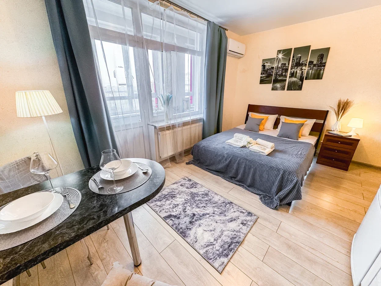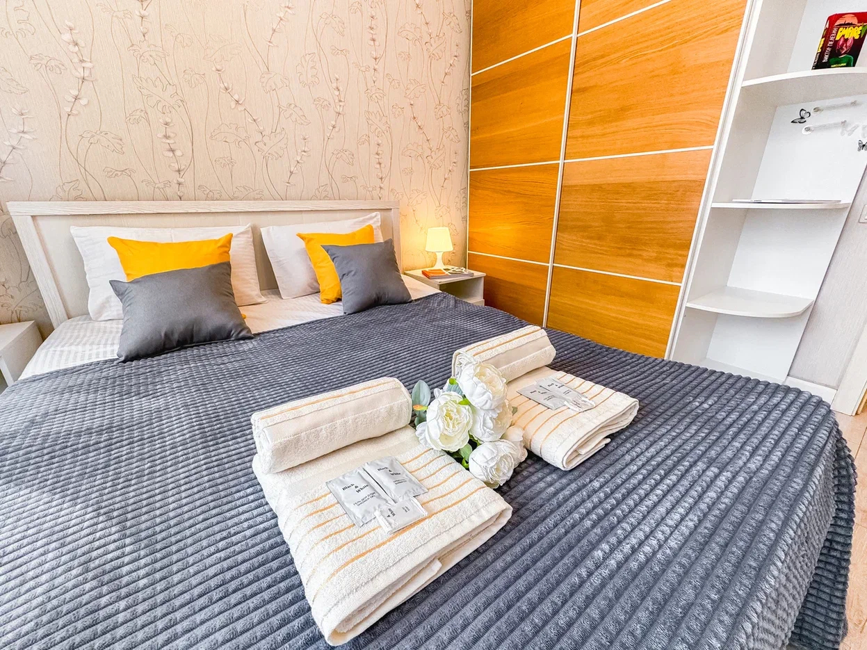 Единый стандарт качества: постельное белье из прачечной. Влажная уборка после каждого выезда. Наличие необходимых в быту вещей: личные средства гигиены, посуда, техника.Современные апартаменты сочетает в себе стиль и функциональность, создавая атмосферу, где каждый гость сможет расслабиться и насладиться временем вдали от дома.