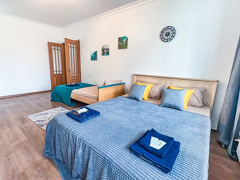 Единый стандарт качества: постельное белье из прачечной. Влажная уборка после каждого выезда. Наличие необходимых в быту вещей: личные средства гигиены, посуда, техника.Современные апартаменты сочетает в себе стиль и функциональность, создавая атмосферу, где каждый гость сможет расслабиться и насладиться временем вдали от дома.