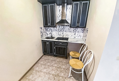 В номере: зеркало, кровать двуспальная, стол, стулья, шкаф, гладильная доска, микроволновая печь, набор посуды, плита электрическая, стиральная машина, сушилка для белья, телевизор ЖК, утюг, холодильник, чайный набор посуды, электрочайник