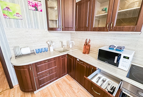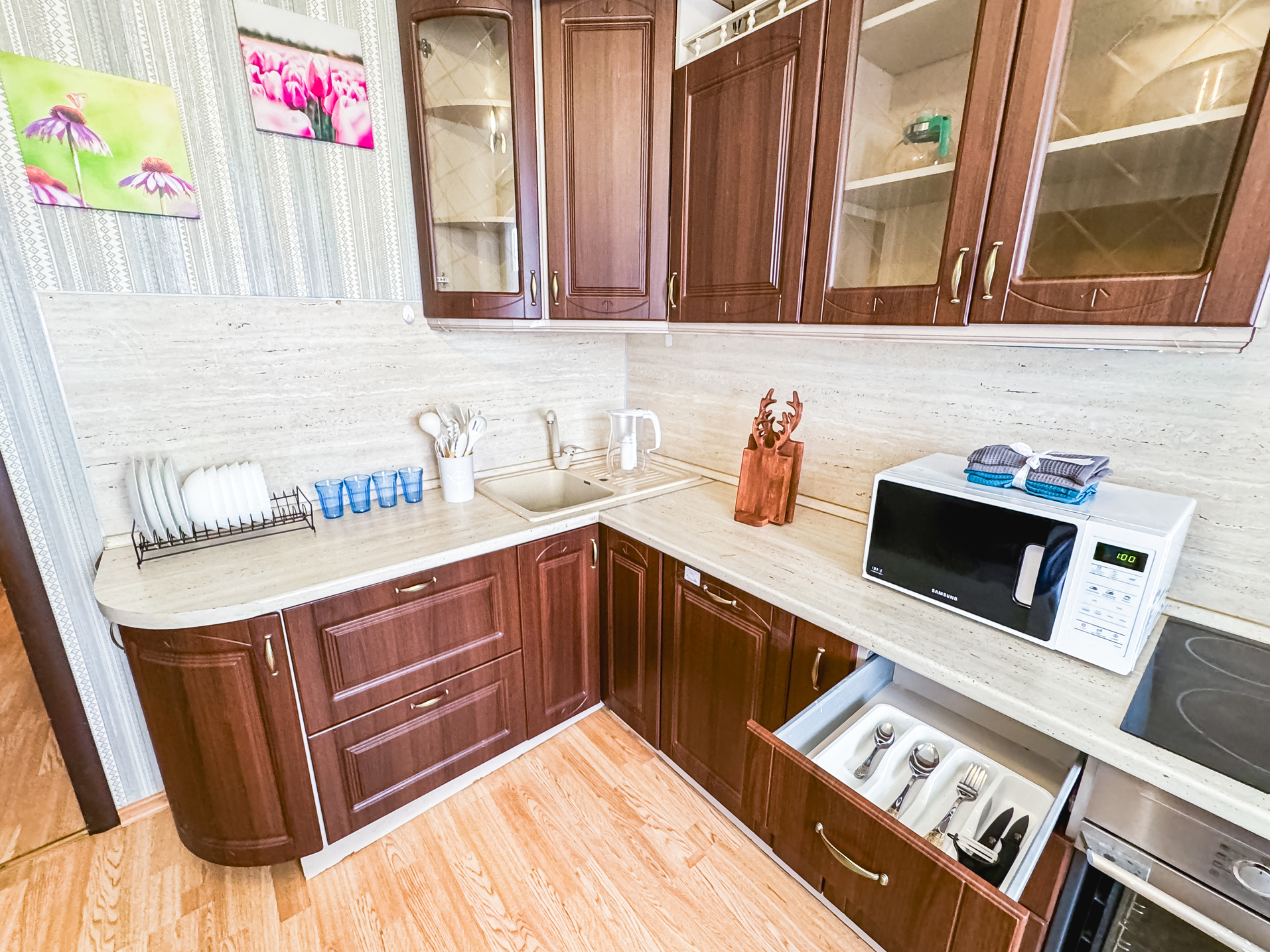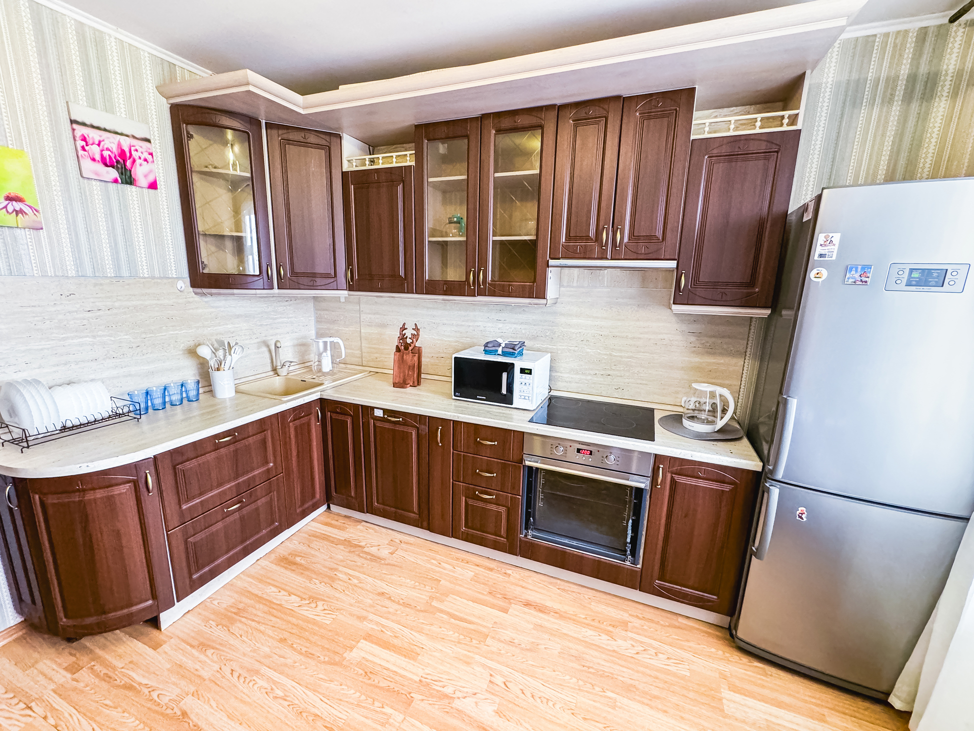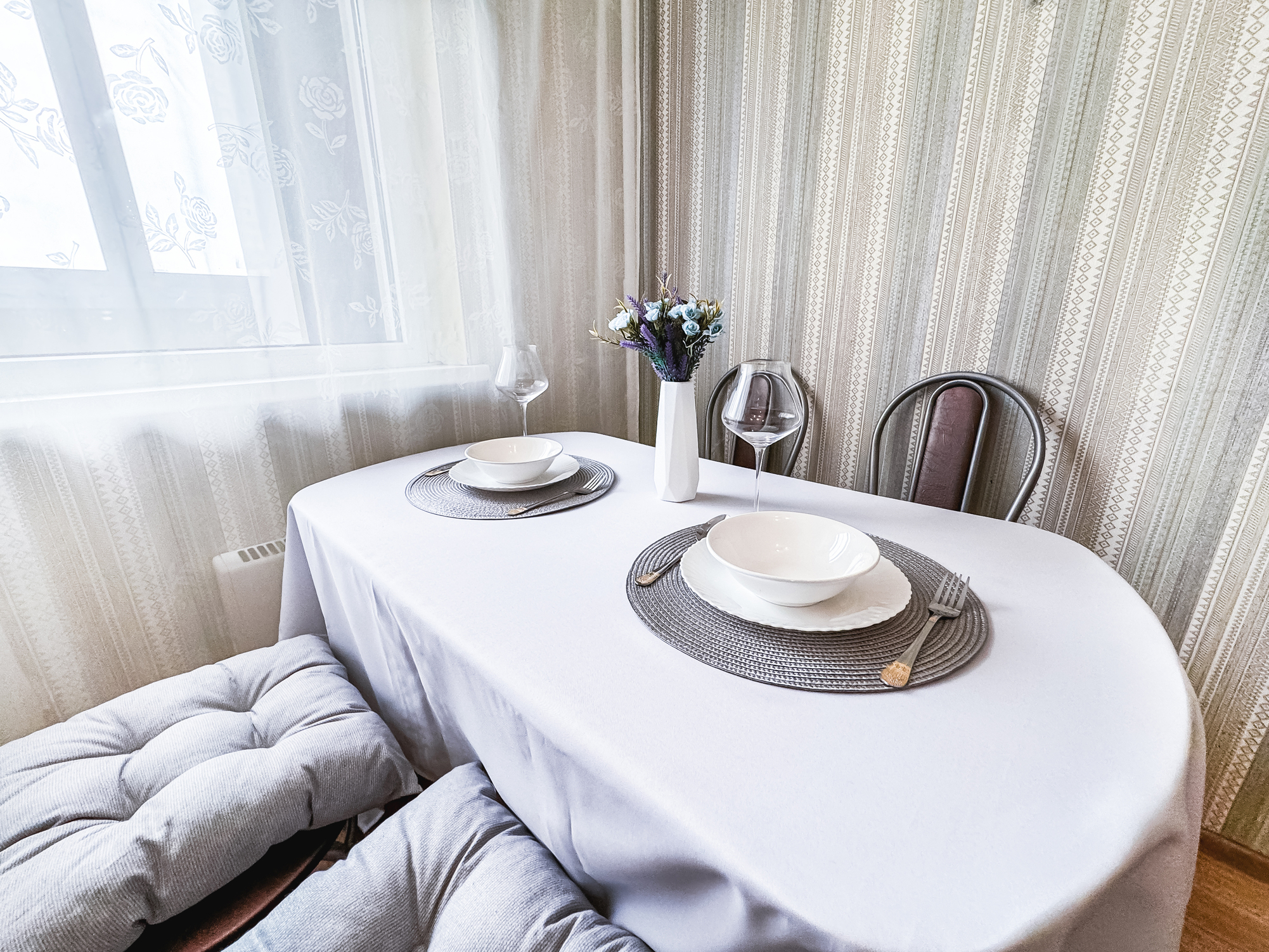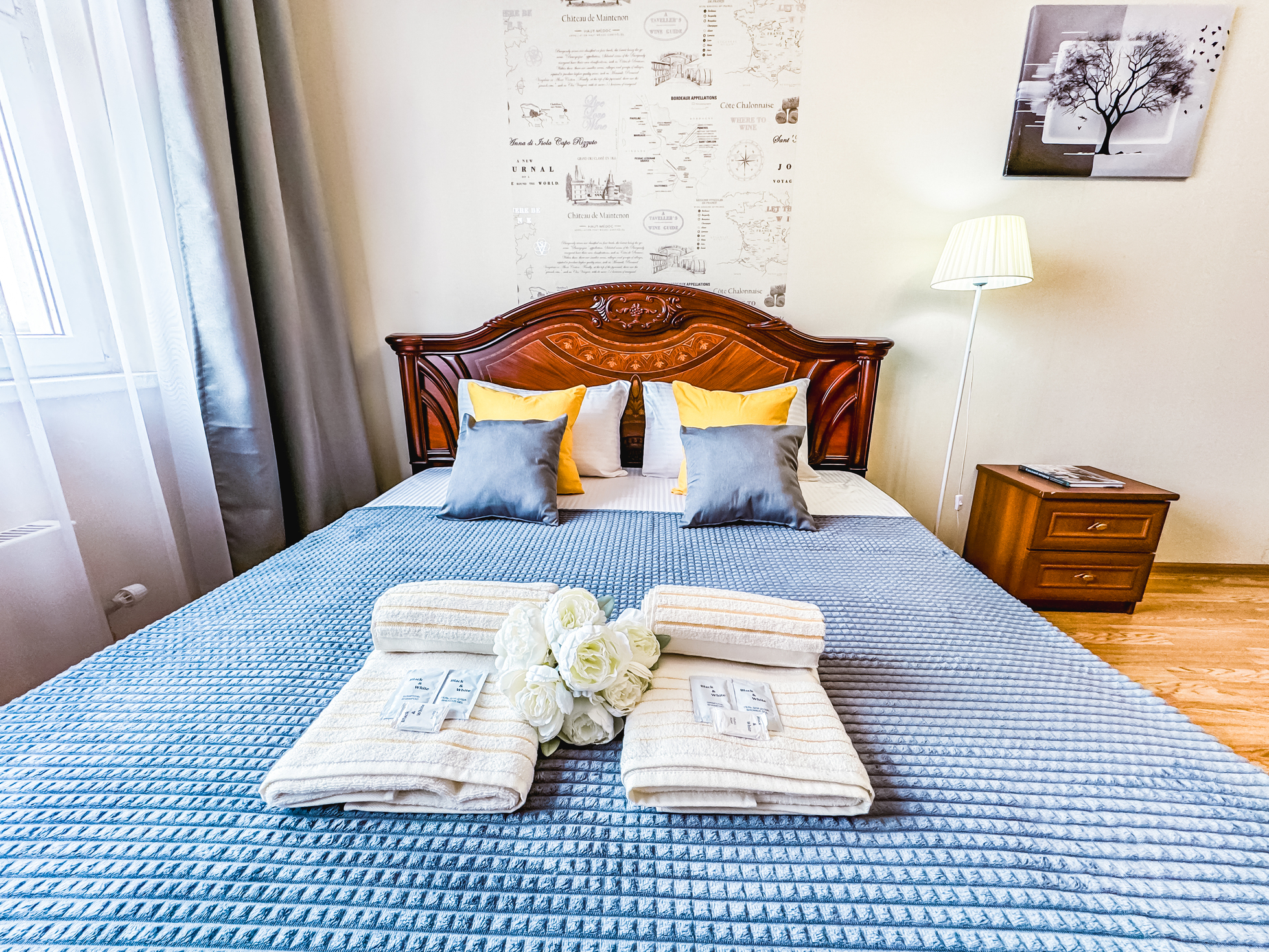 Единый стандарт качества: постельное белье из прачечной. Влажная уборка после каждого выезда. Наличие необходимых в быту вещей: личные средства гигиены, посуда, техника.Современные апартаменты сочетает в себе стиль и функциональность, создавая атмосферу, где каждый гость сможет расслабиться и насладиться временем вдали от дома.