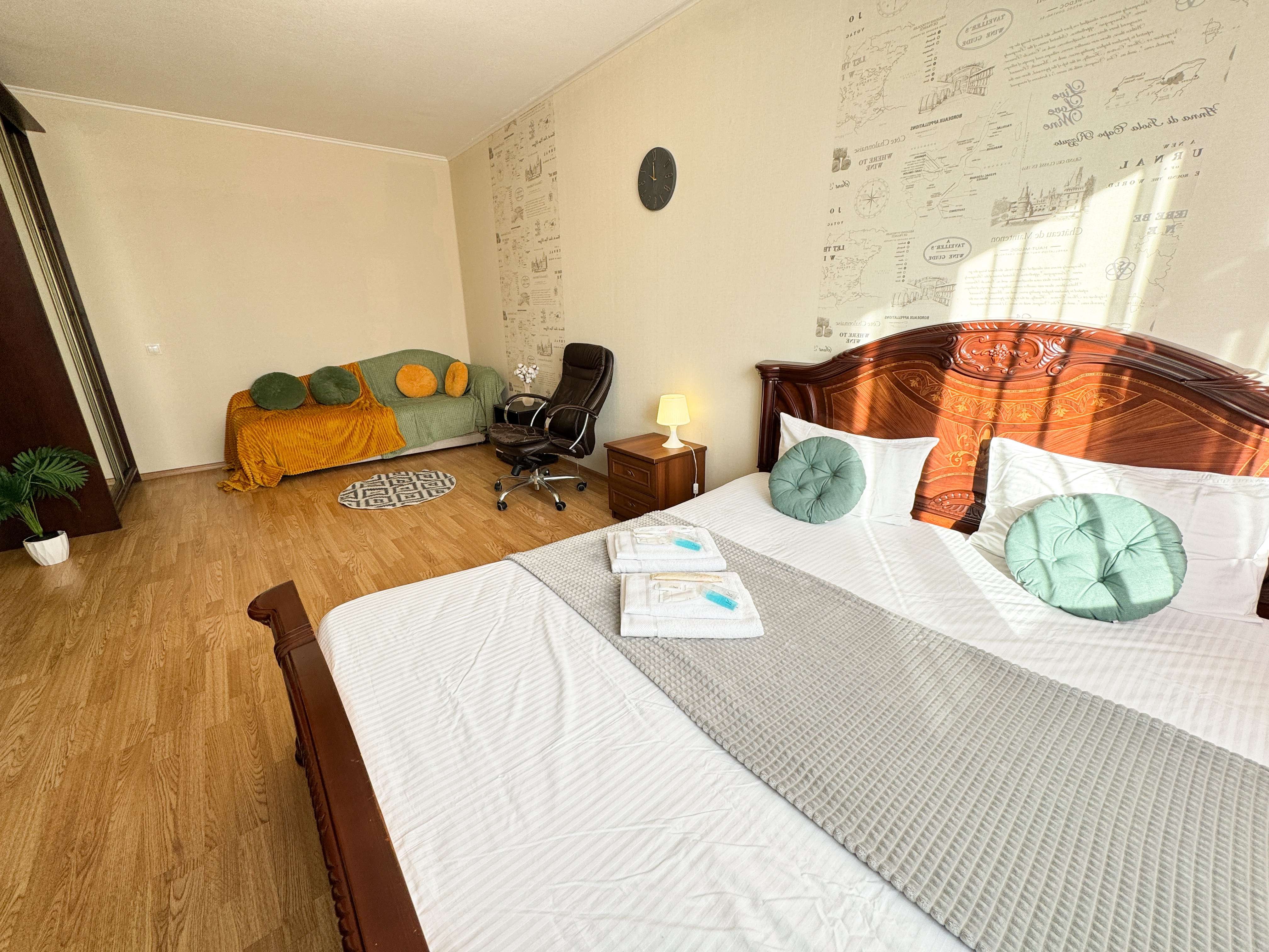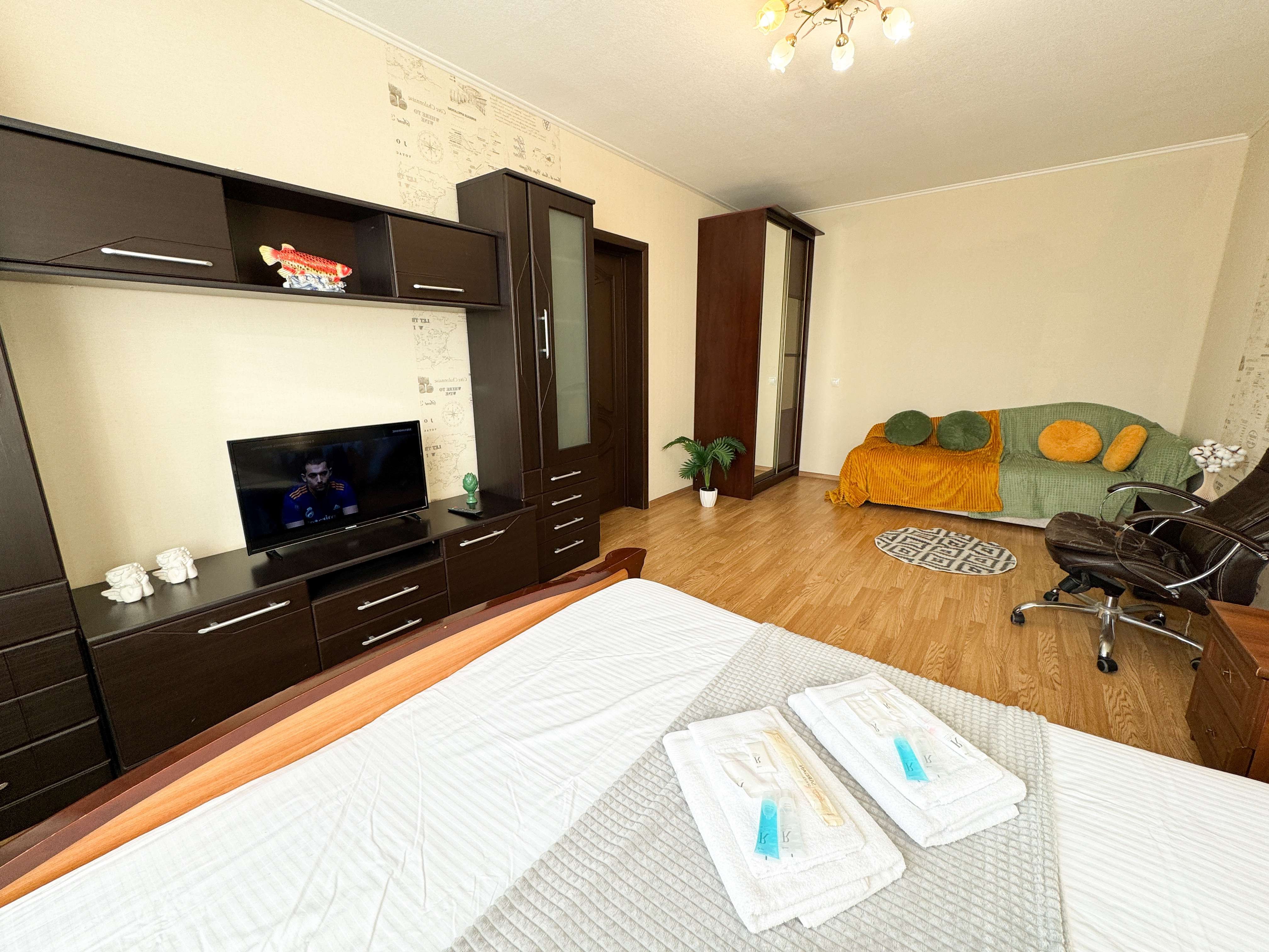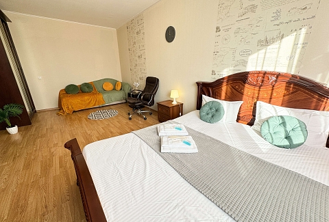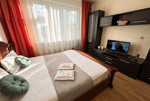Единый стандарт качества: постельное белье из прачечной. Влажная уборка после каждого выезда. Наличие необходимых в быту вещей: личные средства гигиены, посуда, техника.Современные апартаменты сочетает в себе стиль и функциональность, создавая атмосферу, где каждый гость сможет расслабиться и насладиться временем вдали от дома.