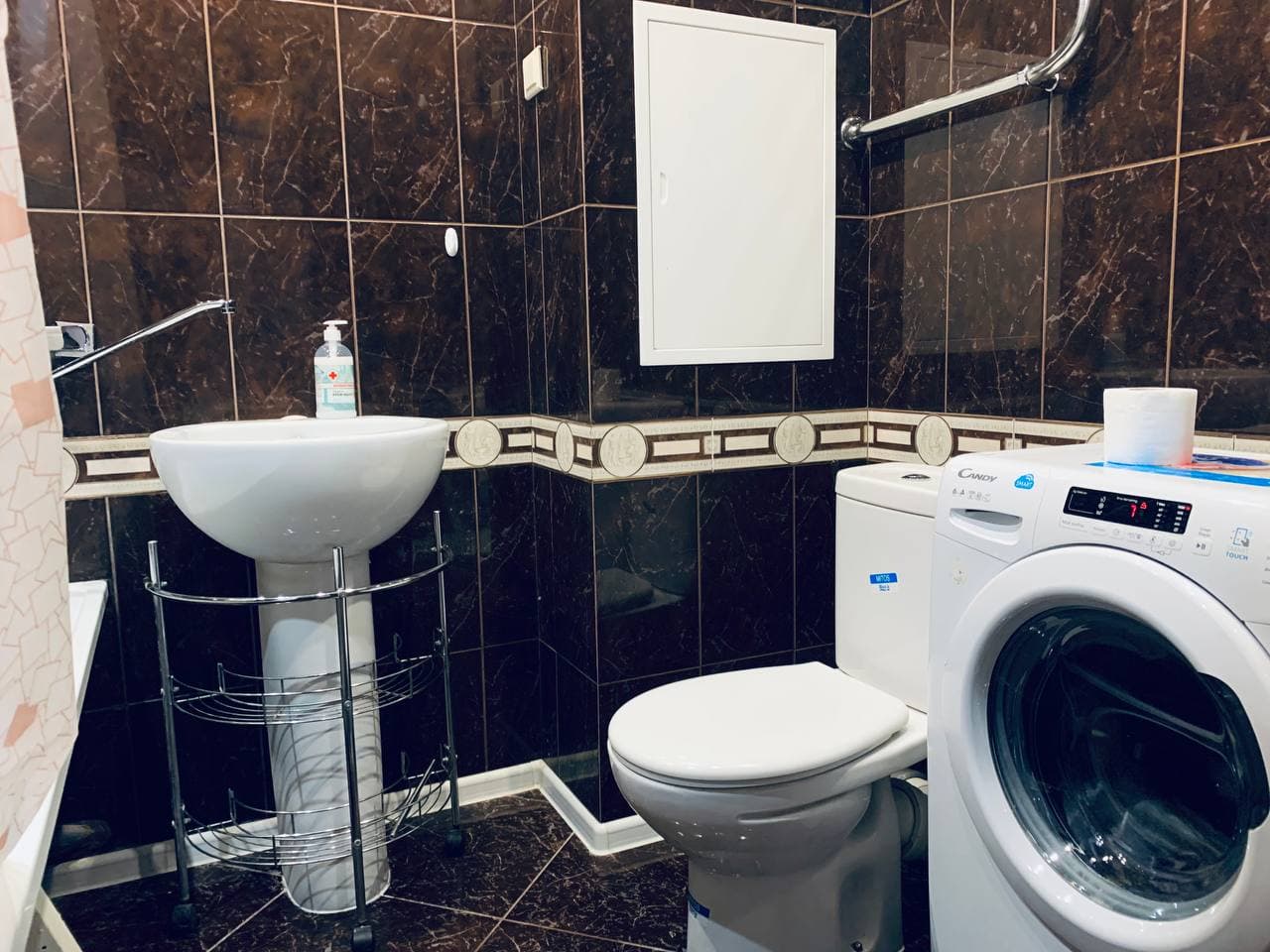 Санузел: с душем, туалетные принадлежности, фен
