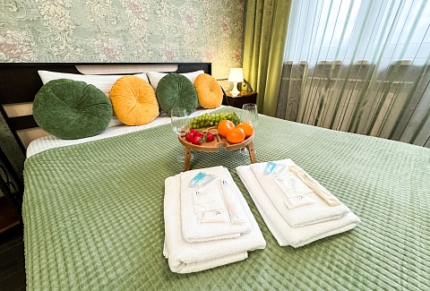 Единый стандарт качества: постельное белье из прачечной. Влажная уборка после каждого выезда. Наличие необходимых в быту вещей: личные средства гигиены, посуда, техника.Современные апартаменты сочетает в себе стиль и функциональность, создавая атмосферу, где каждый гость сможет расслабиться и насладиться временем вдали от дома.