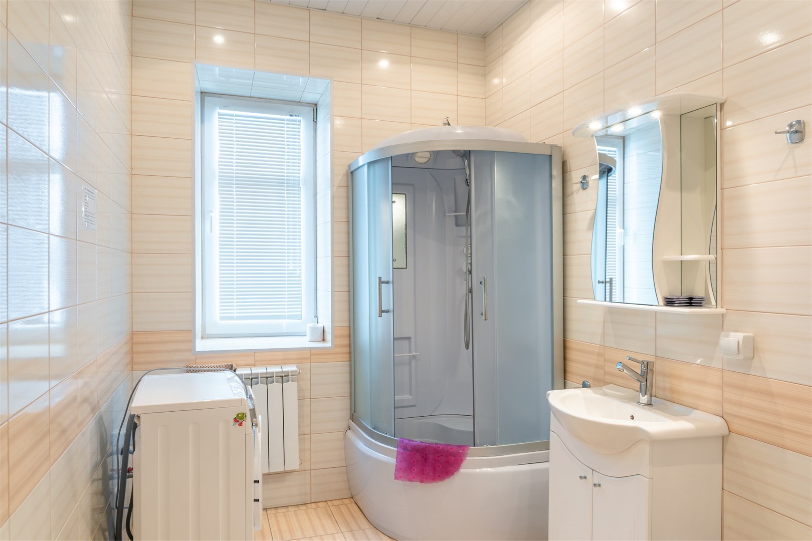 Санузел: с душевой кабиной, туалетные принадлежности, фен