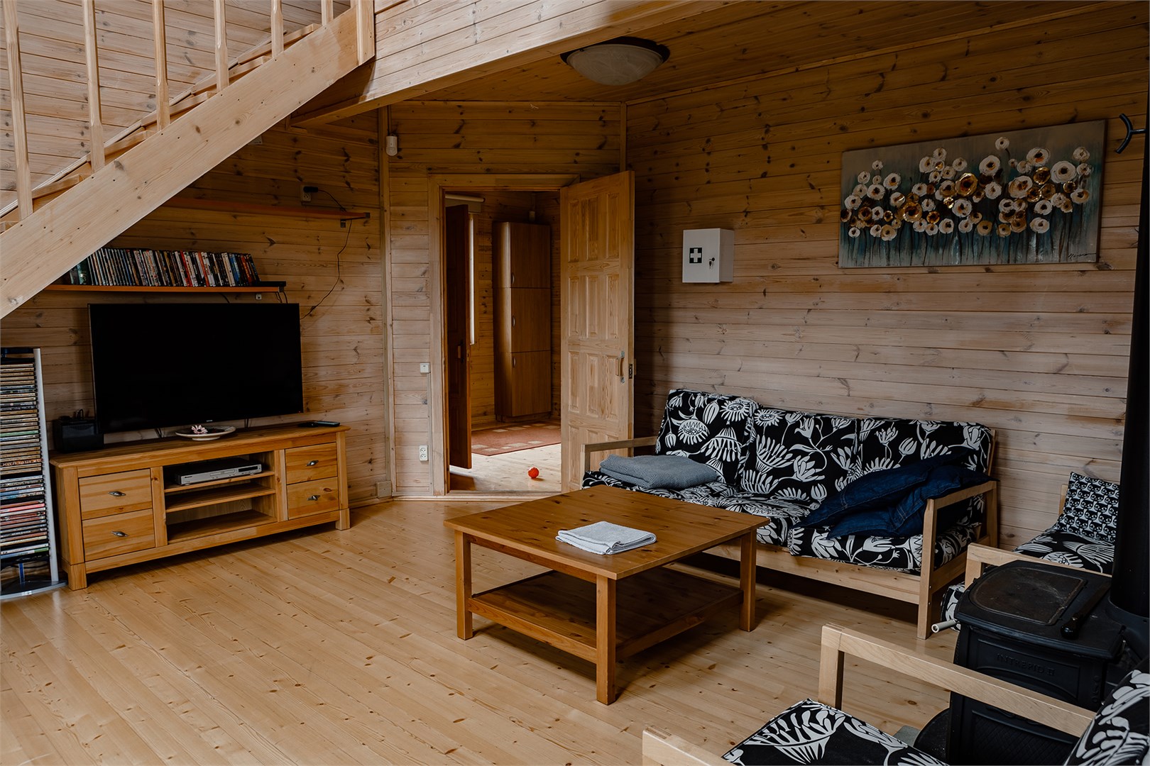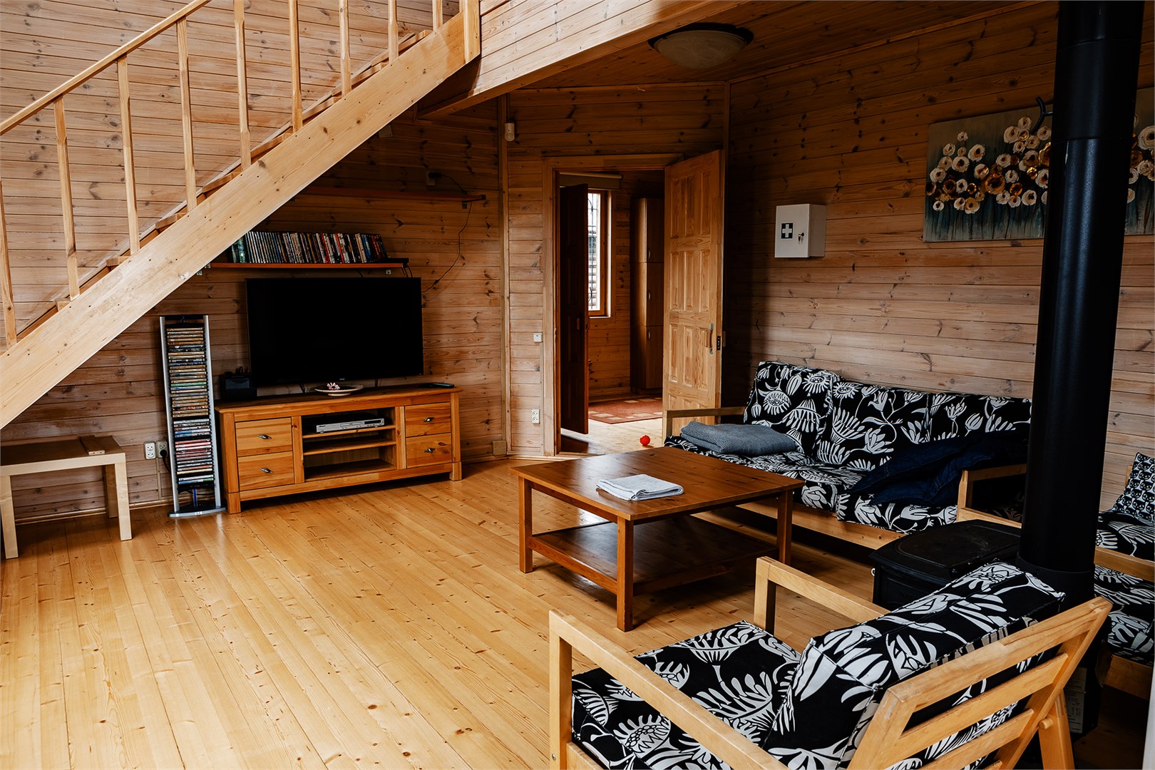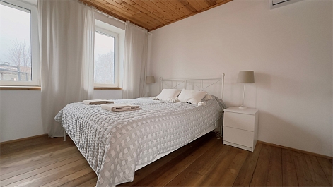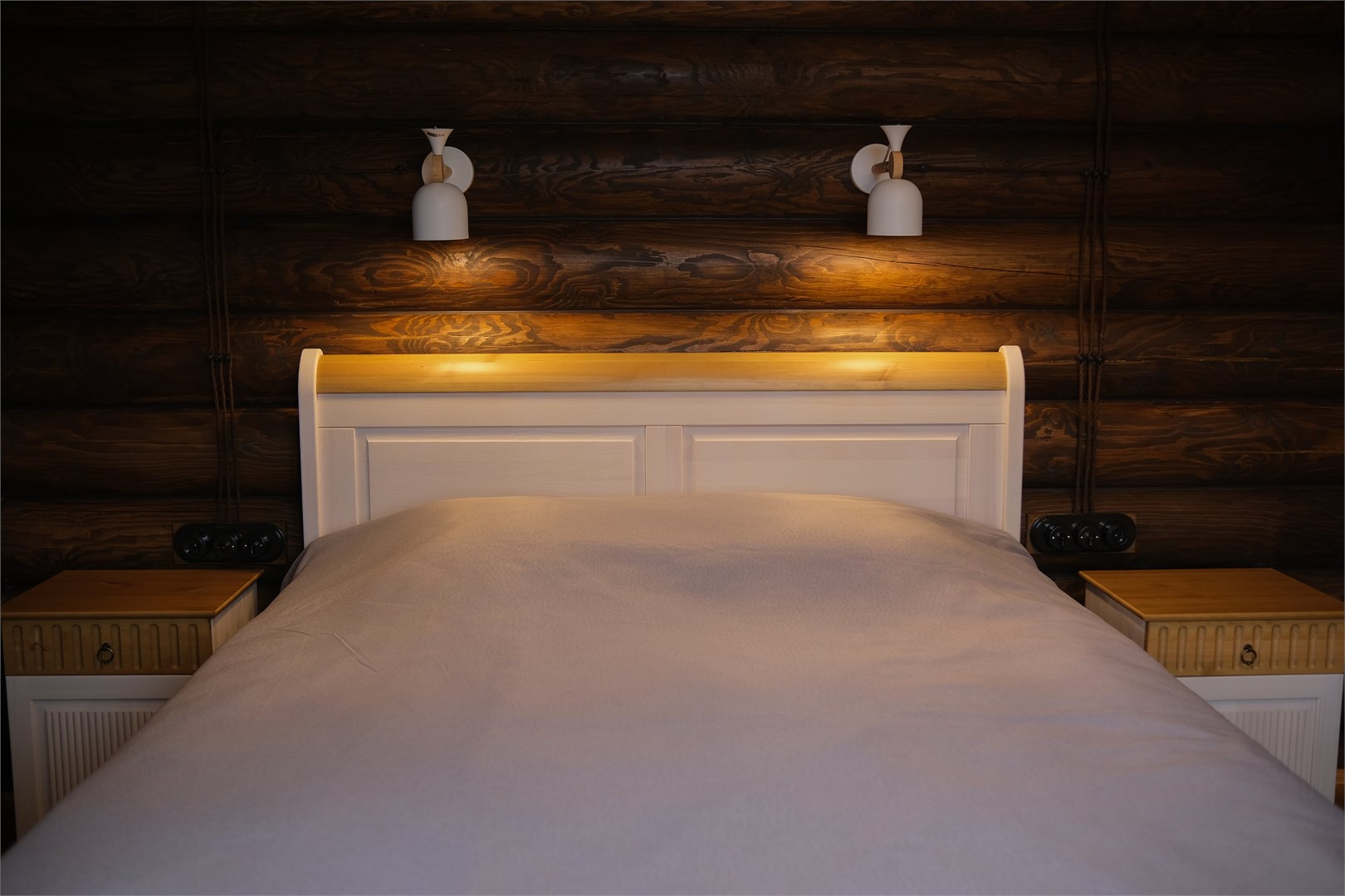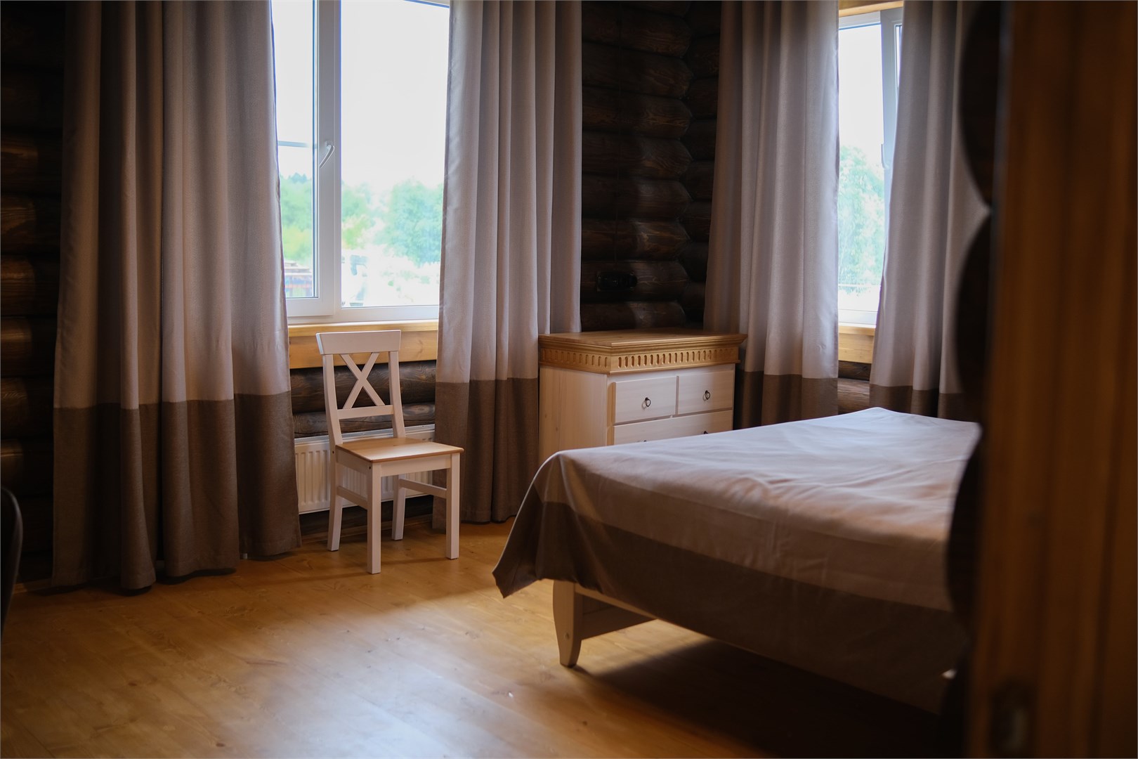 В номере: диван, зеркало, кровати односпальные, кровать двуспальная, прикроватные тумбочки, стол, стулья, шкаф, камин, микроволновая печь, набор посуды, плита электрическая, стиральная машина, телевизор ЖК, холодильник, чайный набор посуды, электрочайник