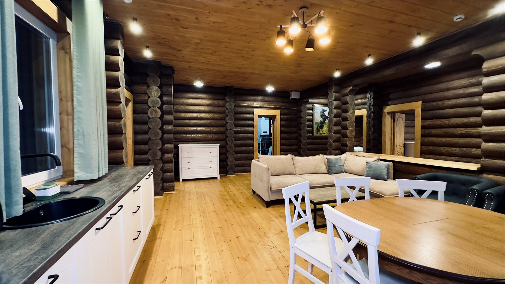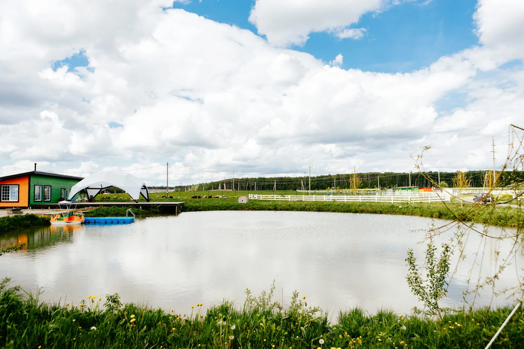 Приятный отдых в Подмосковье на ранчо и эко-ферме. В «Ранчо.РФ» гостевом комплексе можно остановиться в полностью благоустроенных домах и коттеджах, где есть всё необходимое для комфортного отдыха. В домах есть: отопление, кондиционеры, горячая вода, холодильники, кухни с набором посуды для приготовления, камины и многое другое.