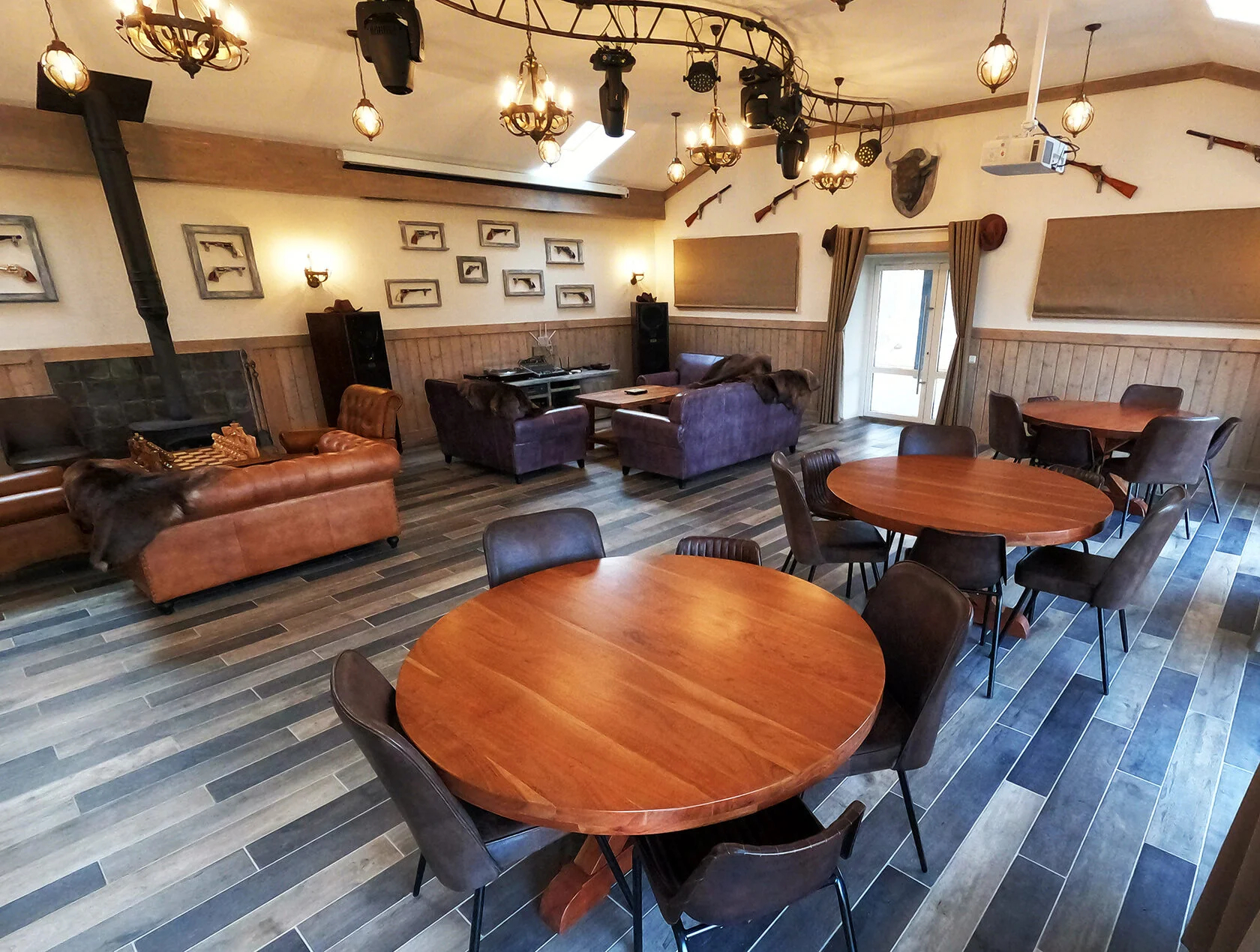 Отдельной изюминкой гостевого комплекса является его Расположение. Находится он в экологически чистом районе Подмосковья, в 100 км от Москвы. Свежий и чистый воздух. Гостям очень нравится отдыхать на ранчо. Это идеальное место для отдыха с семьёй и занятий спортом. Дома построенные из экологически чистых материалов, преимущественно это натуральное дерево. Отделка и интерьеры выполнены дизайнерами для полного удобства и комфорта. Охраняемая территория. Дома расположены отдельно. Для безопасности на территории ведётся видеонаблюдение.