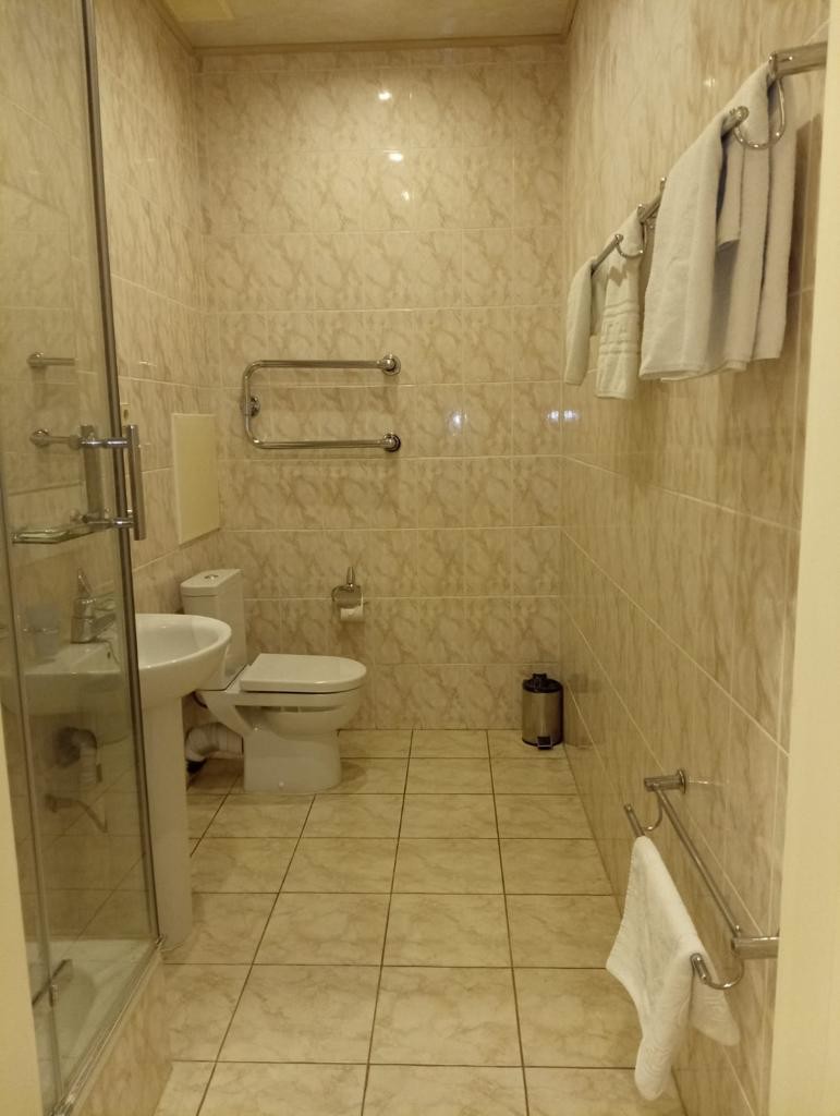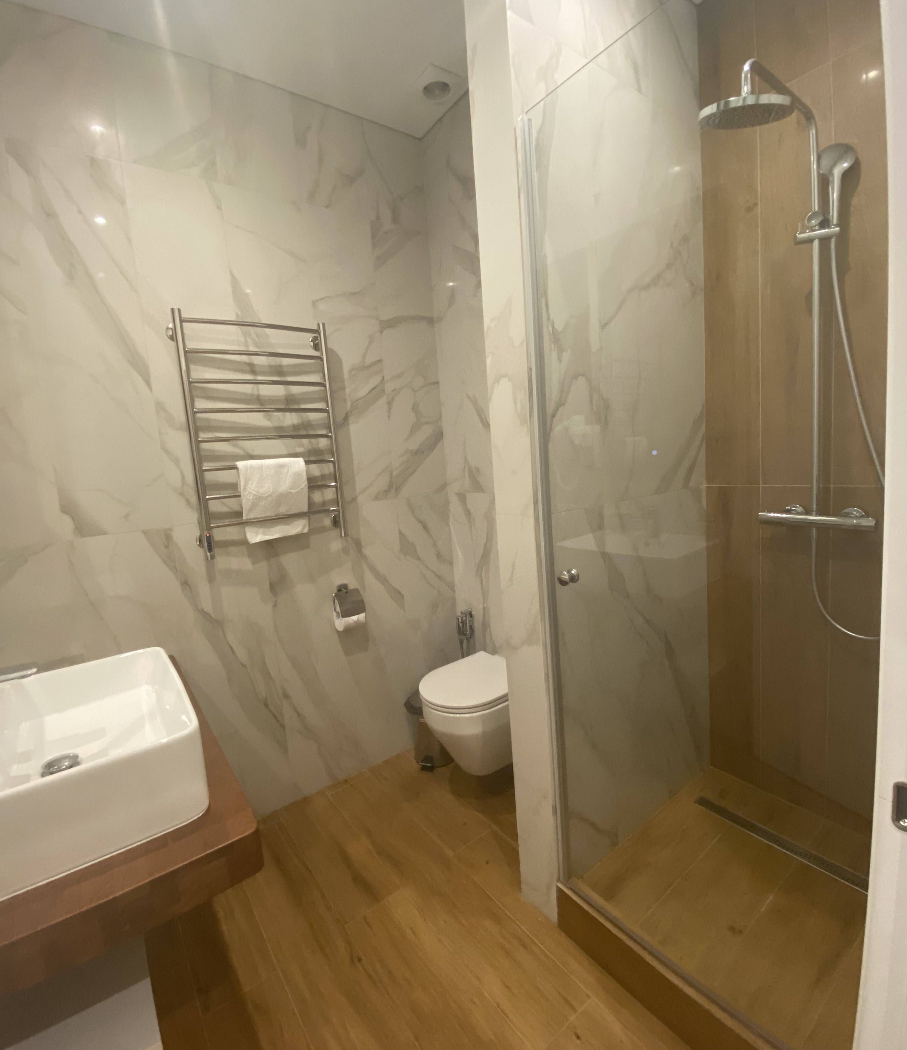 Санузел: с душем, тапочки, туалетные принадлежности, халат