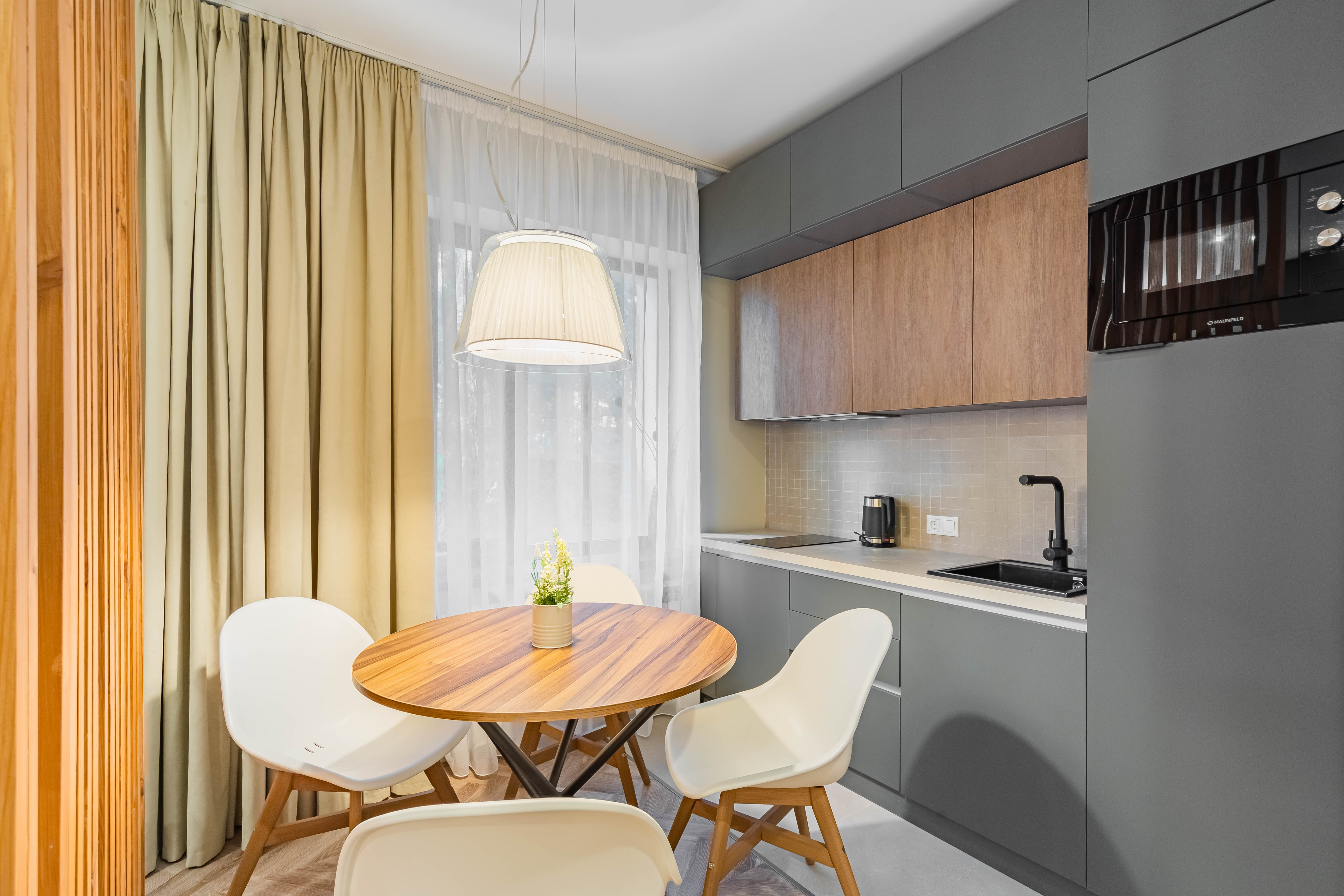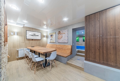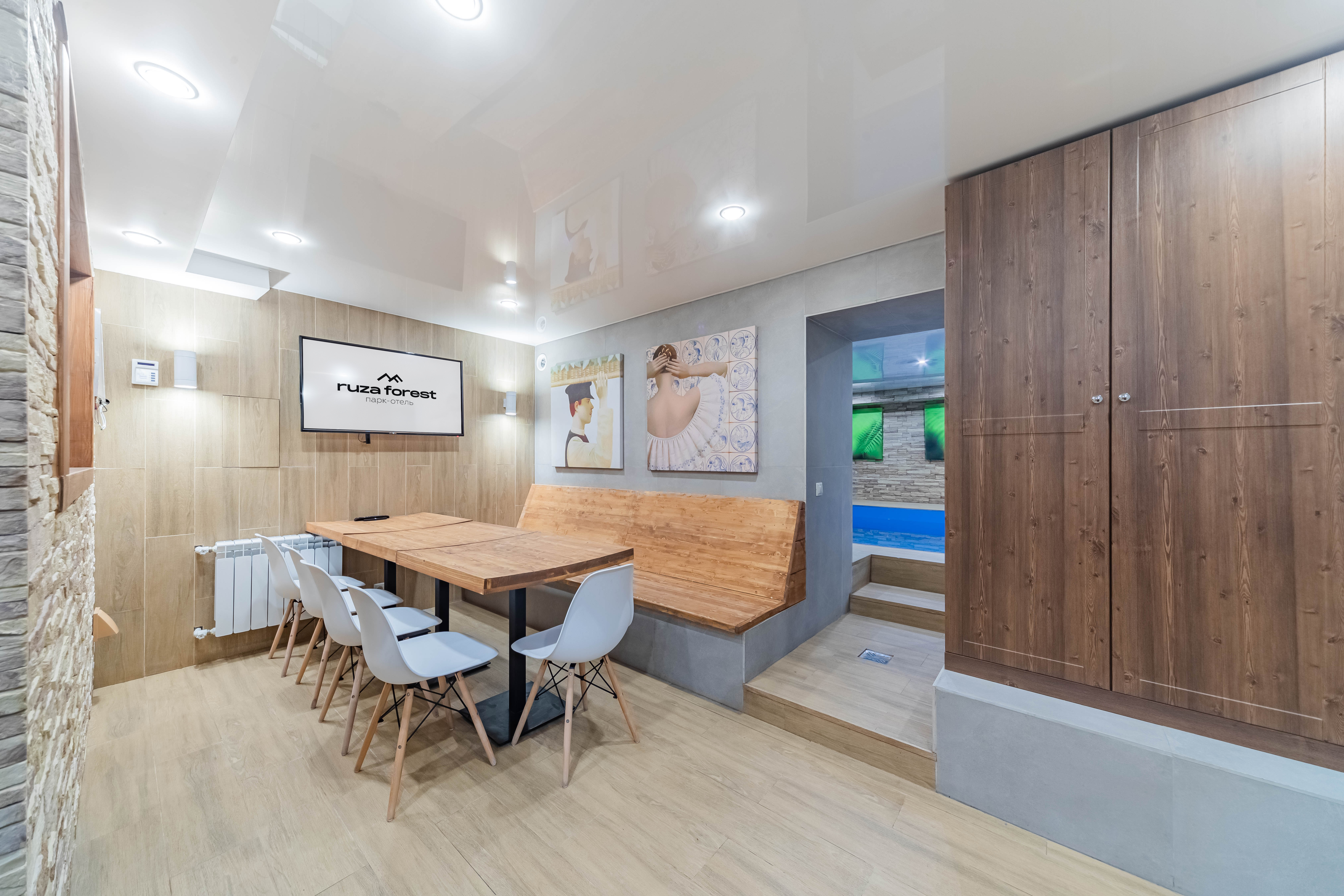 В апартаментах и отдельно стоящих домиках предусмотрена оборудованная кухня с электроплитой.На территории парк-отеля работает ресторан с банкетным залом, где можно провести любое торжественное мероприятие или корпоратив, оборудована зона для барбекю с мангалом и беседками, отдохнуть и расслабиться можно в банном комплексе с финской сауной и крытым бассейном. Любители активного отдыха могут отправиться в сплав по реке, арендовать квадроциклы или посетить занятия скандинавской ходьбы. Также в распоряжении гостей — настольный теннис, бильярд и беспроводной интернет.