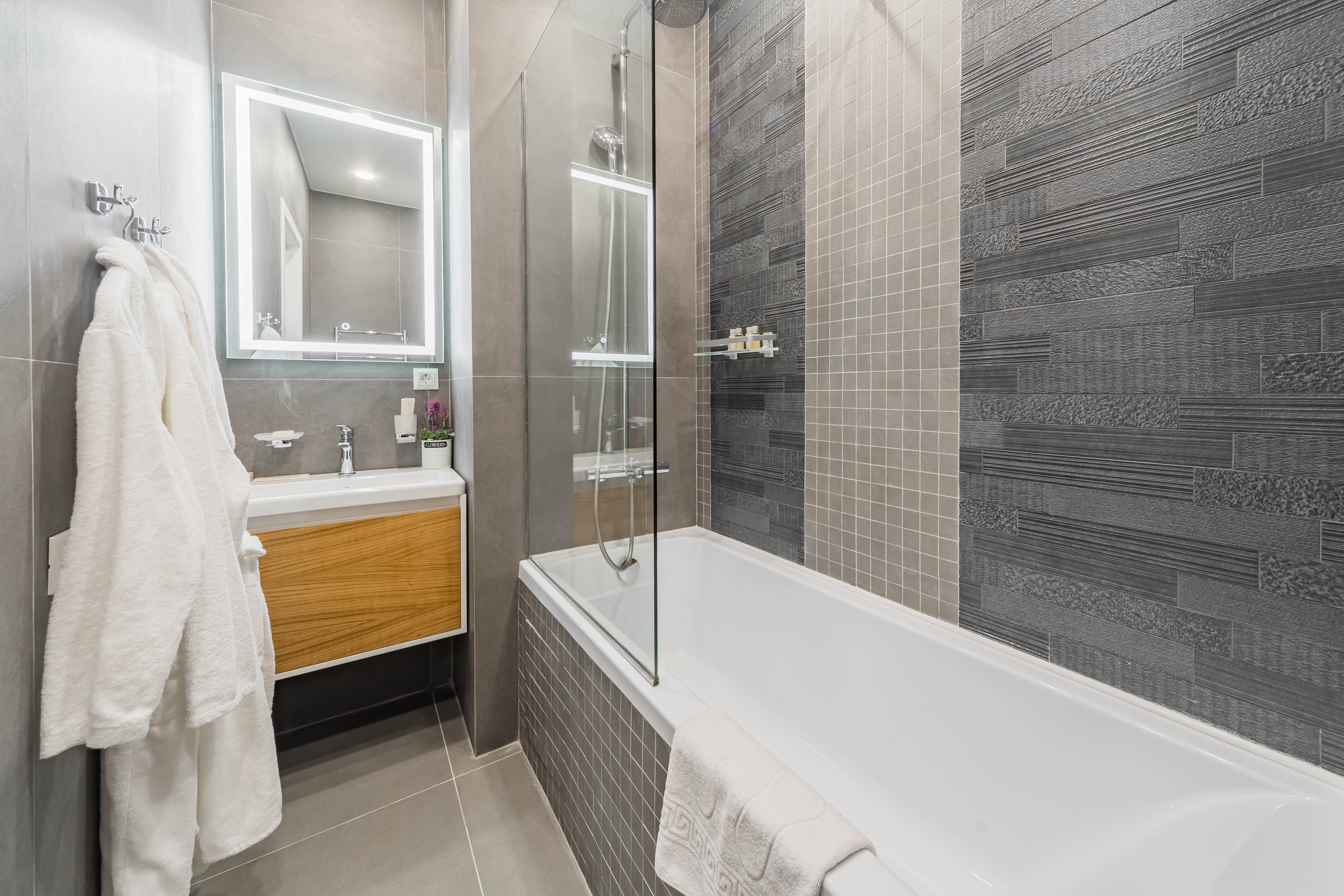 Санузел: с ванной, тапочки, туалетные принадлежности, халат