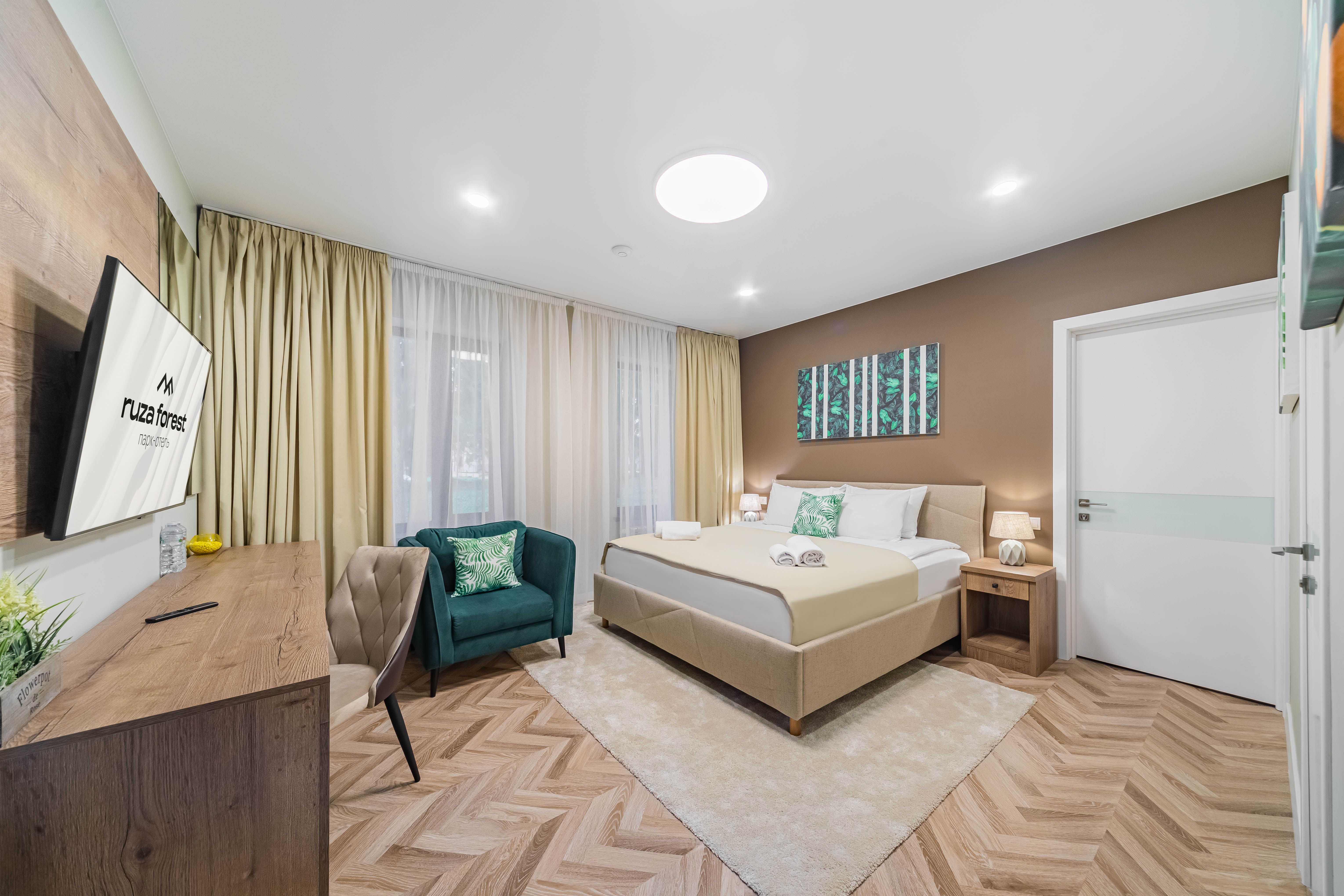 Парк-отель «Ruza Forest» находится в деревне Нестерово, расположенной в Рузском районе Московской области в лесном массиве на берегу реки Москвы. До ближайшего города — древней Рузы можно доехать за 20 минут, до МКАД — 70 километров, а всего в часе езды находится международный аэропорт Внуково.Комплекс занимает территорию площадью 10 гектаров, на которой расположены основной корпус на 12 номеров, 3 гостевых дома, здание с апартаментами и вилла. В номерах есть все необходимые удобства — санузел с душем, телевизор с плоским экраном.