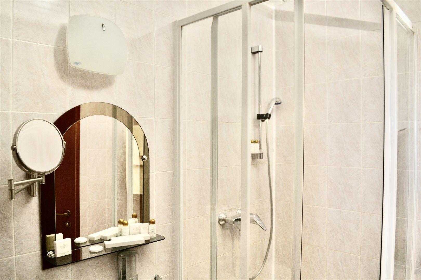Санузел: с душевой кабиной, тапочки, туалетные принадлежности, фен, халат