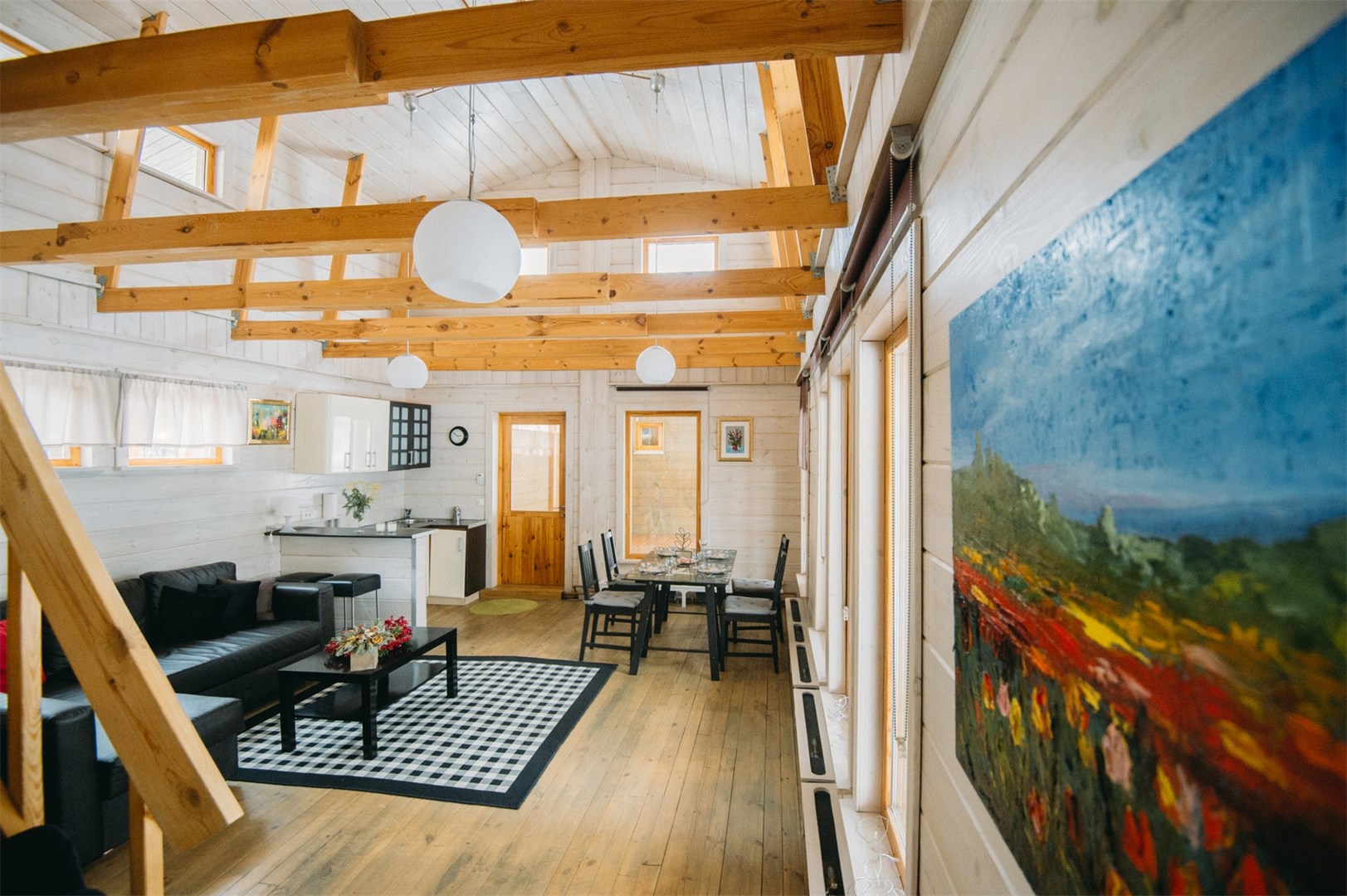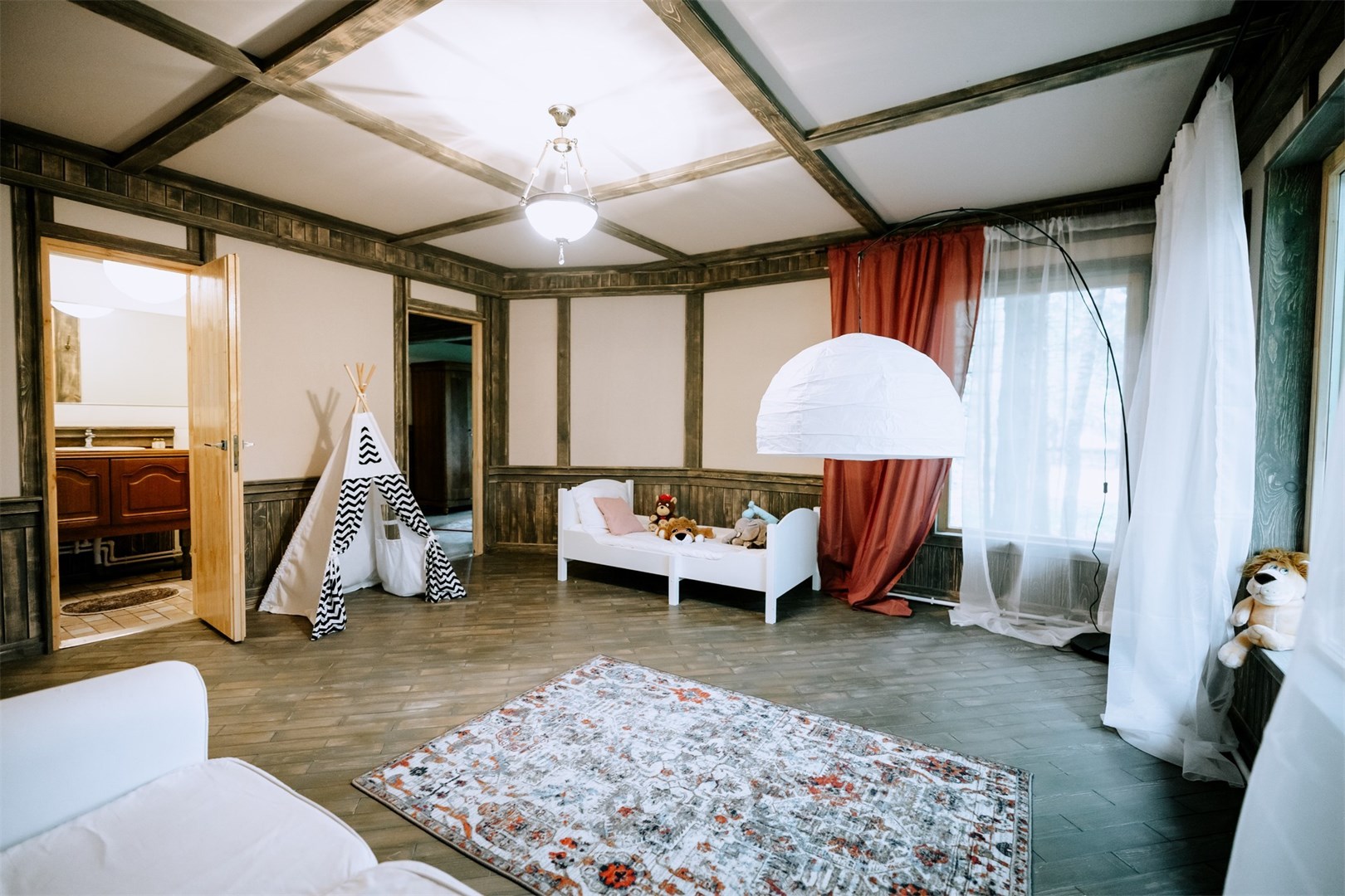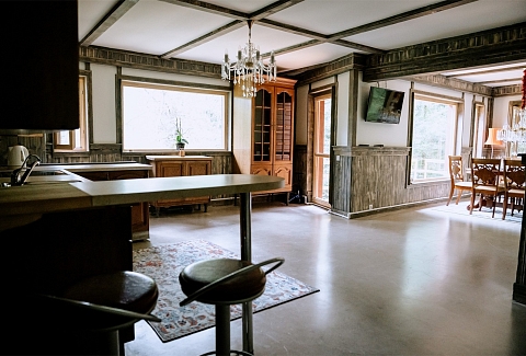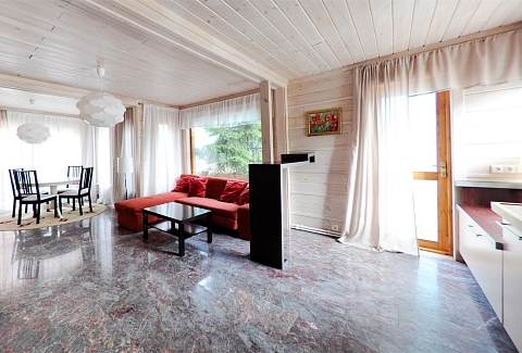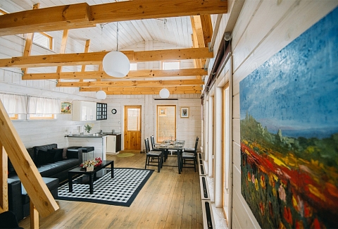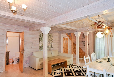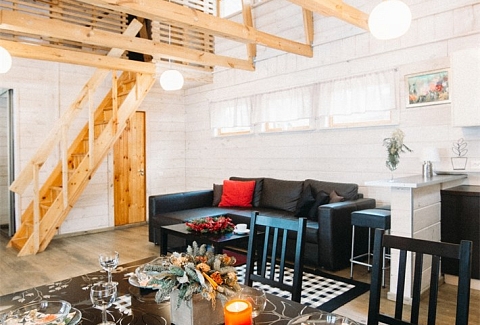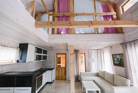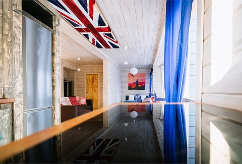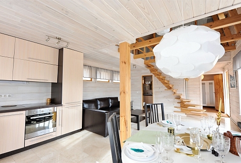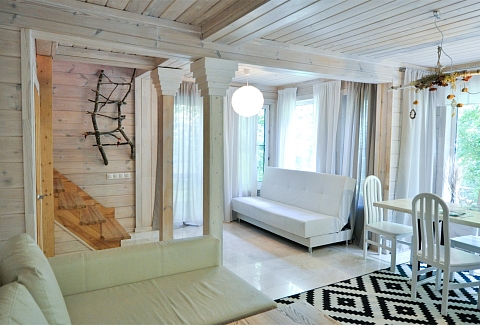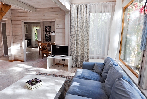 В номере: вешалка, диван, зеркало, кровать двуспальная, кровать детская, кухонная мебель, прикроватные тумбочки, стол, стулья, шкаф, набор посуды, плита электрическая, посудомоечная машина, стиральная машина, телевизор ЖК, холодильник