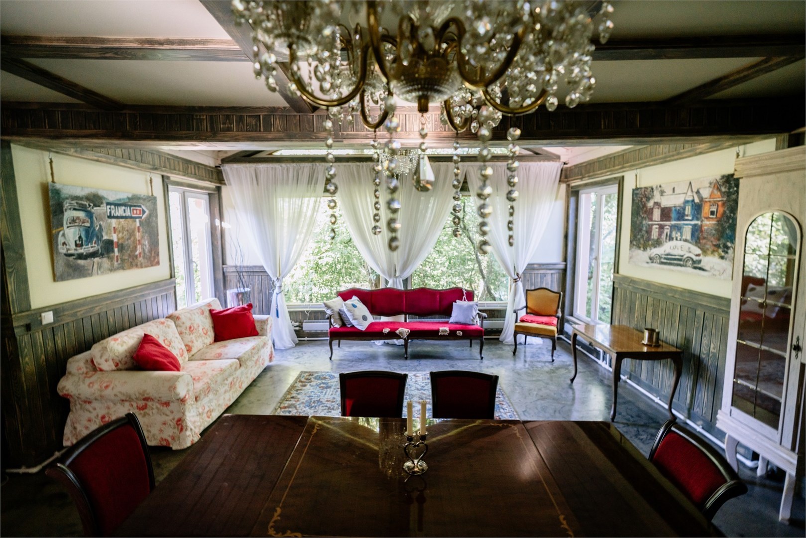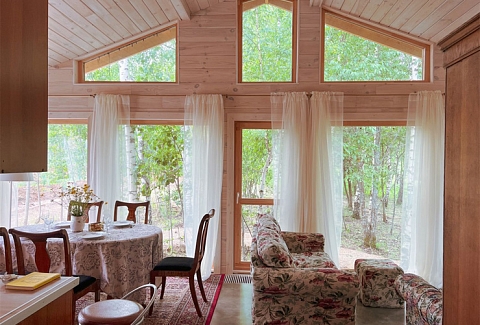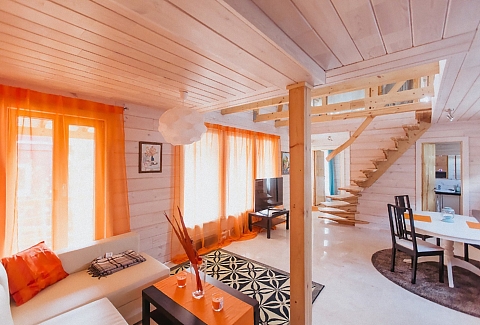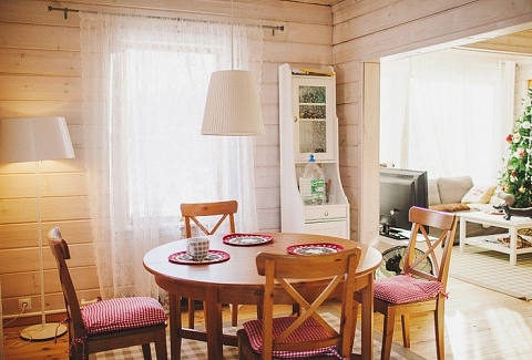 В номере: вешалка, зеркало, кровати односпальные /одна двуспальная кровать, кровать двуспальная, кровать детская, кухонная мебель, набор мягкой мебели, прикроватные тумбочки, стол обеденный, стулья, шкаф, набор посуды, плита электрическая, телевизор ЖК, холодильник