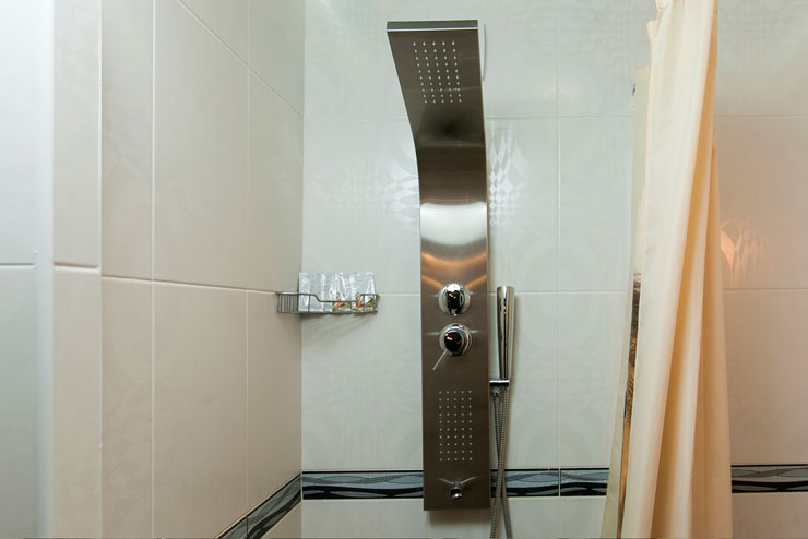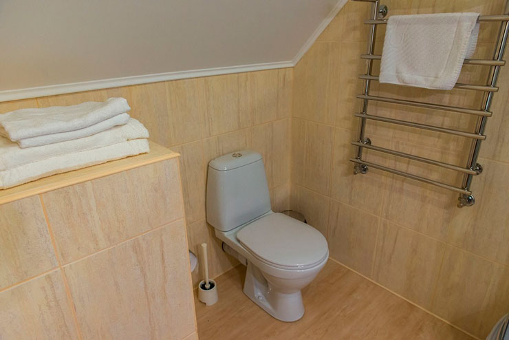 Санузел: с душем, тапочки, туалетные принадлежности, фен