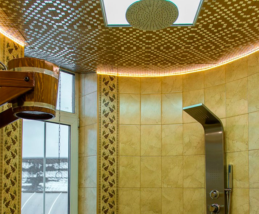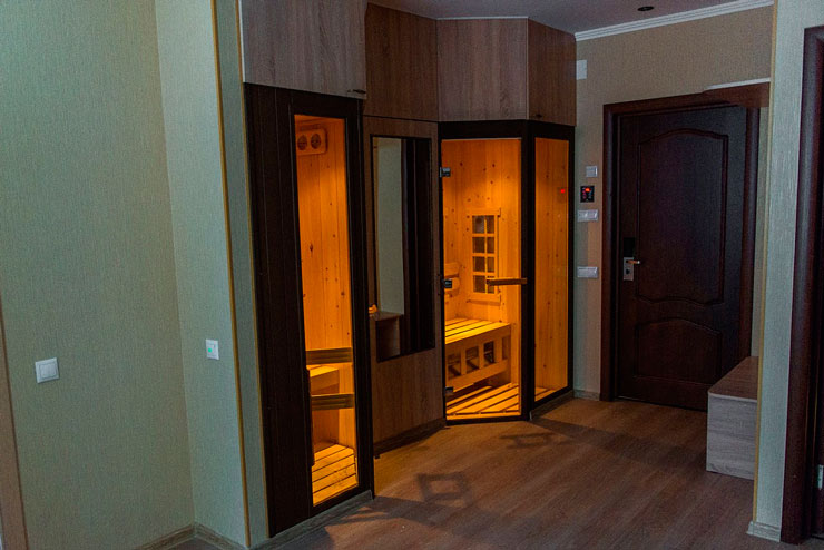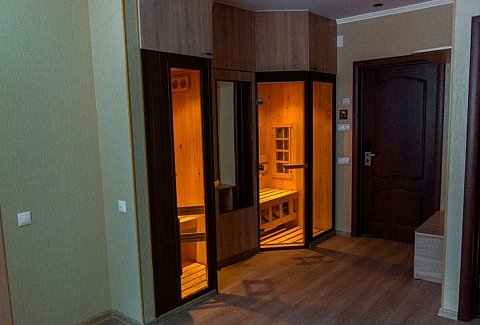 Санузел: сауна, с ванной, с душевой кабиной, тапочки, туалетные принадлежности, фен, халат