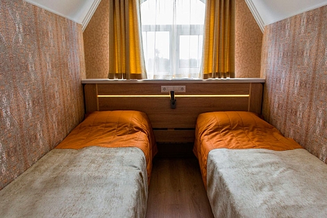 В номере: зеркало, кровати односпальные, прикроватные тумбочки, стол, стулья, шкаф, мини-холодильник, сейф, телевизор, телефон