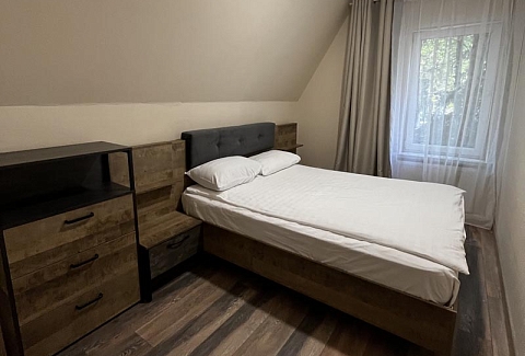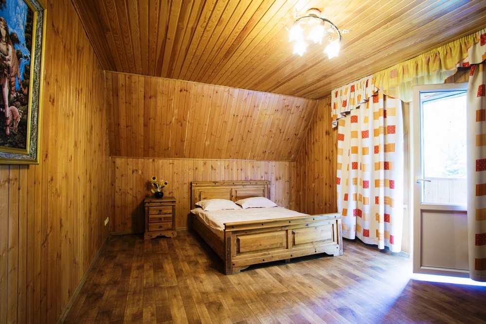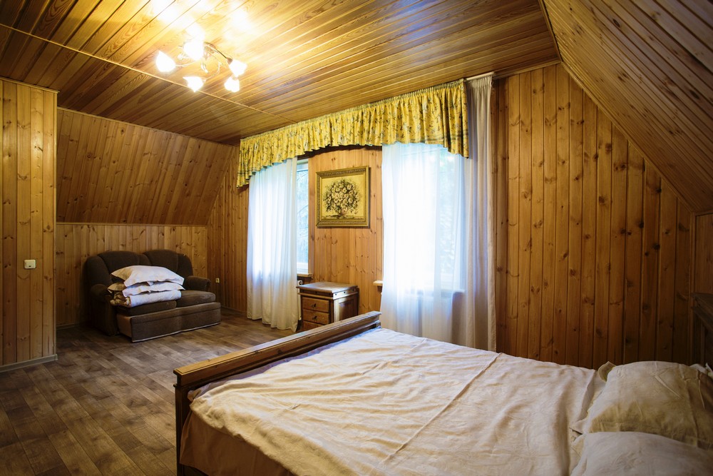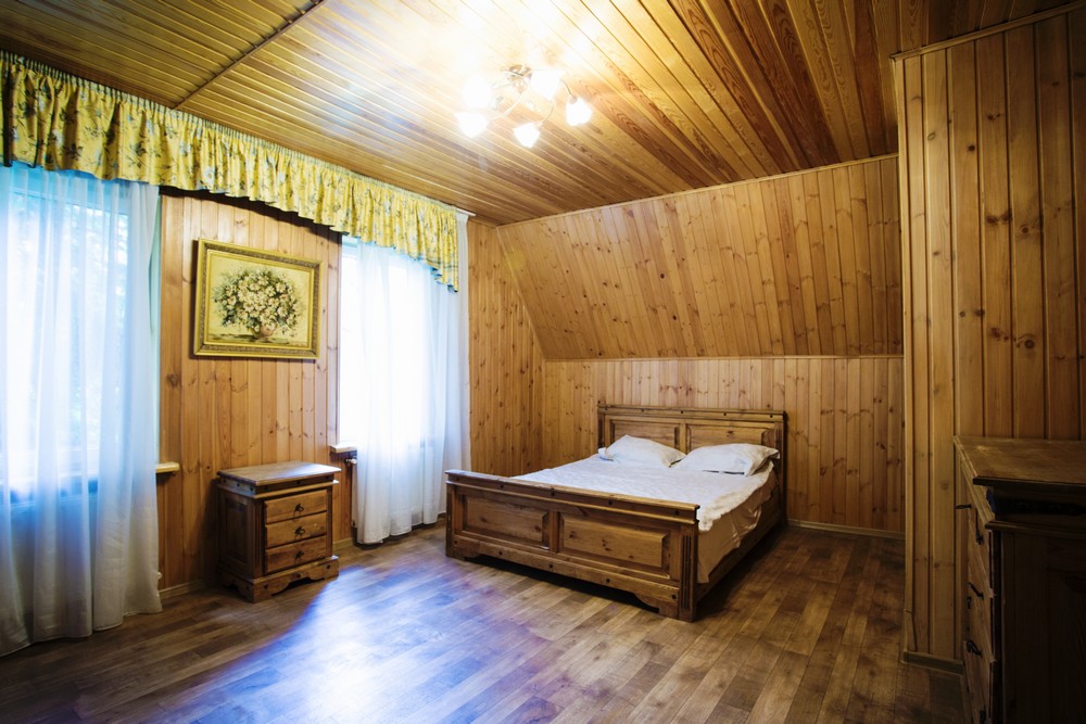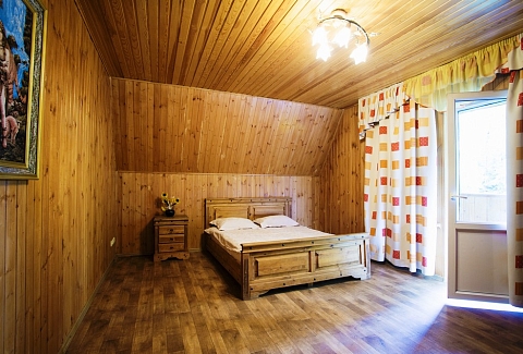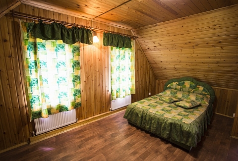 В номере: вешалка, диван раскладной, зеркало, кровать двуспальная, прикроватные тумбочки, стол, стулья, шкаф, камин, микроволновая печь, набор посуды, плита электрическая, телевизор, холодильник, электрочайник