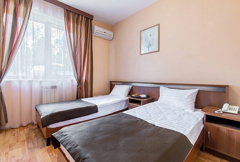 Поездом до ж/д вокзала Савеловский, далее метро до станции «Бибирево», далее на рейсовом автобусе №290 до остановки «Дом культуры», далее пройти 2,5 км до отеля.